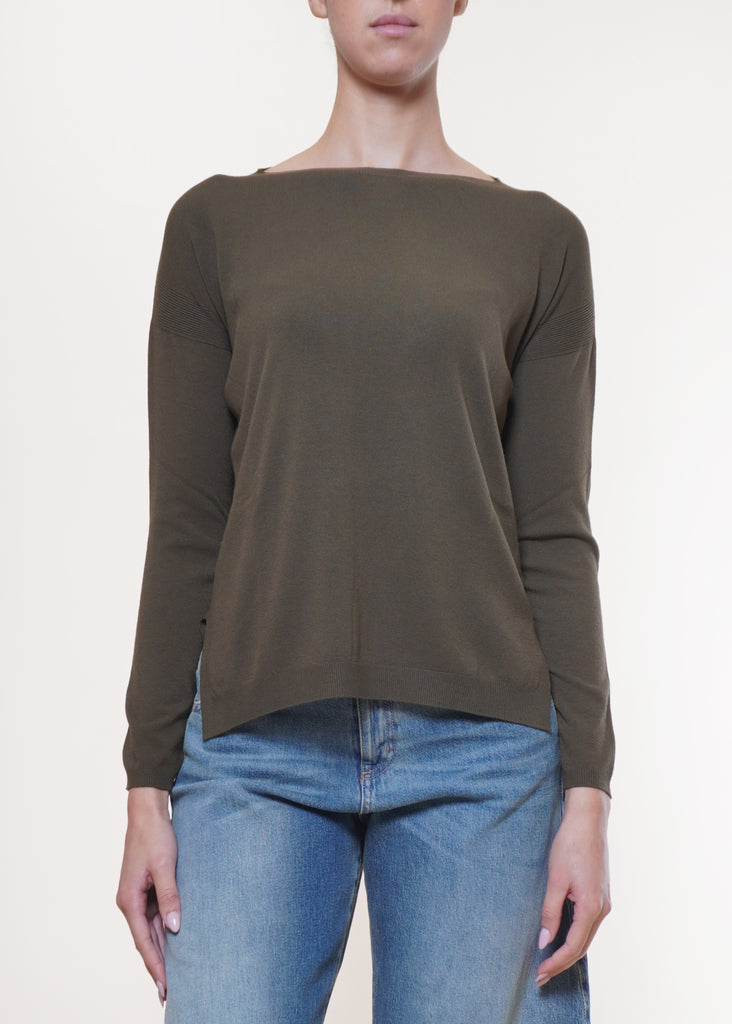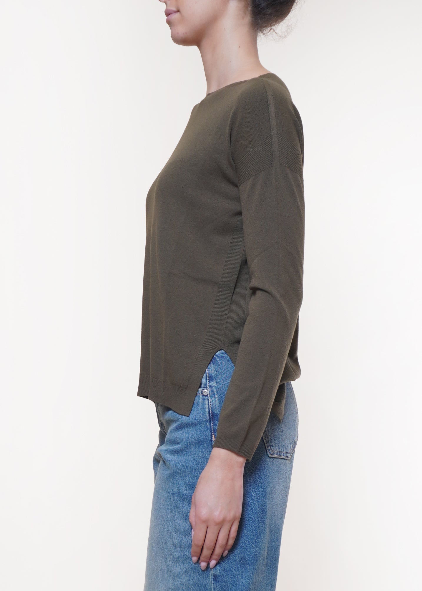 Kontatto - Maglia basic con spacchi laterali - VERDE MILITARE