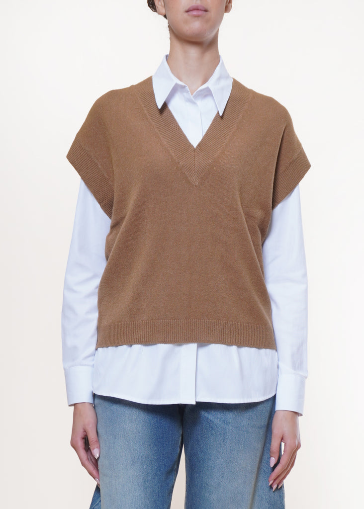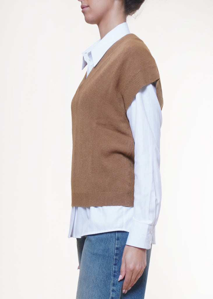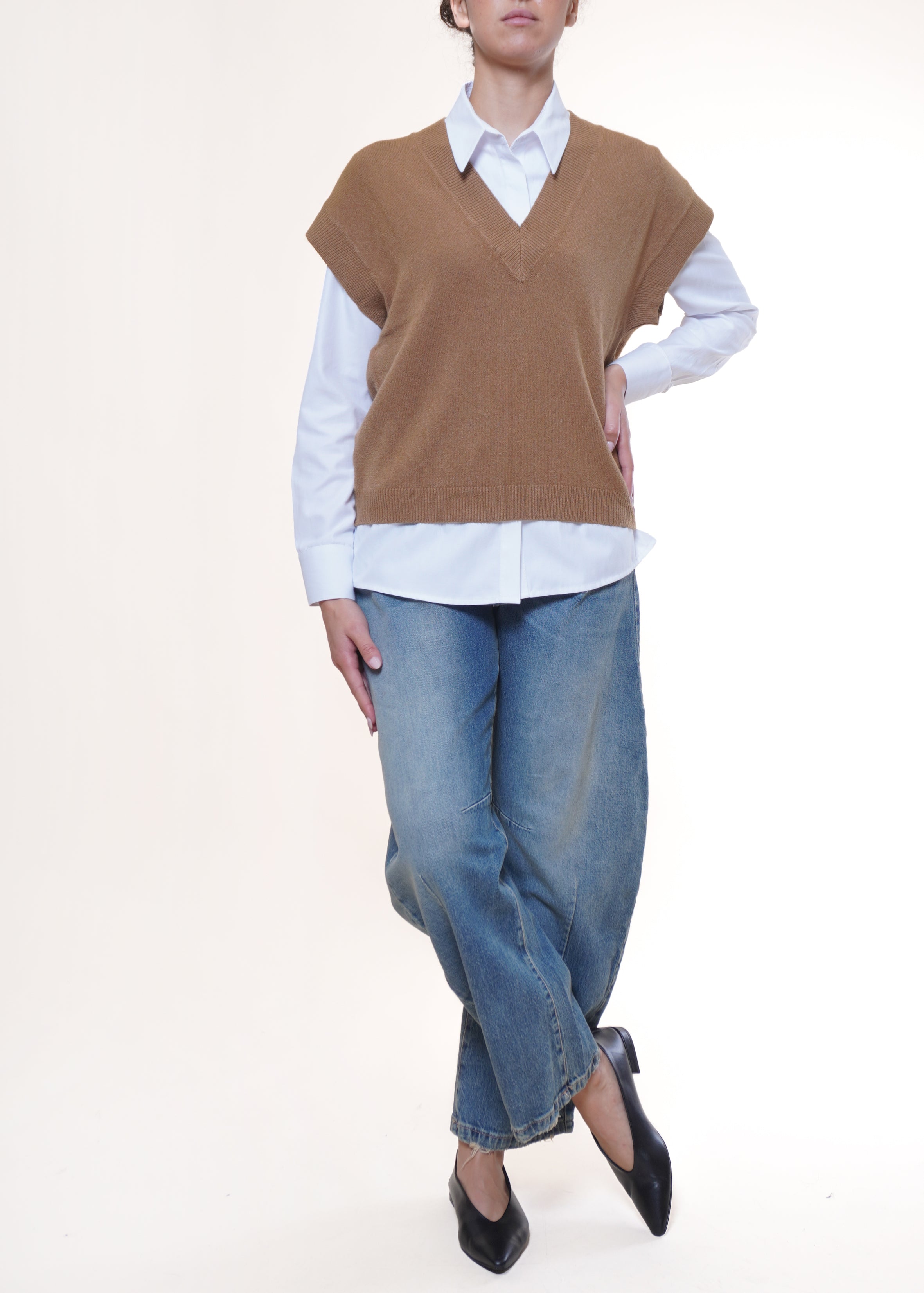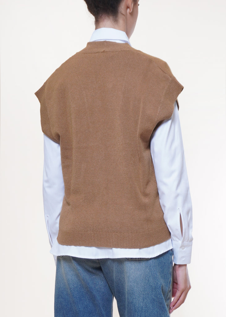 Angela Davis - Gilet in maglia scollo V - CAMMELLO