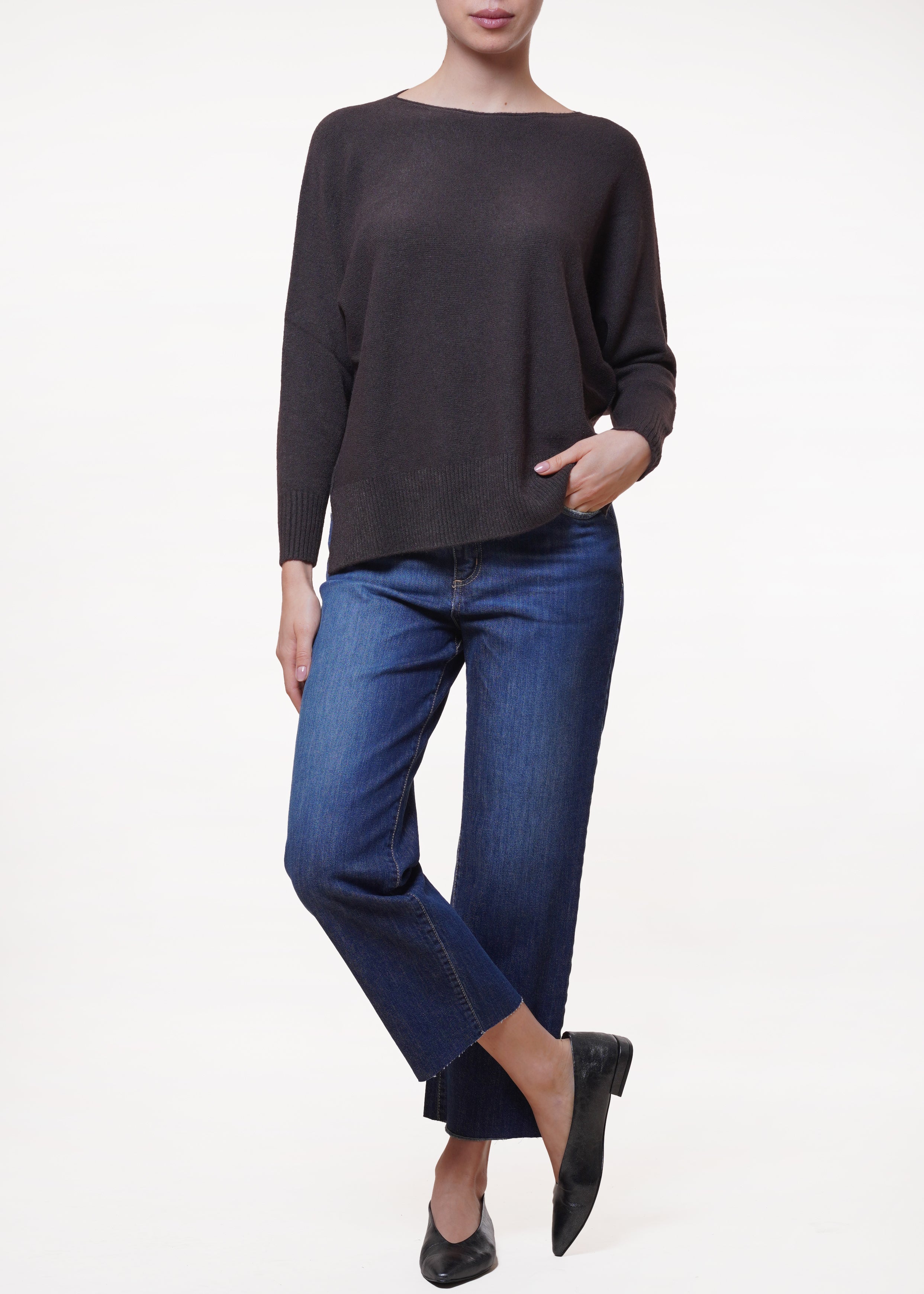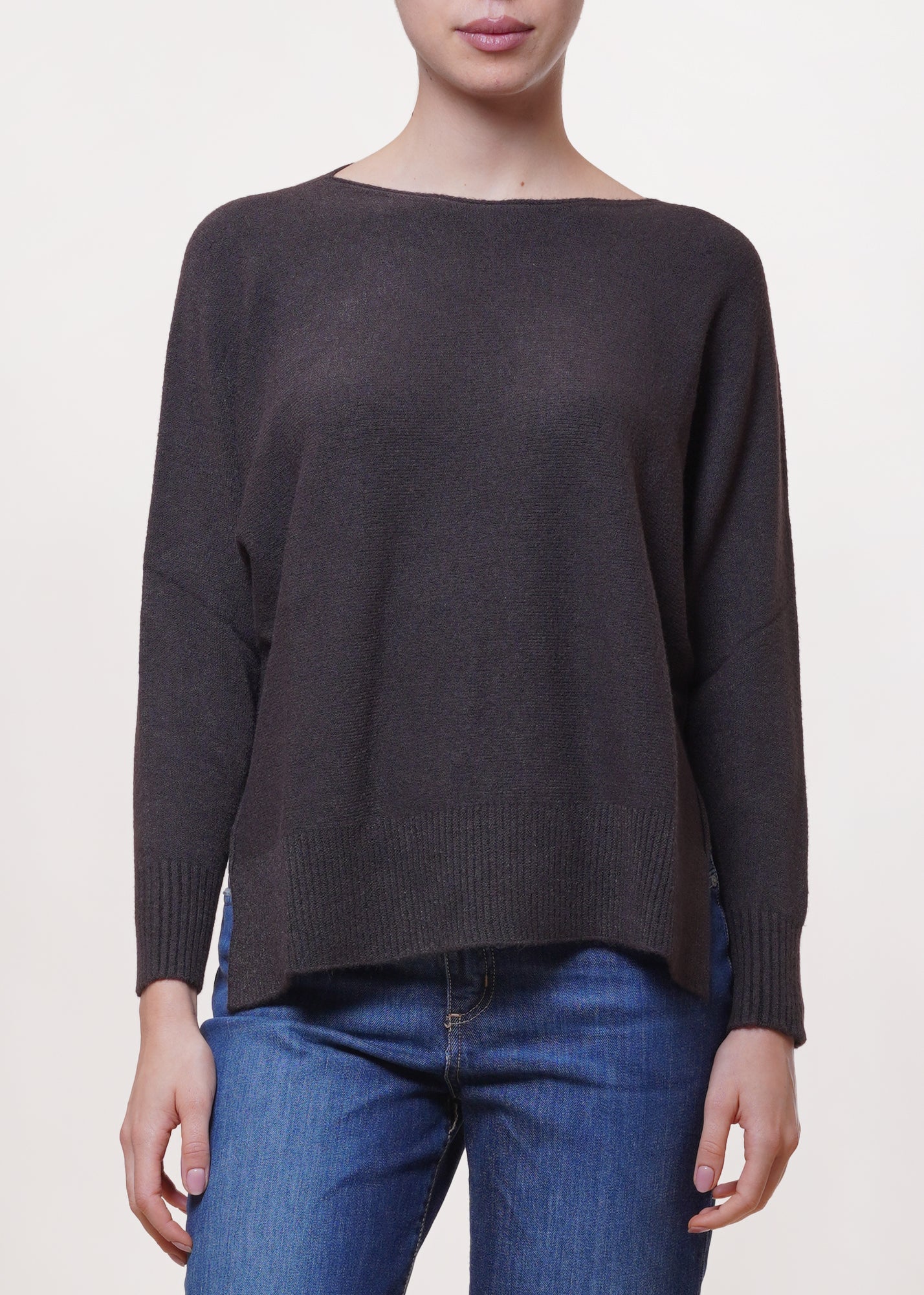 Kontatto - Maglia scatoletta con spacchi laterali - MORO