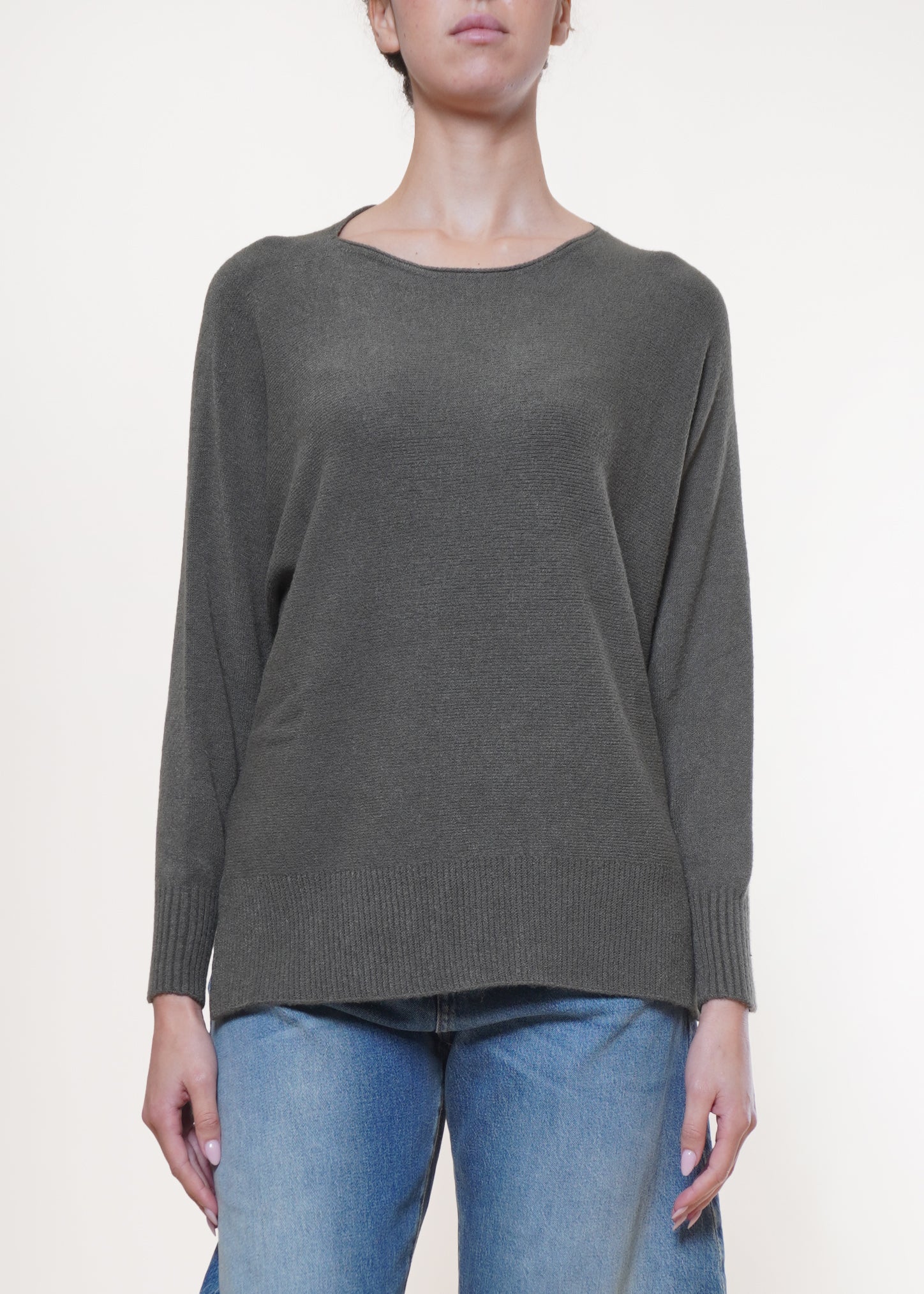 Kontatto - Maglia scatoletta con spacchi laterali - VERDE MILITARE
