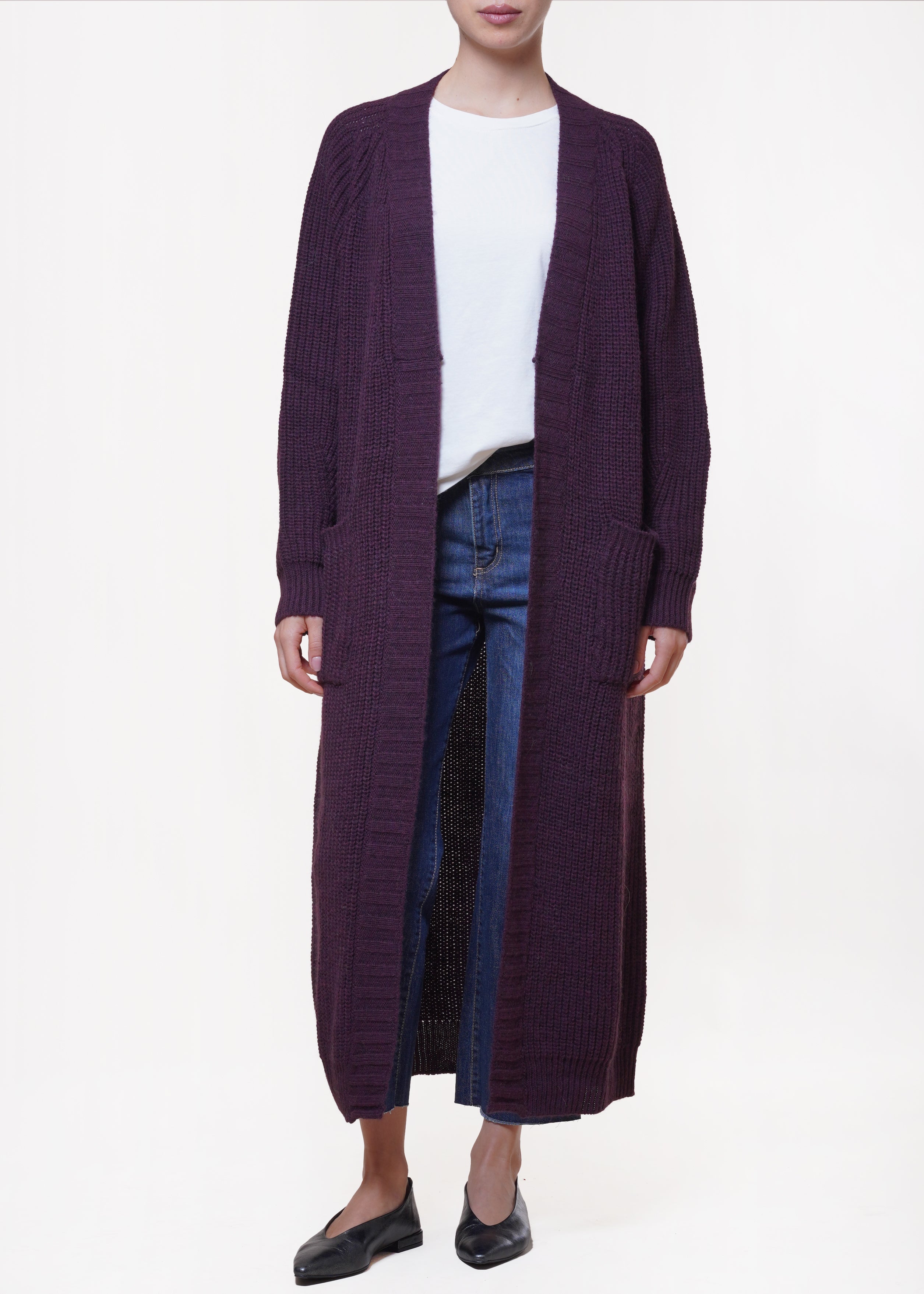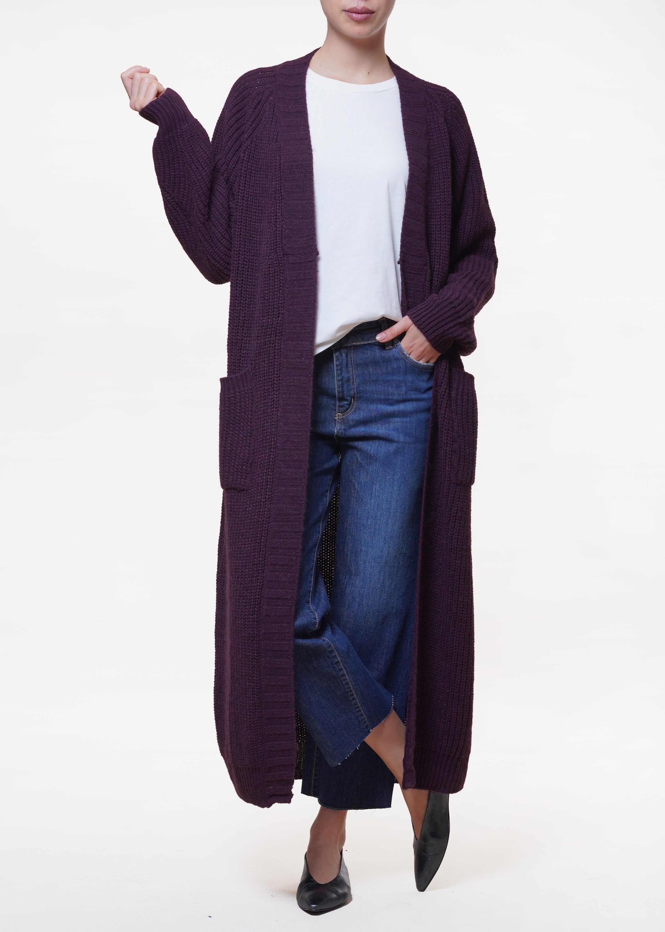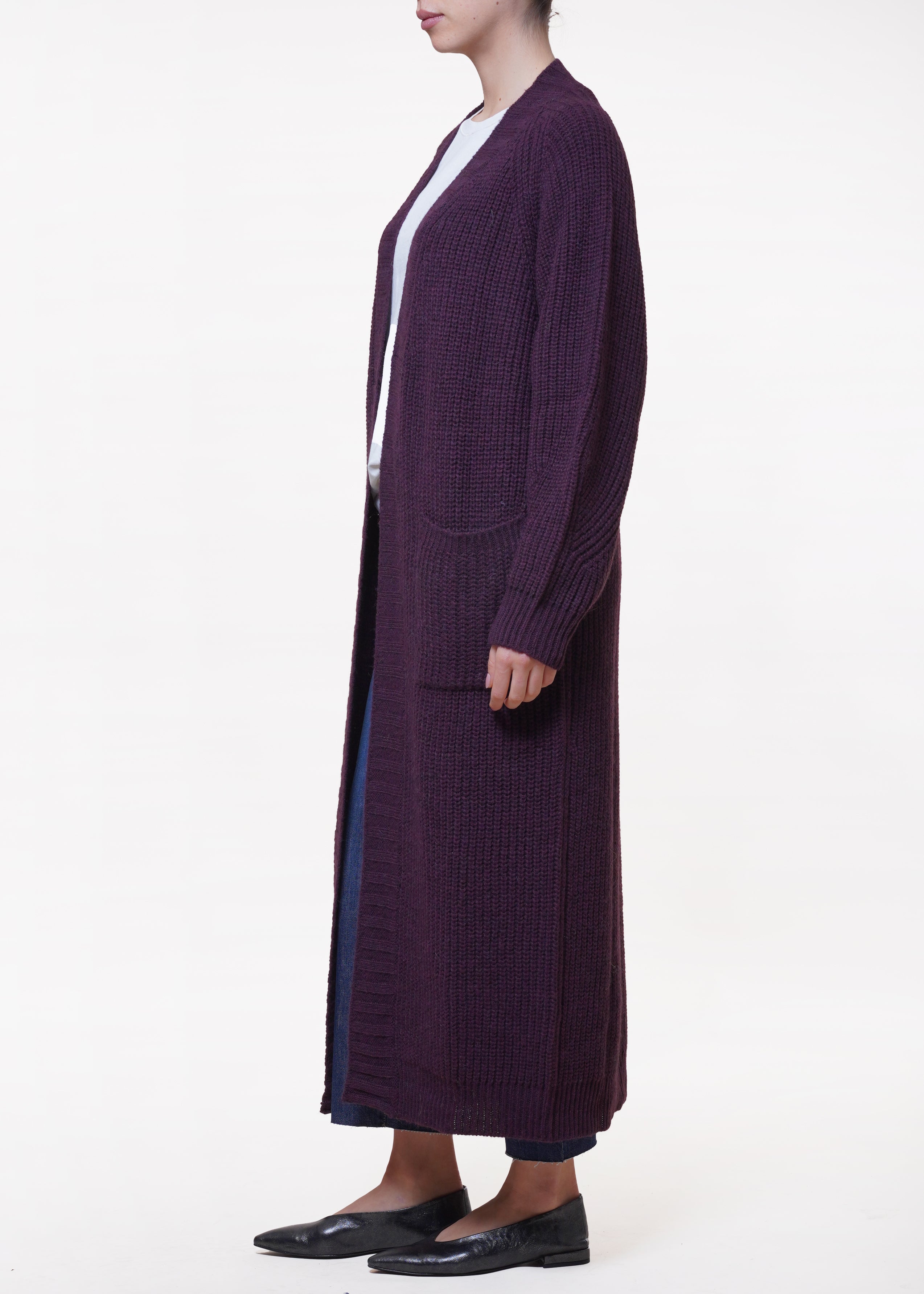 Kontatto - Cardigan lungo in misto lana - MELANZANA