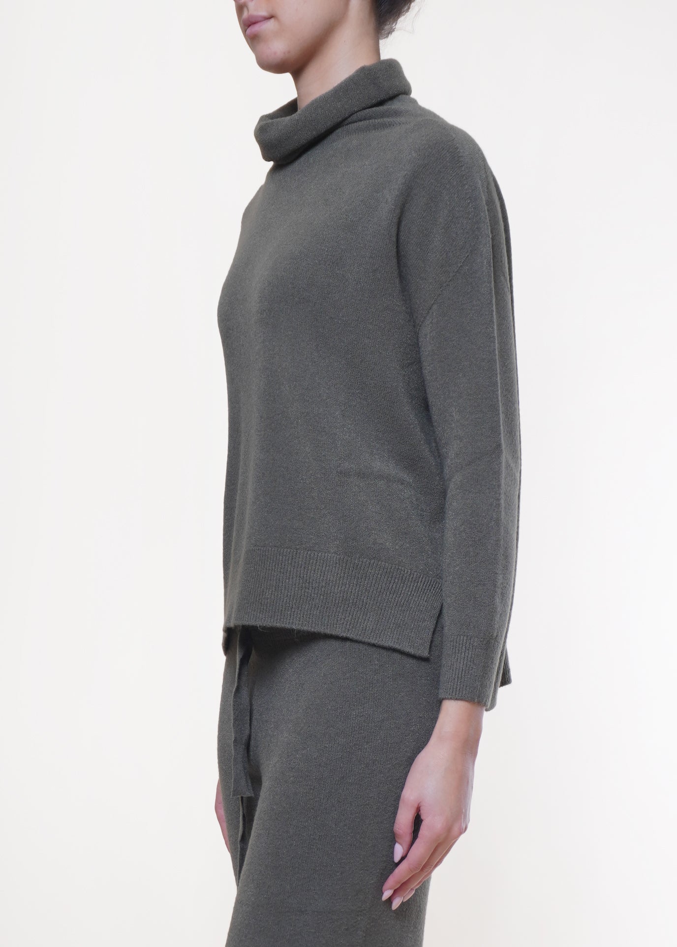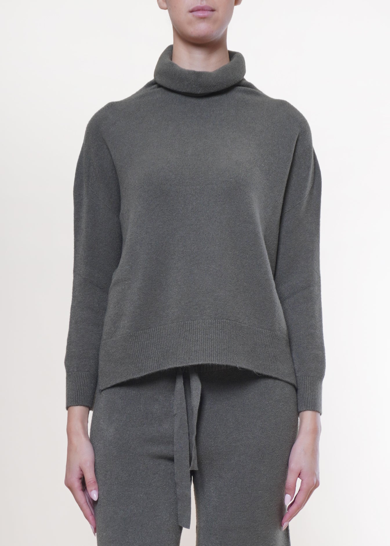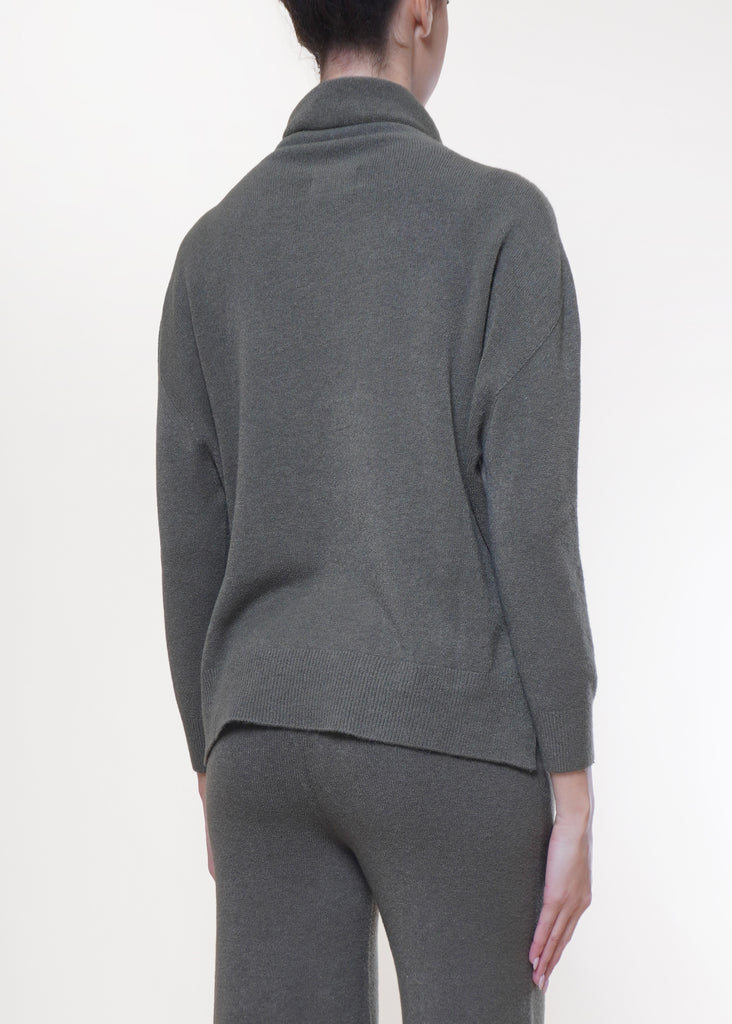 Kontatto - Maglia collo alto con spacchi laterali - VERDE MILITARE