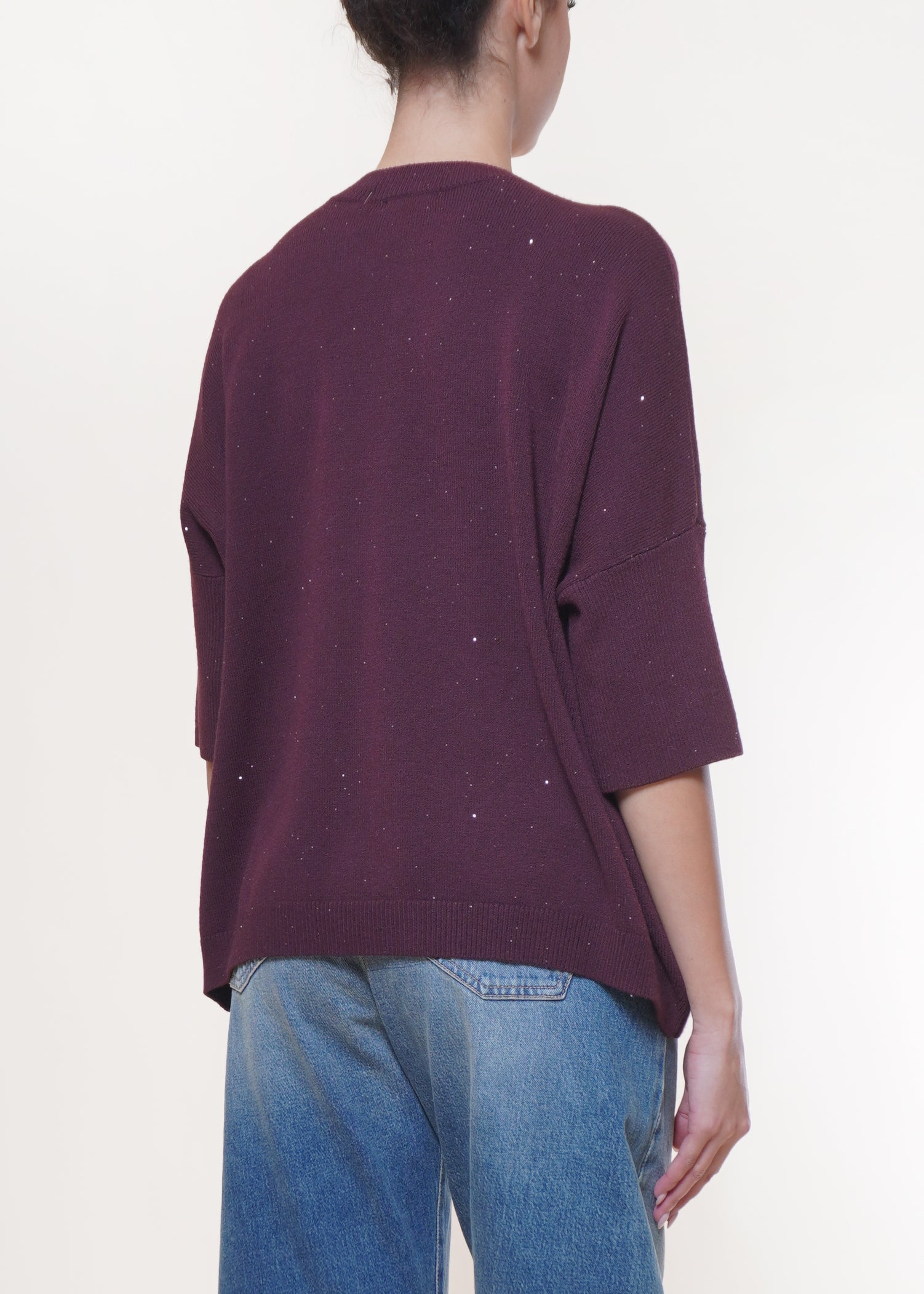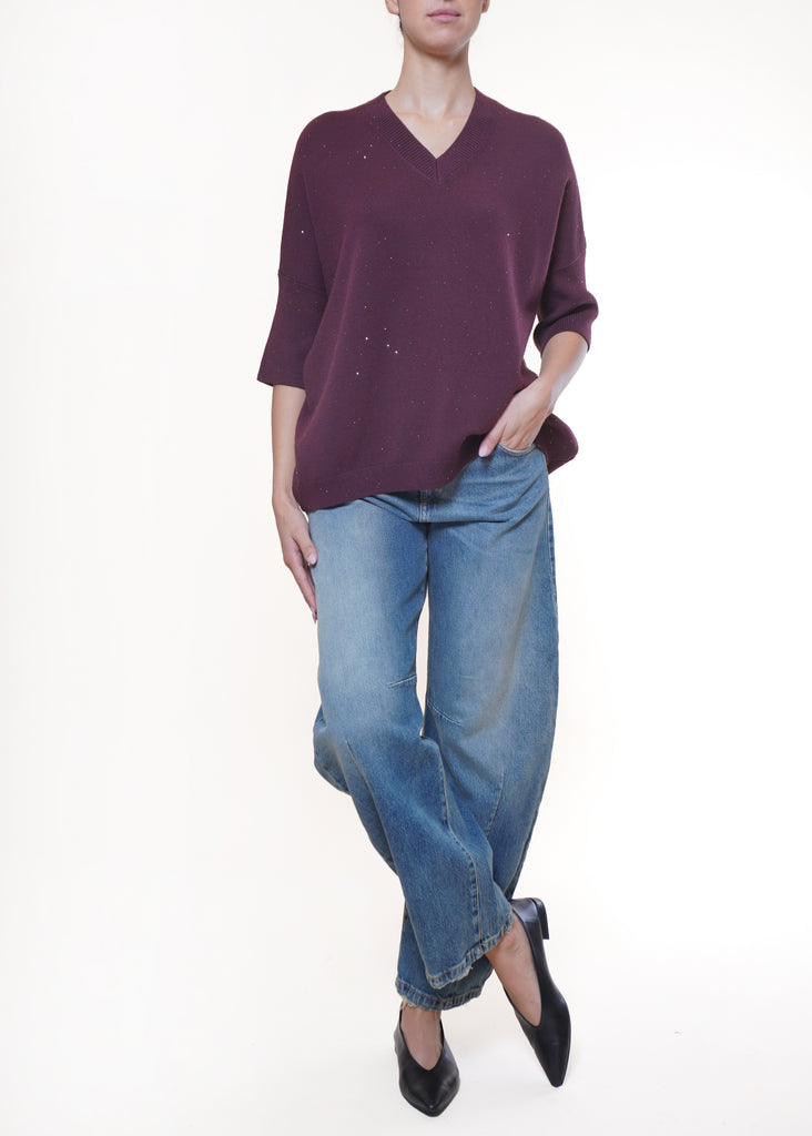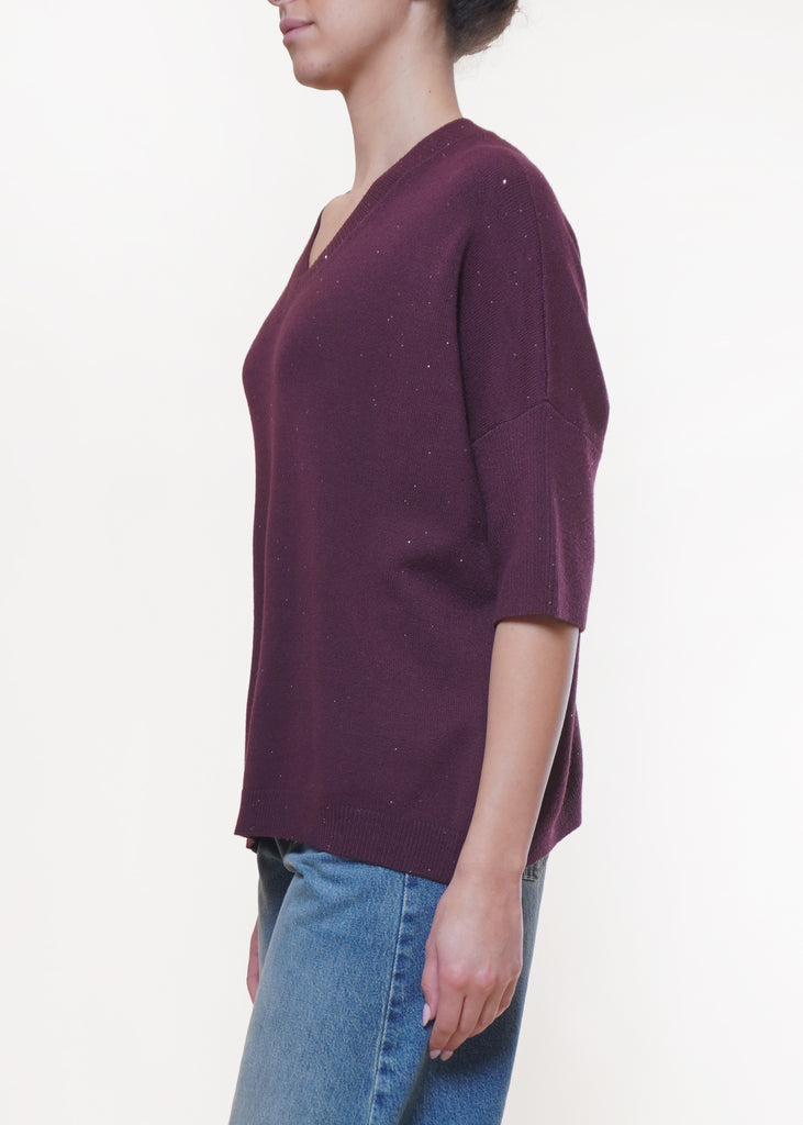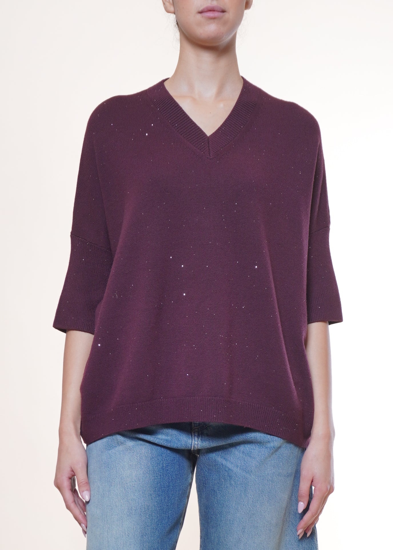 Anì - Maglia scollo V con punti luce - BORDEAUX