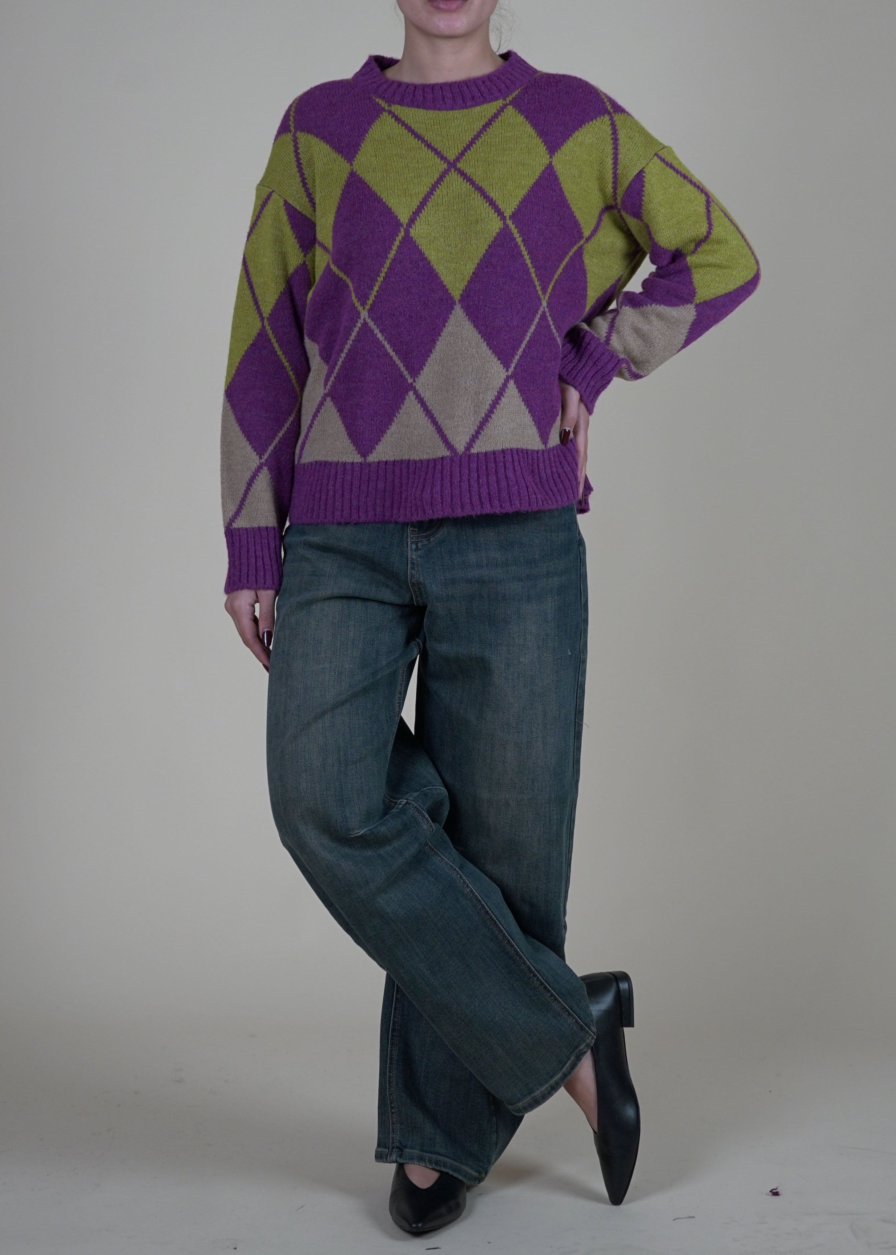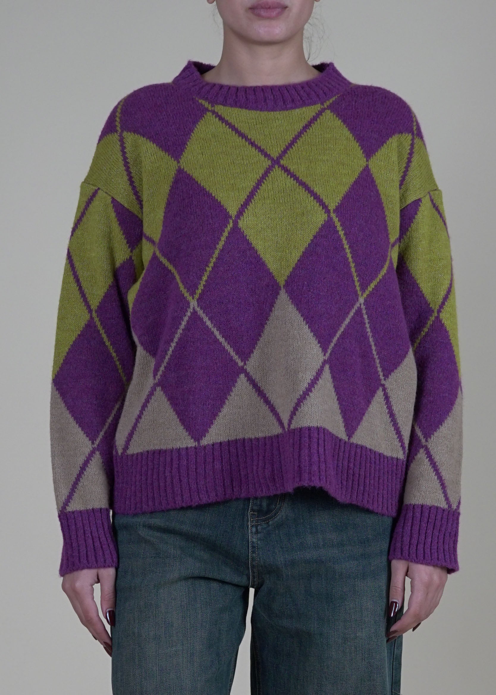 Motel - Maglia a rombi misto lana - VIOLA
