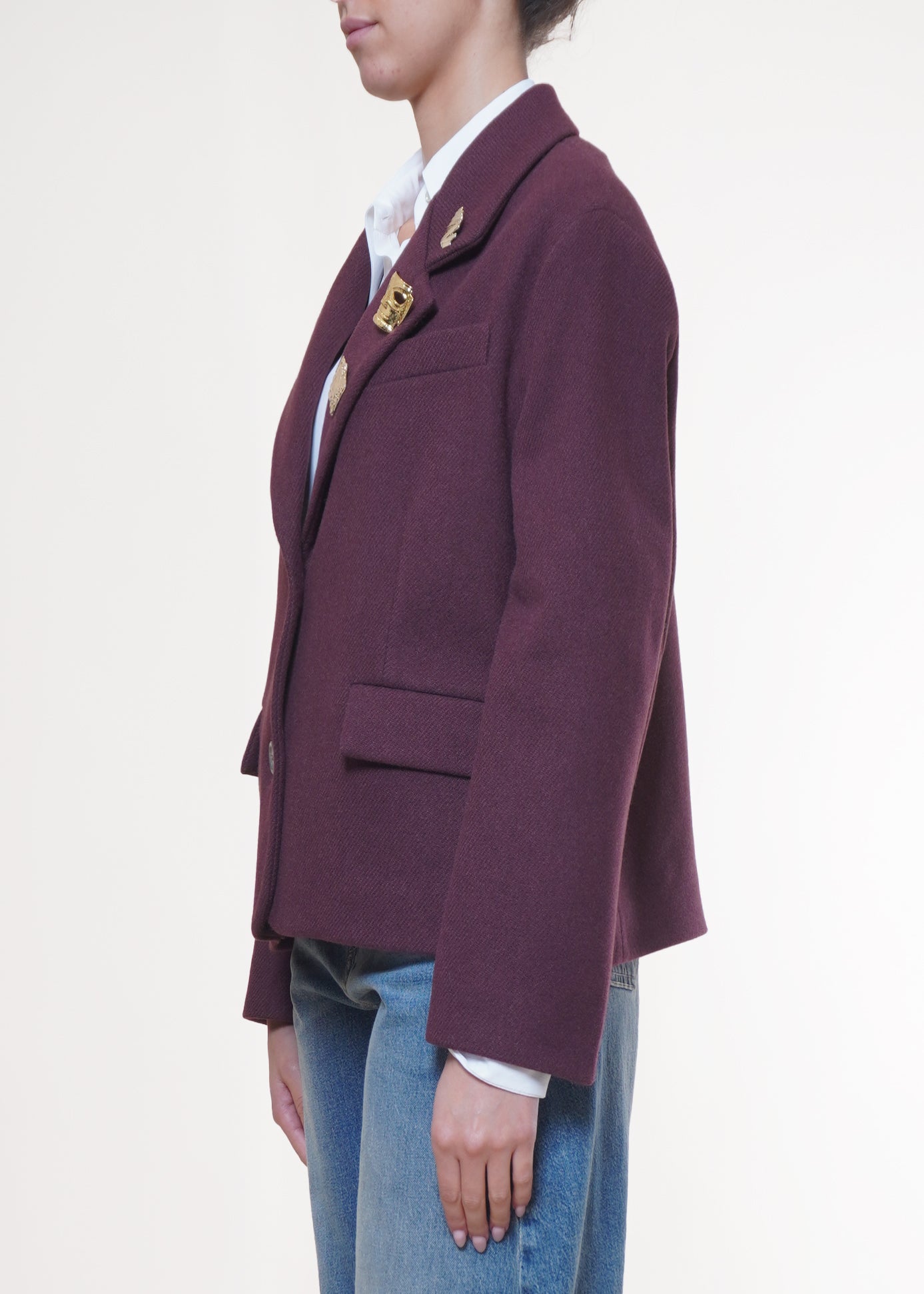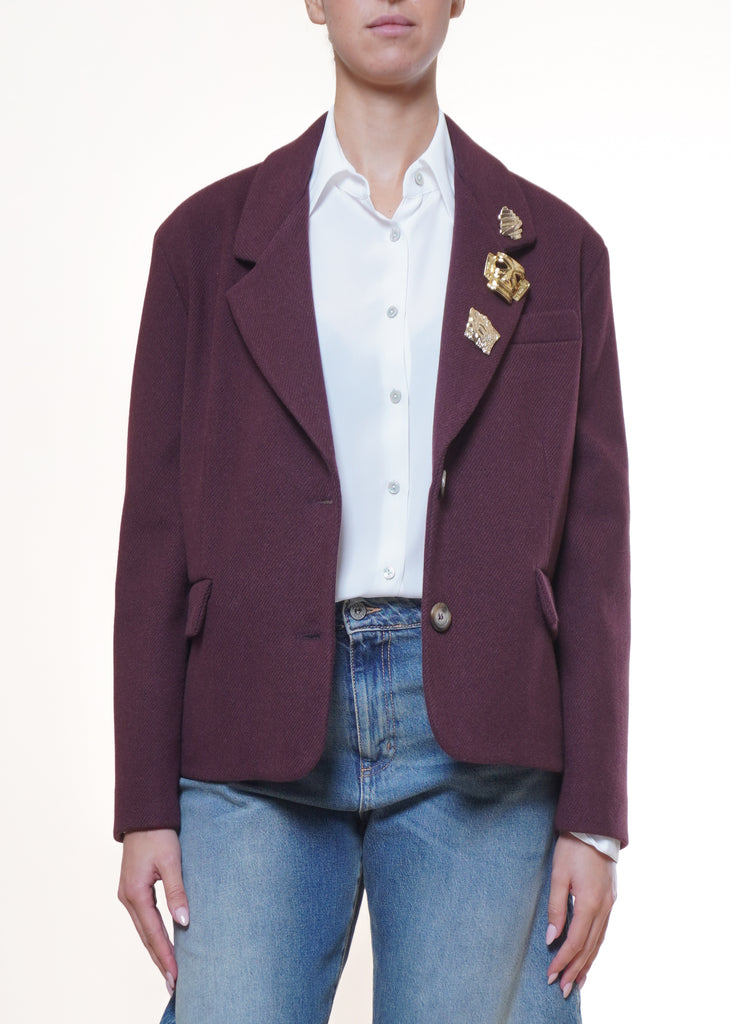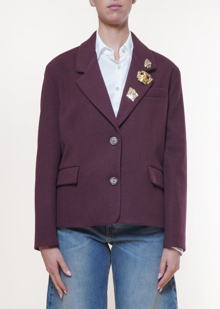 Dixie - Giacca over crop con spille misto lana - BORDEAUX