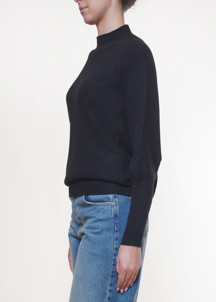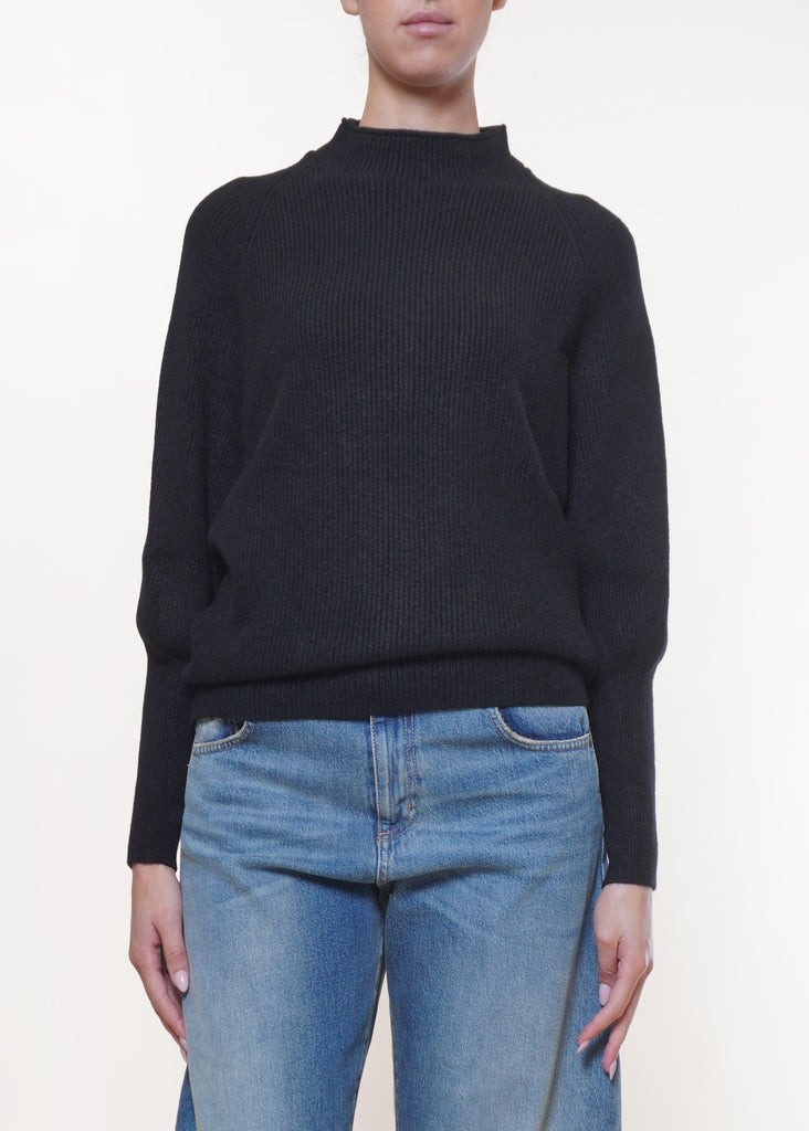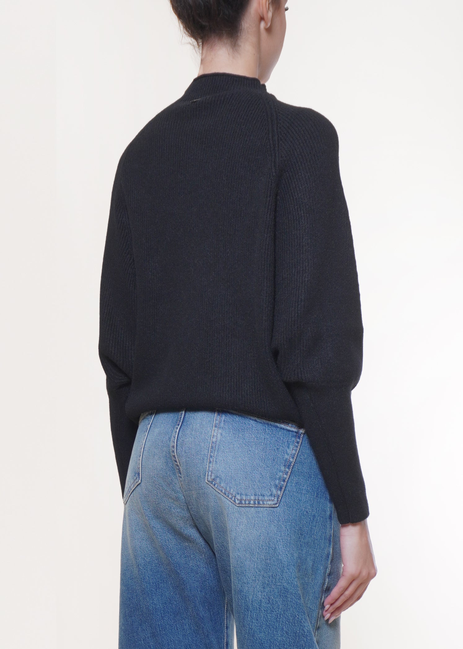 Dixie - Maglia lupetto coste manica ampia - NERO