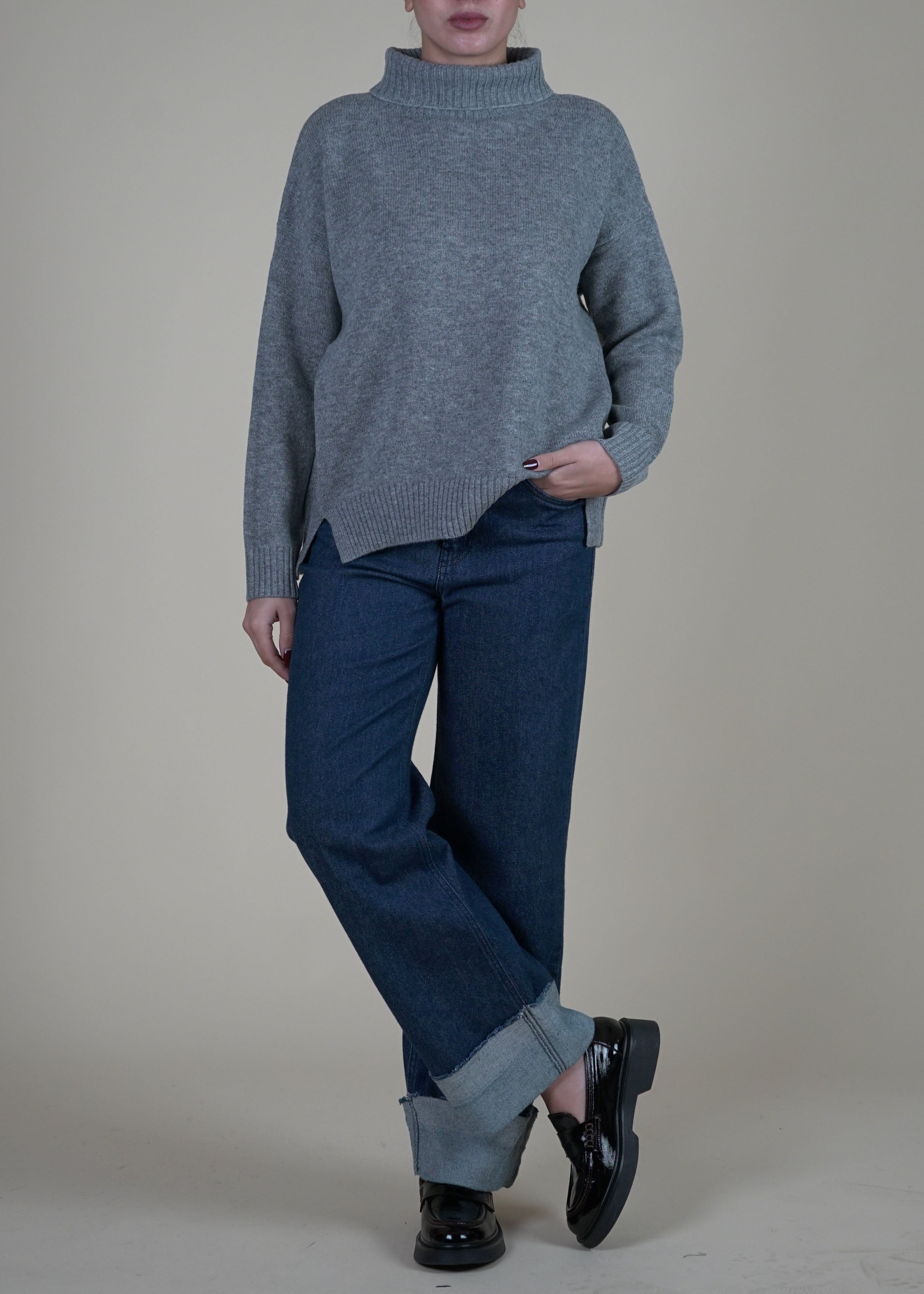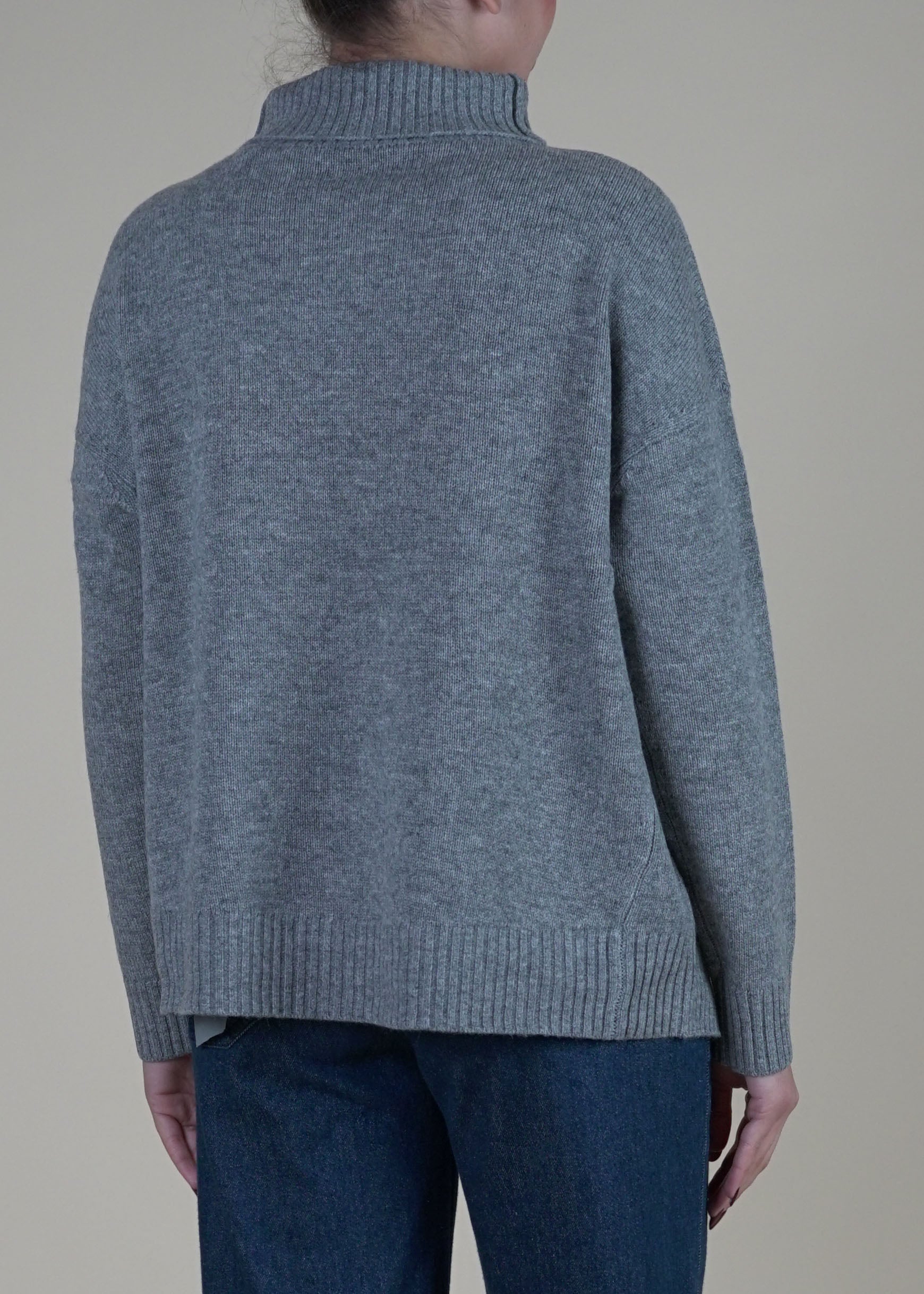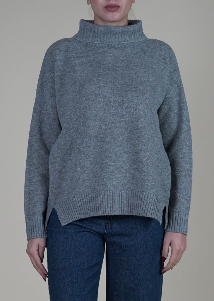 Anì - Maglia collo alto in lana con spacchetti - GRIGIO CHIARO