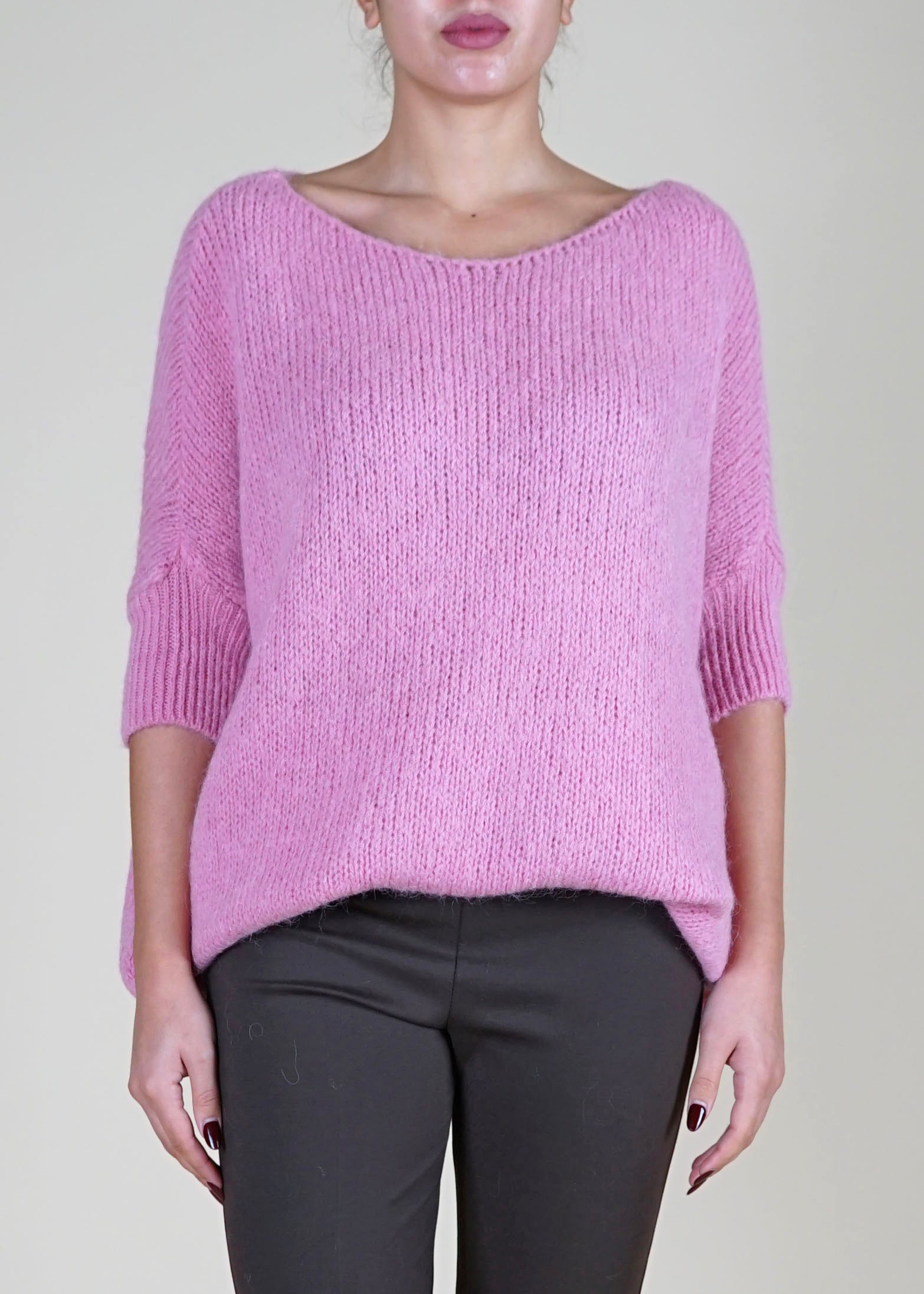 Imperial - Maglia over mezza manica in mohair - ROSA
