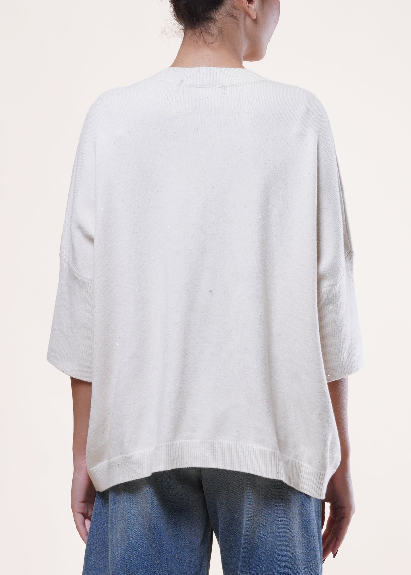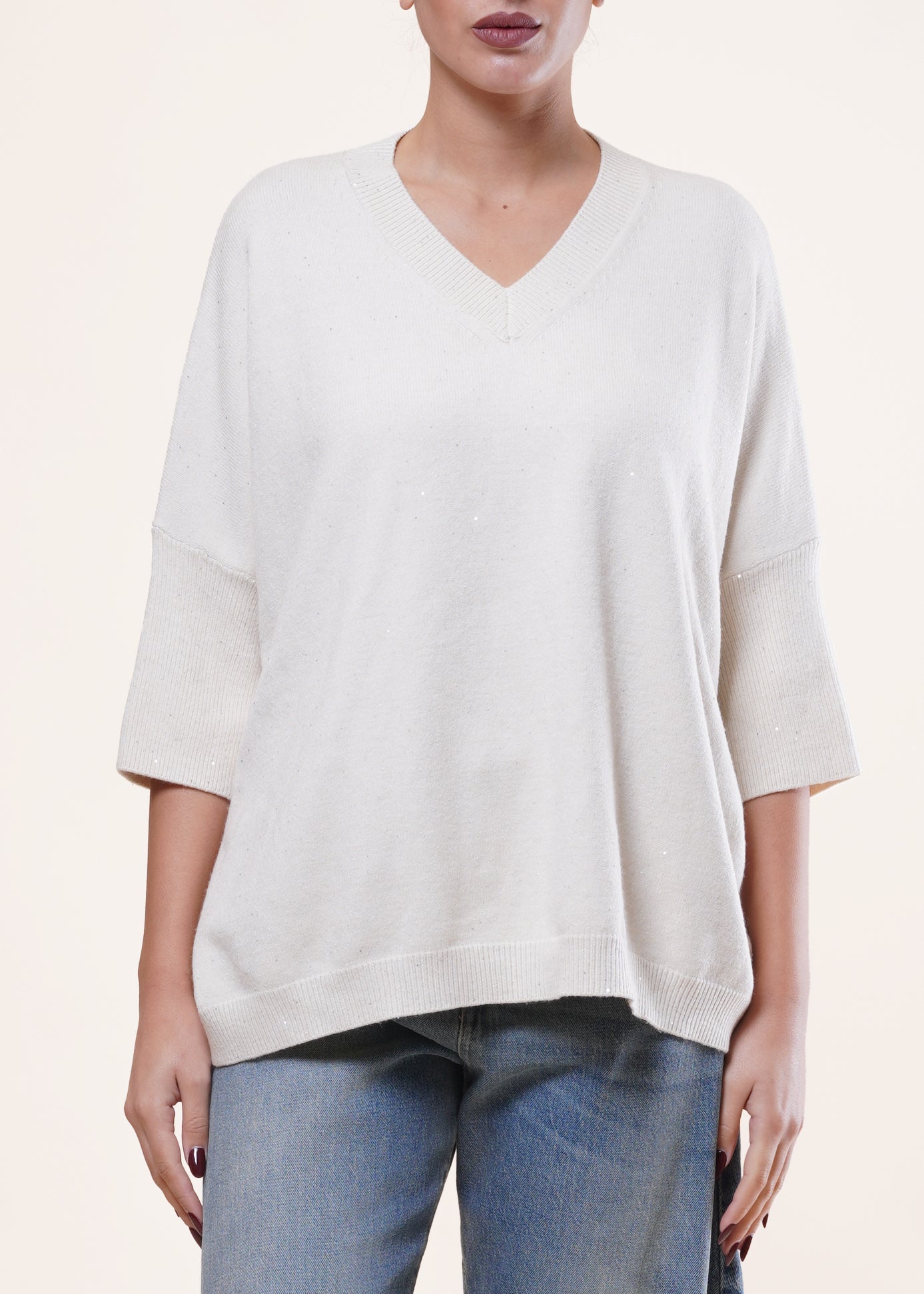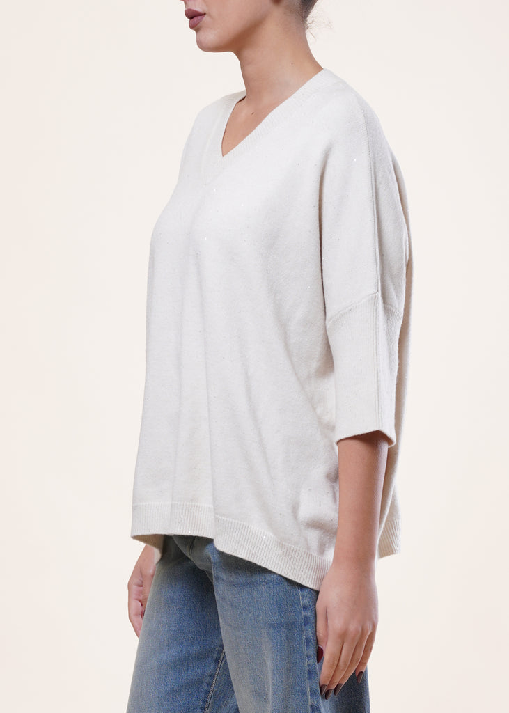 Anì - Maglia scollo V con punti luce - BURRO