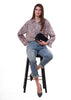 Anì - Camicia fantasia con punti luce misto lino - VIOLA