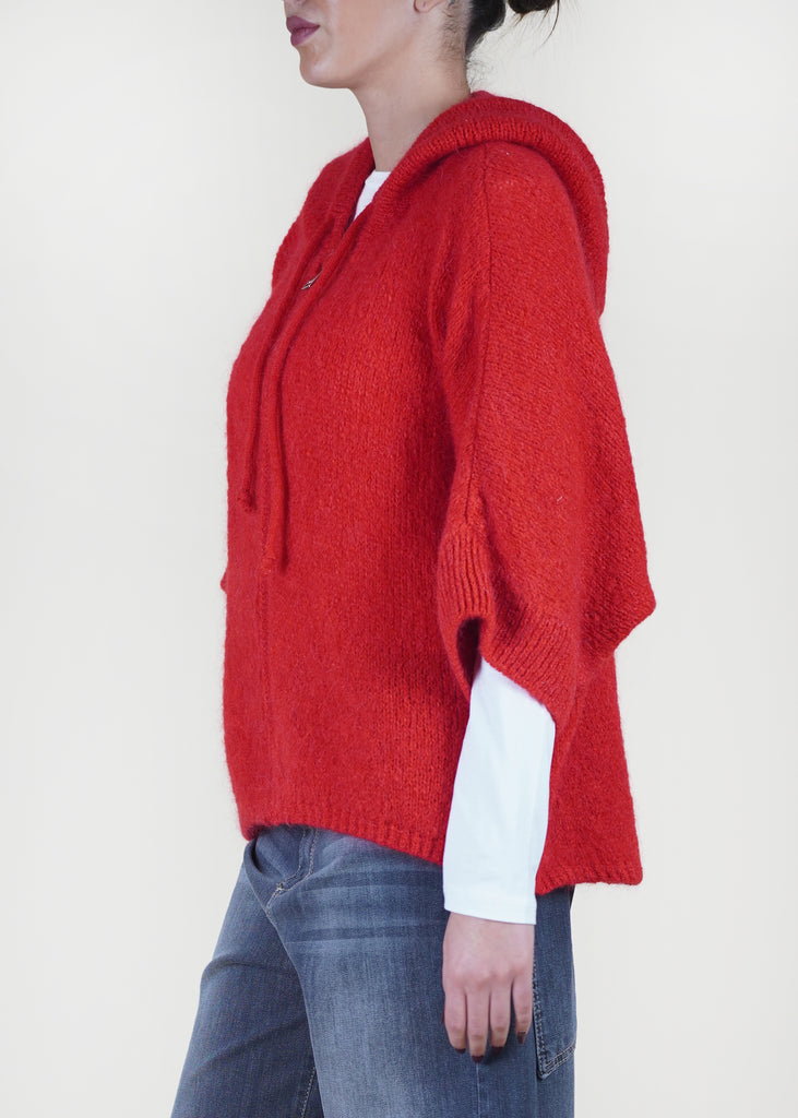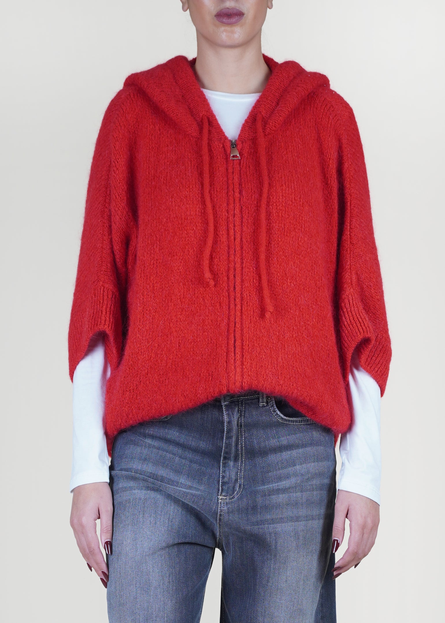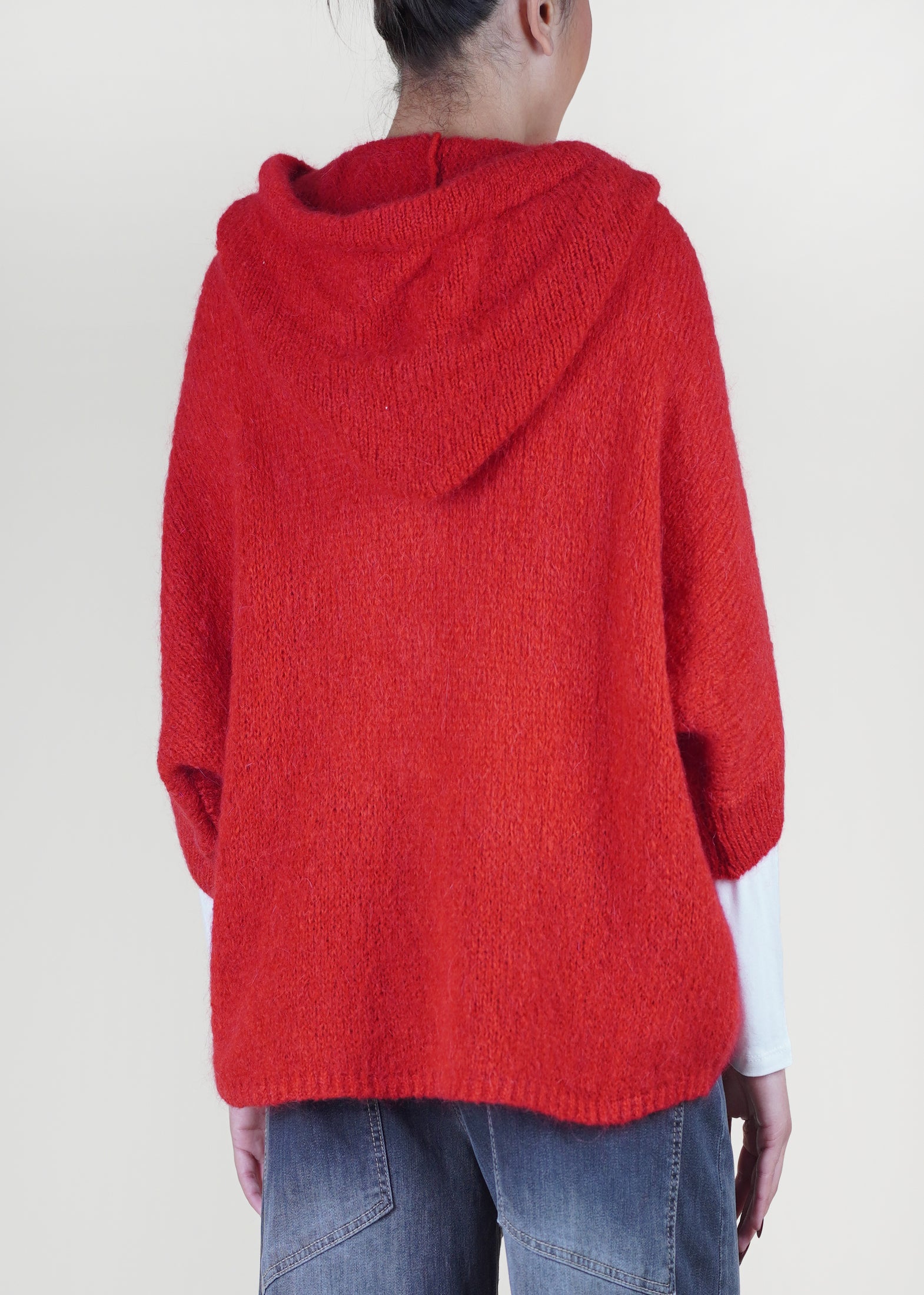 Dixie - Cardigan in mohair con cappuccio - ROSSO