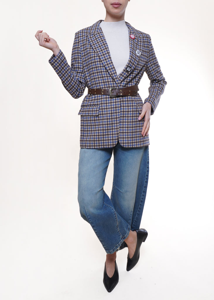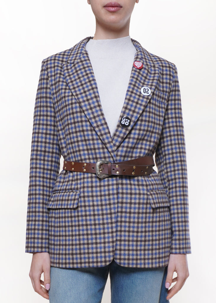 Dixie - Giacca a quadri con cintura in misto lana - CAMEL