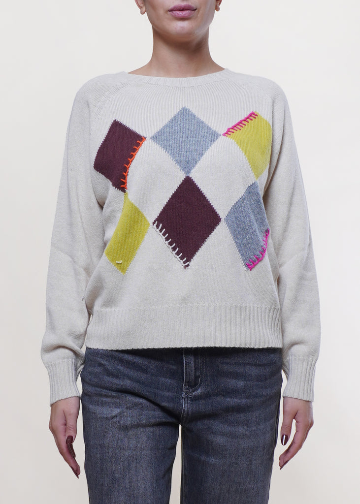 Dixie - Maglia con rombi misto cachemire e lana - AVORIO