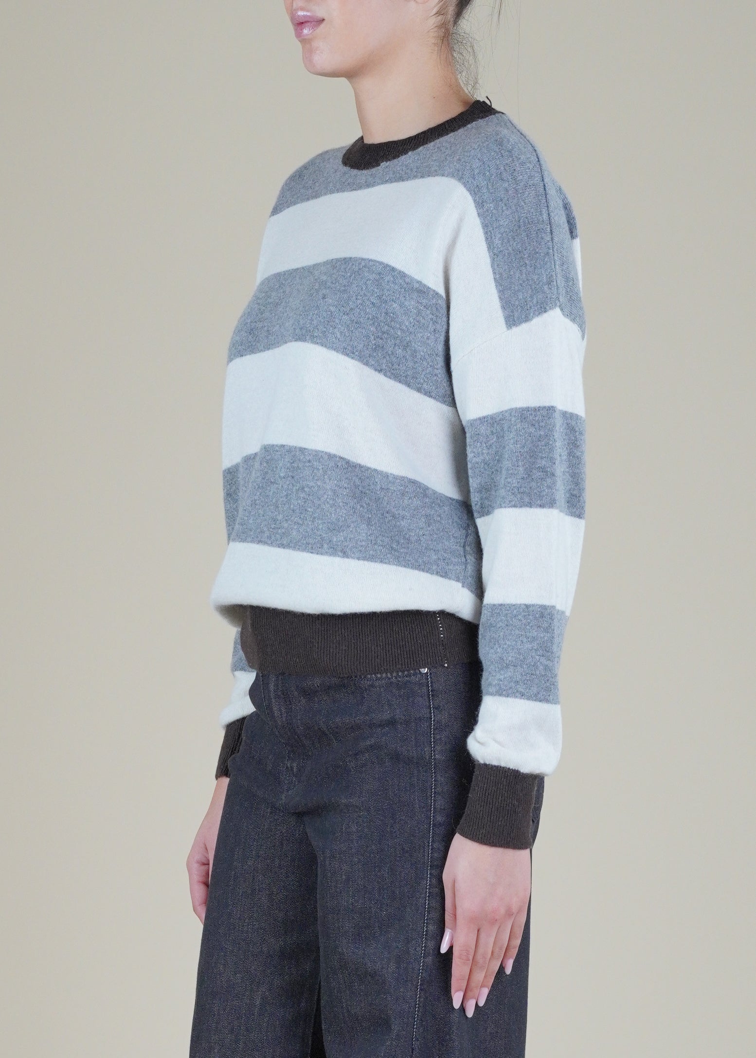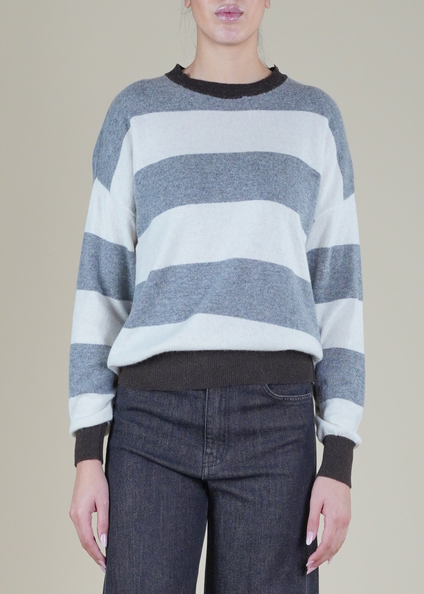 Anì - Maglia a righe lana e cachemire - GRIGIO/BURRO