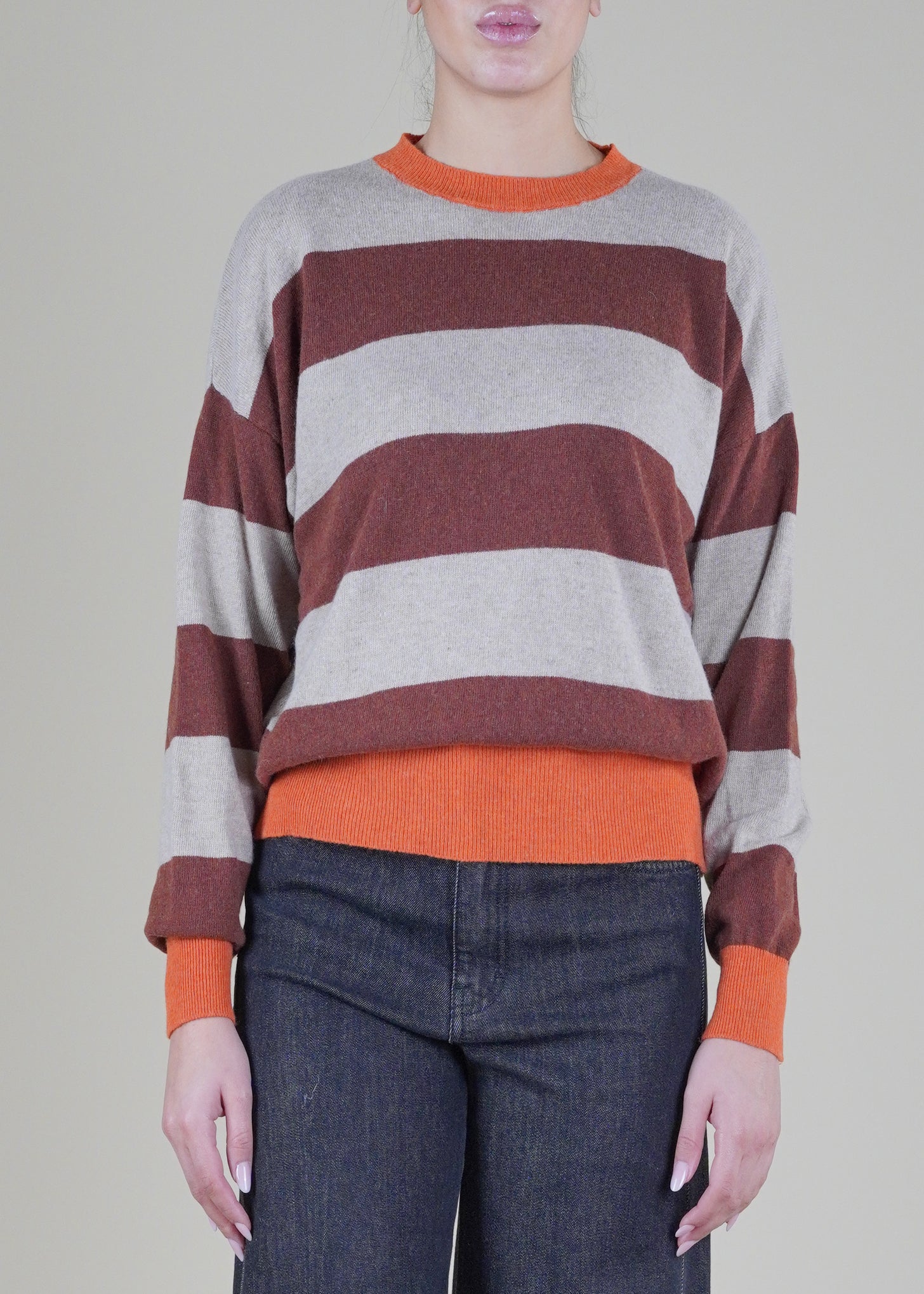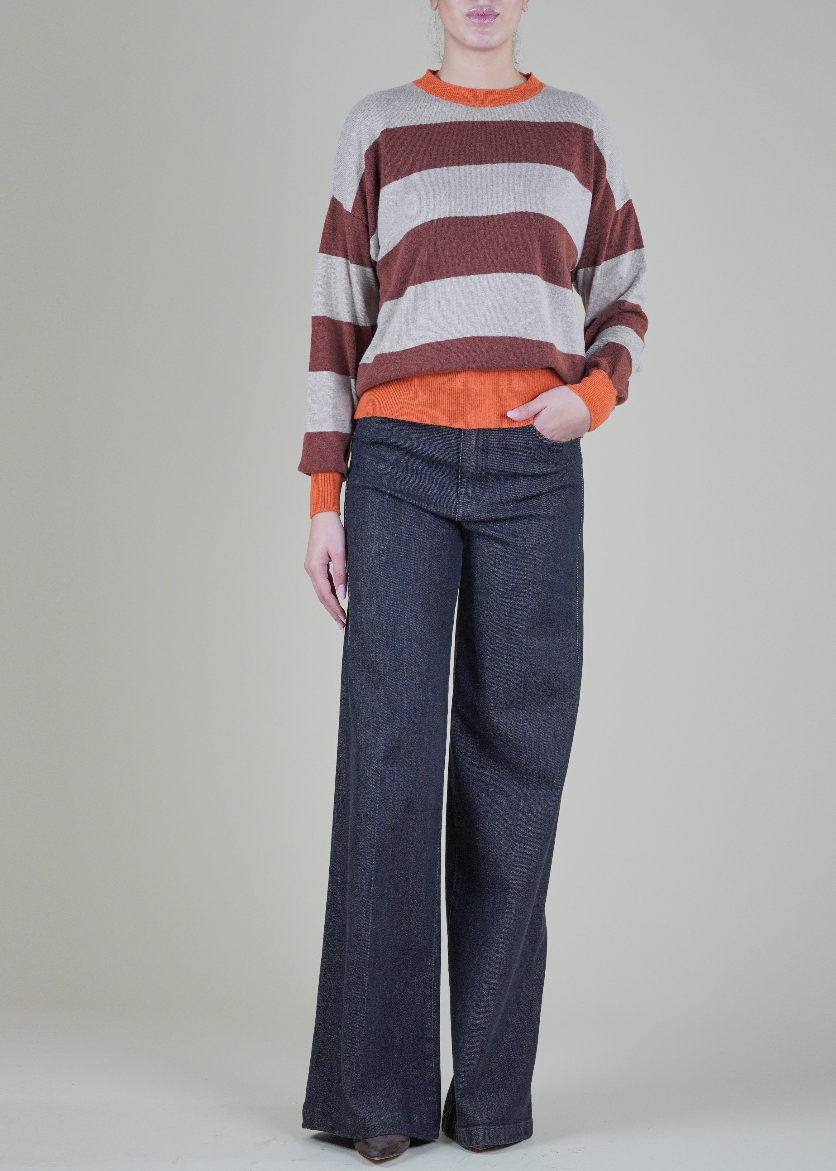 Anì - Maglia a righe lana e cachemire - TABACCO/BEIGE