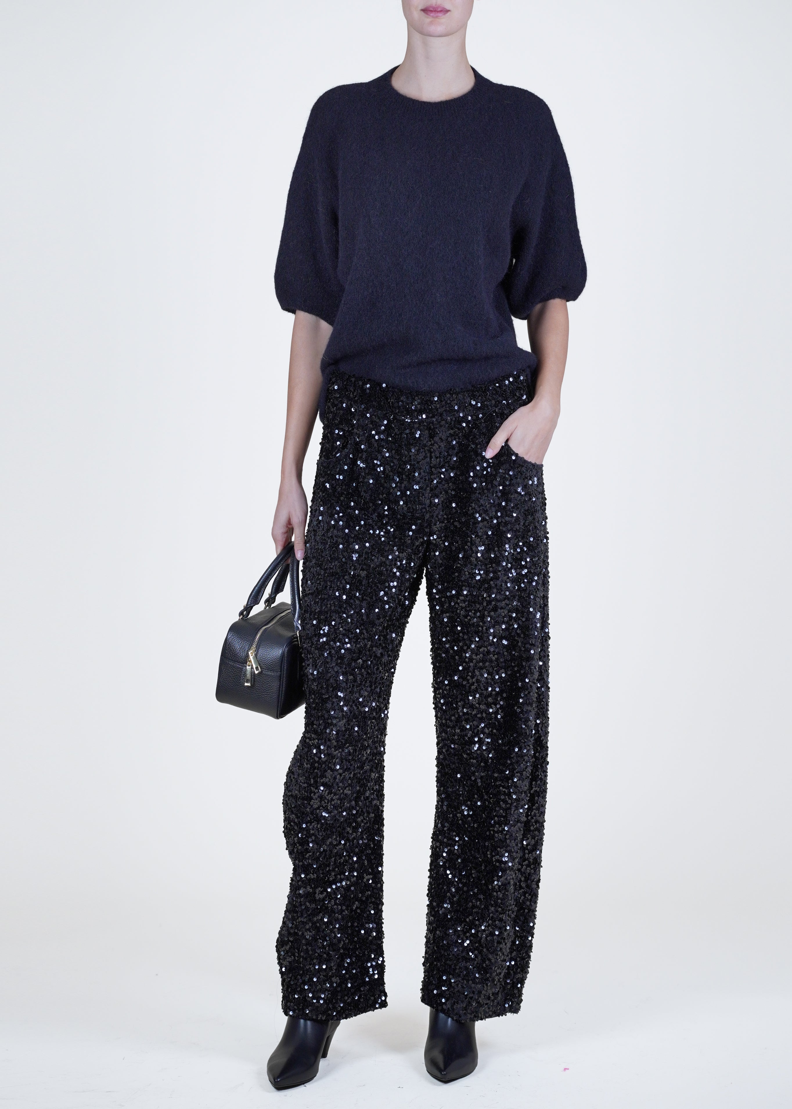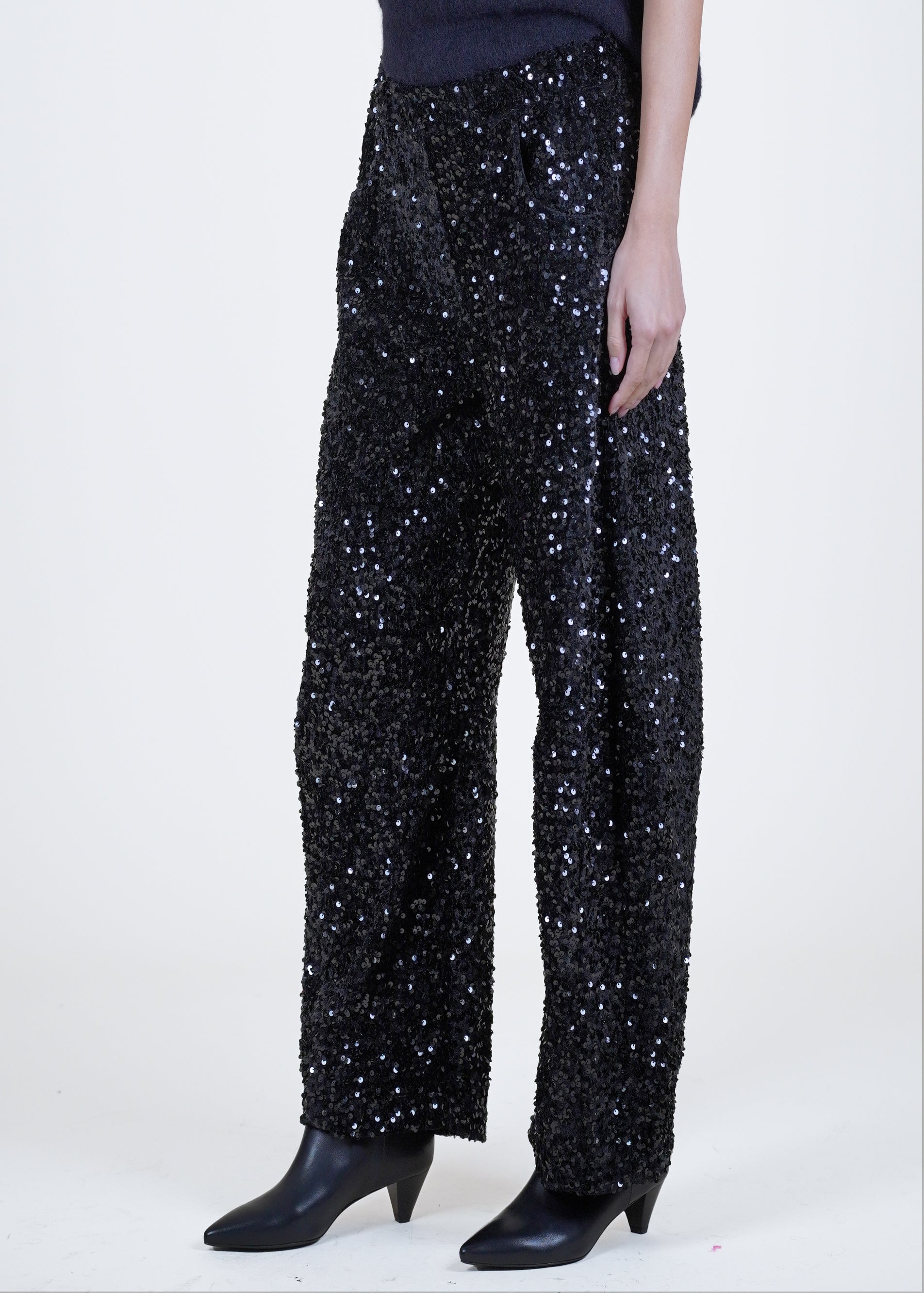 Motel - Pantalone barrel in paillettes - NERO