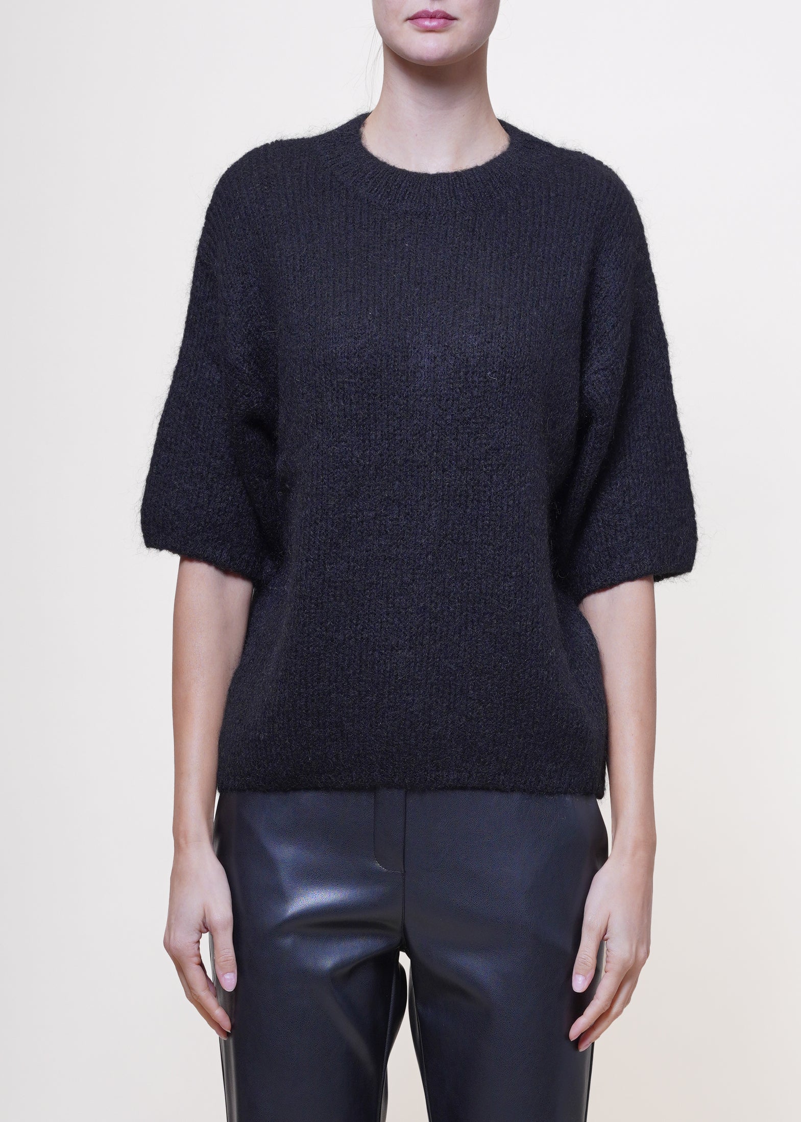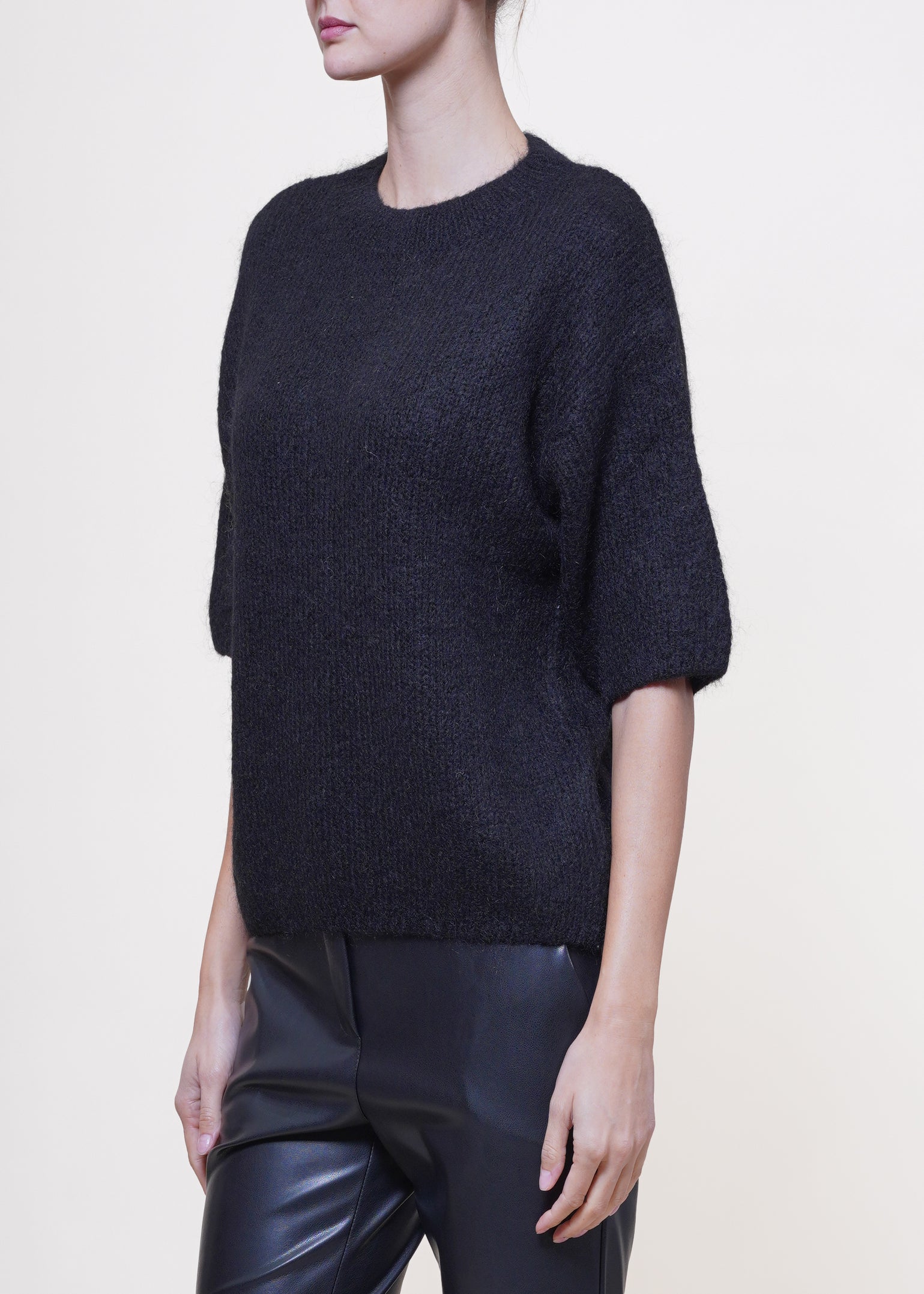 Anì - Maglia mezza manica in misto mohair e lana - NERO