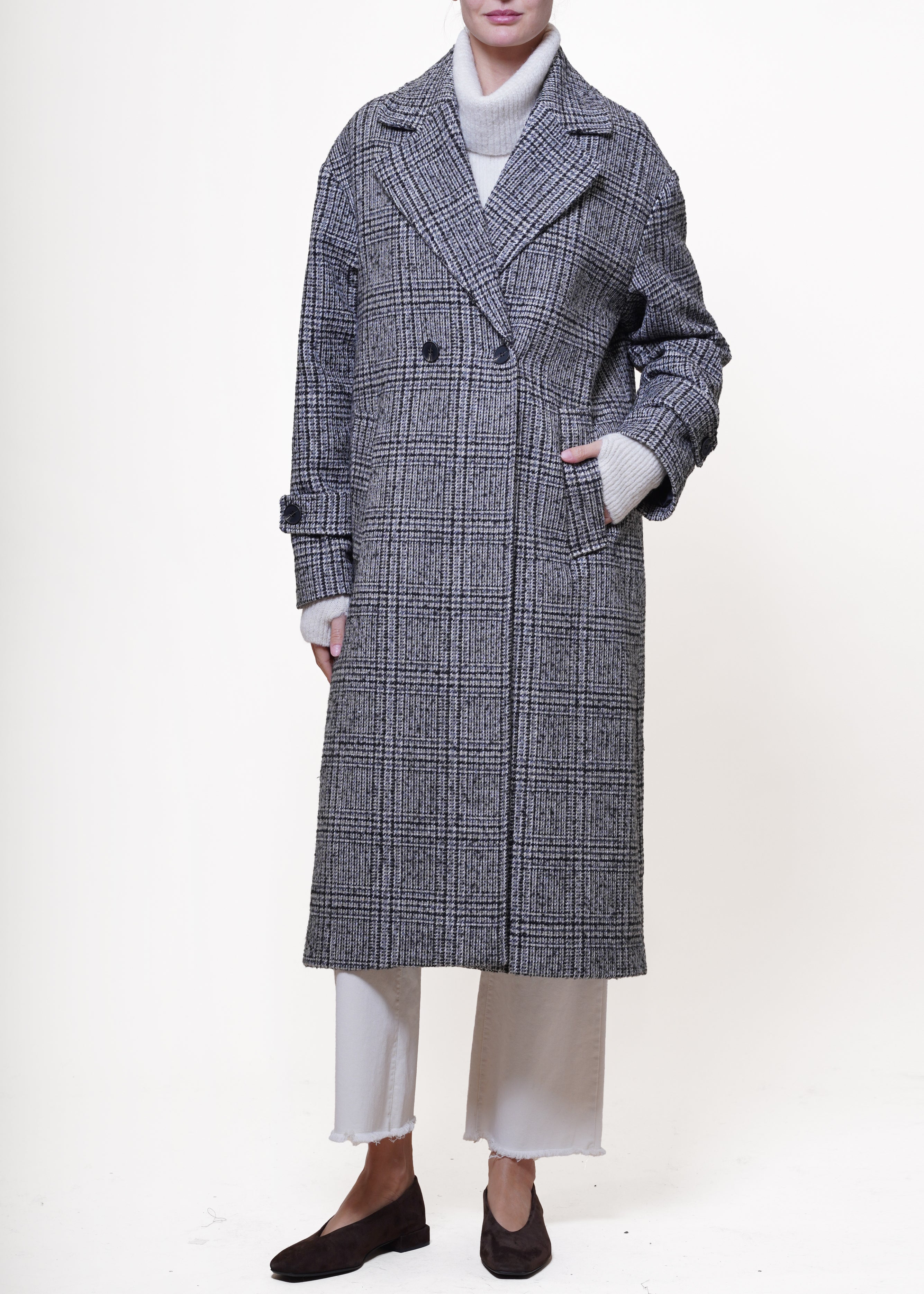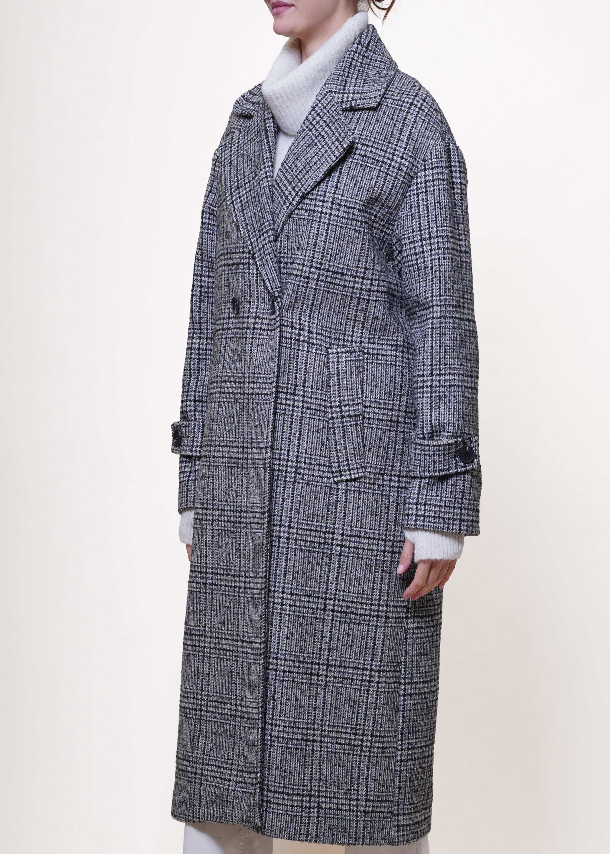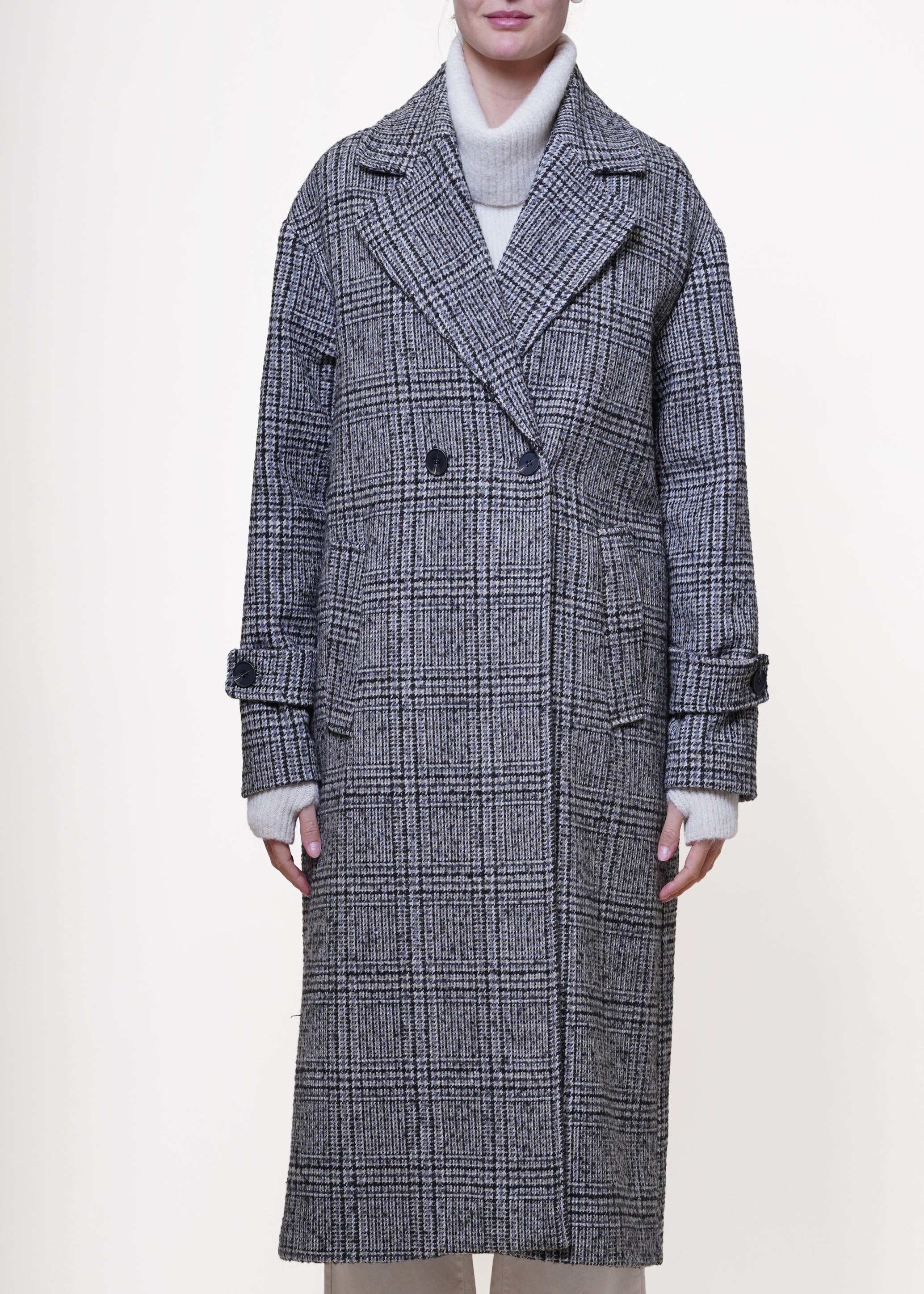 Susy Mix - Cappotto lungo check in misto lana - GRIGIO