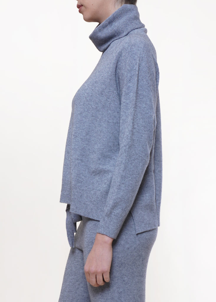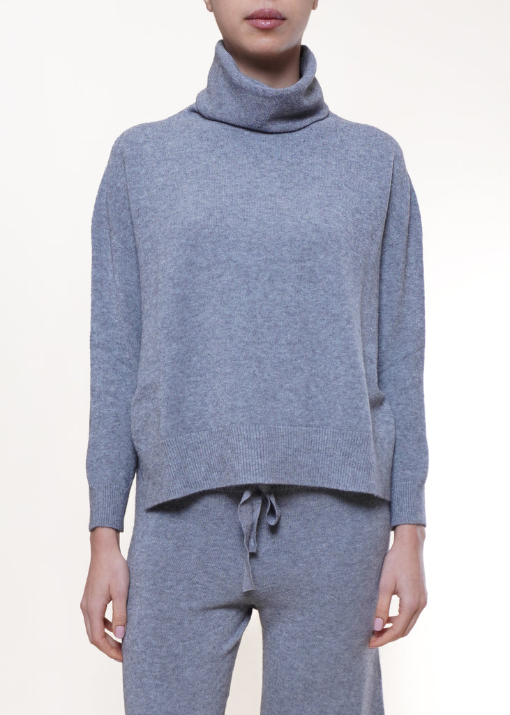 Kontatto - Maglia collo alto con spacchi laterali - GRIGIO MELANGE