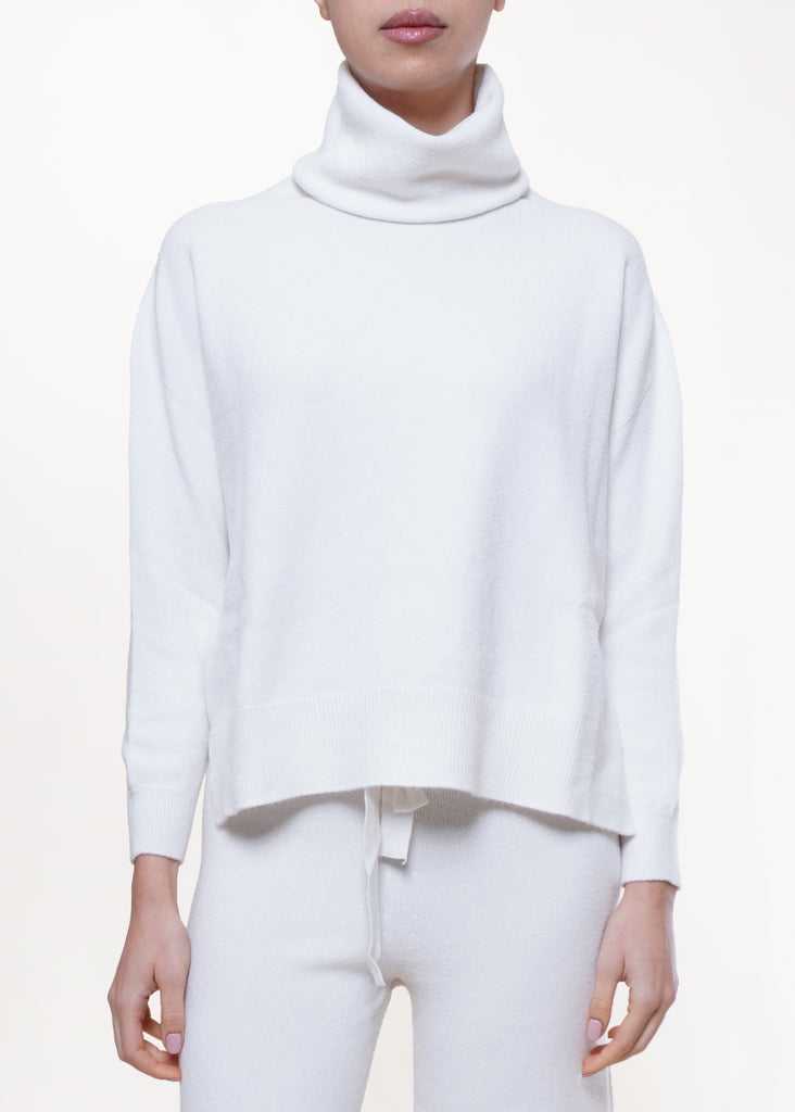 Kontatto - Maglia collo alto con spacchi laterali - PANNA