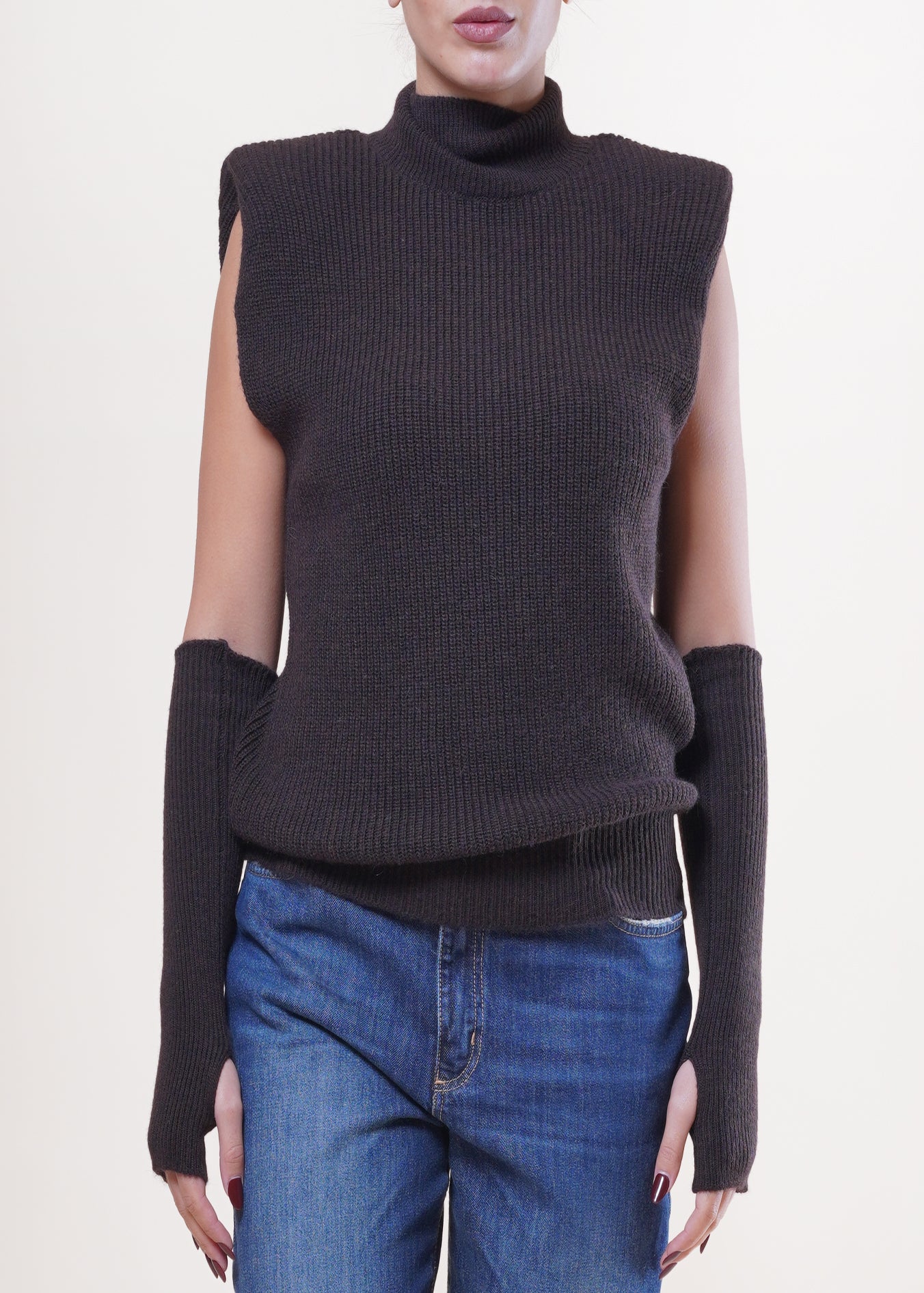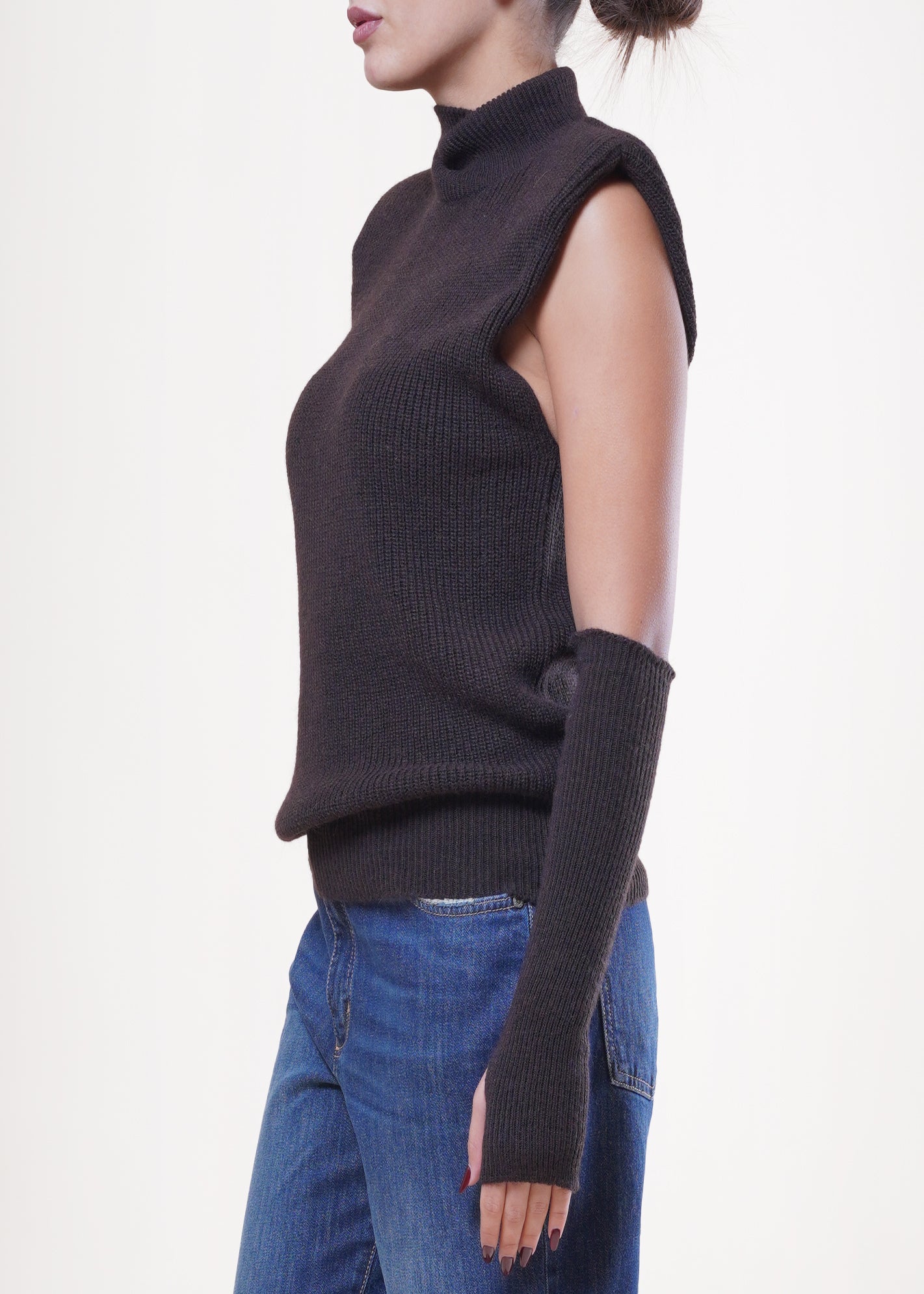 Kontatto - Gilet con manicotti in misto lana - MORO