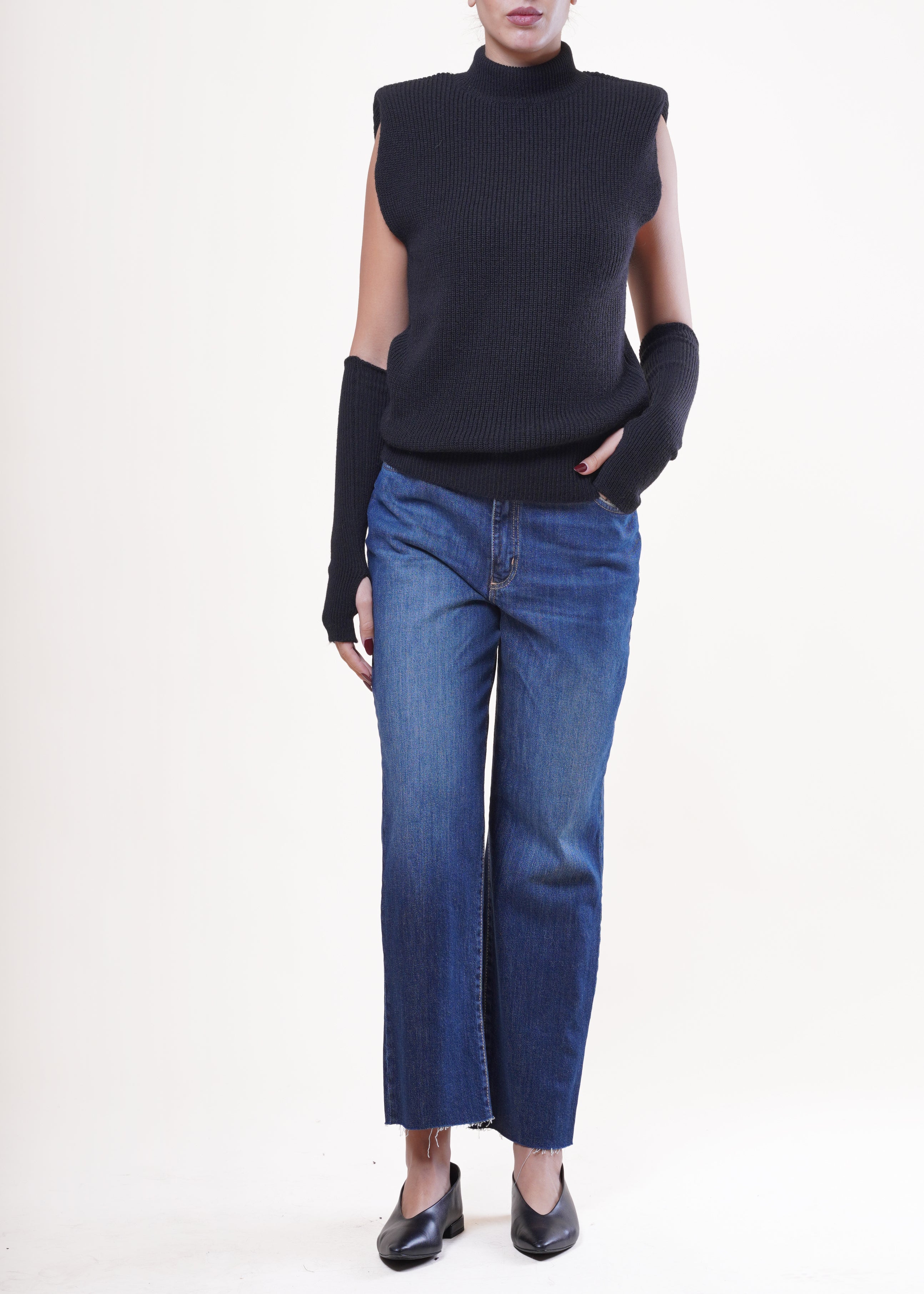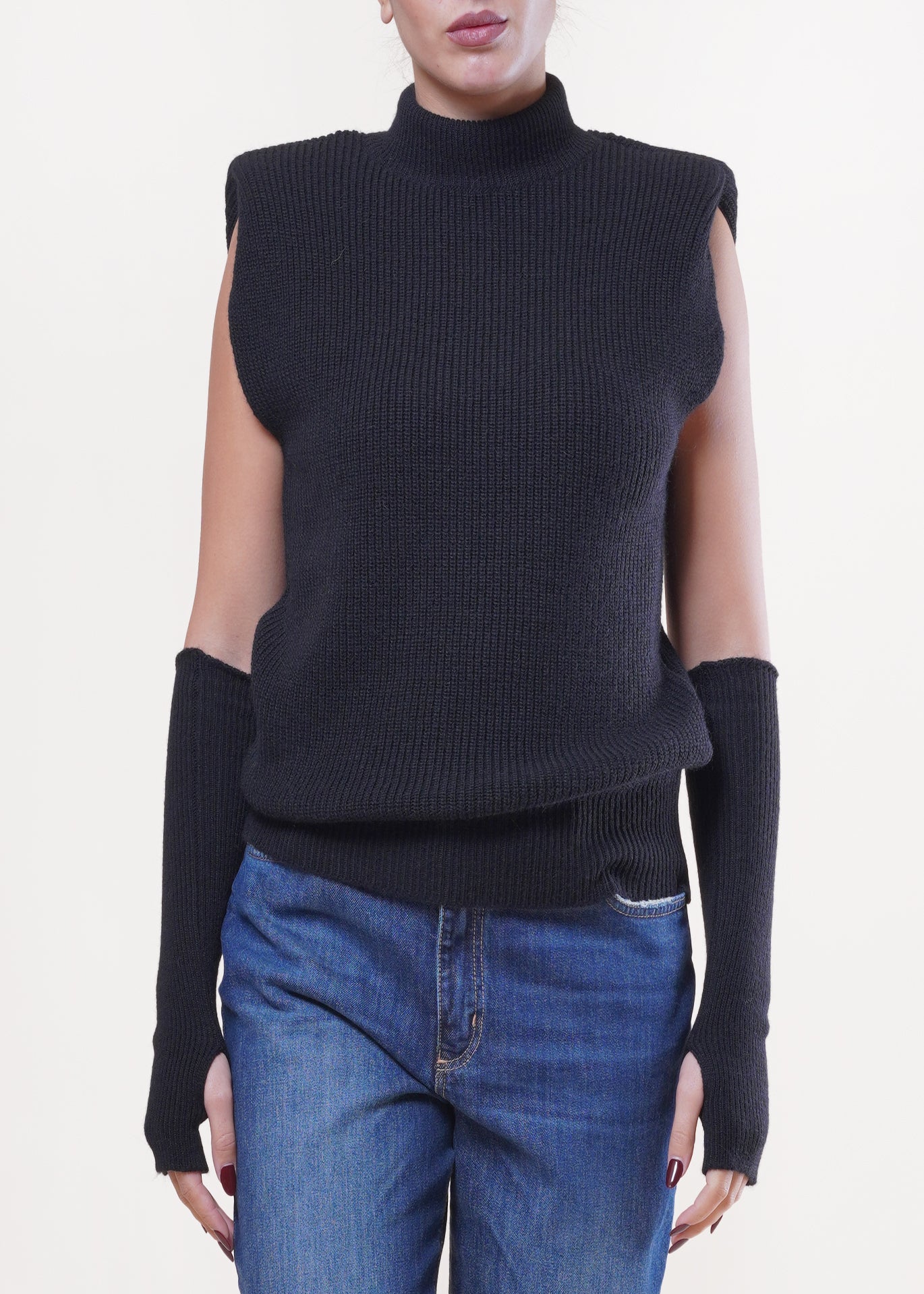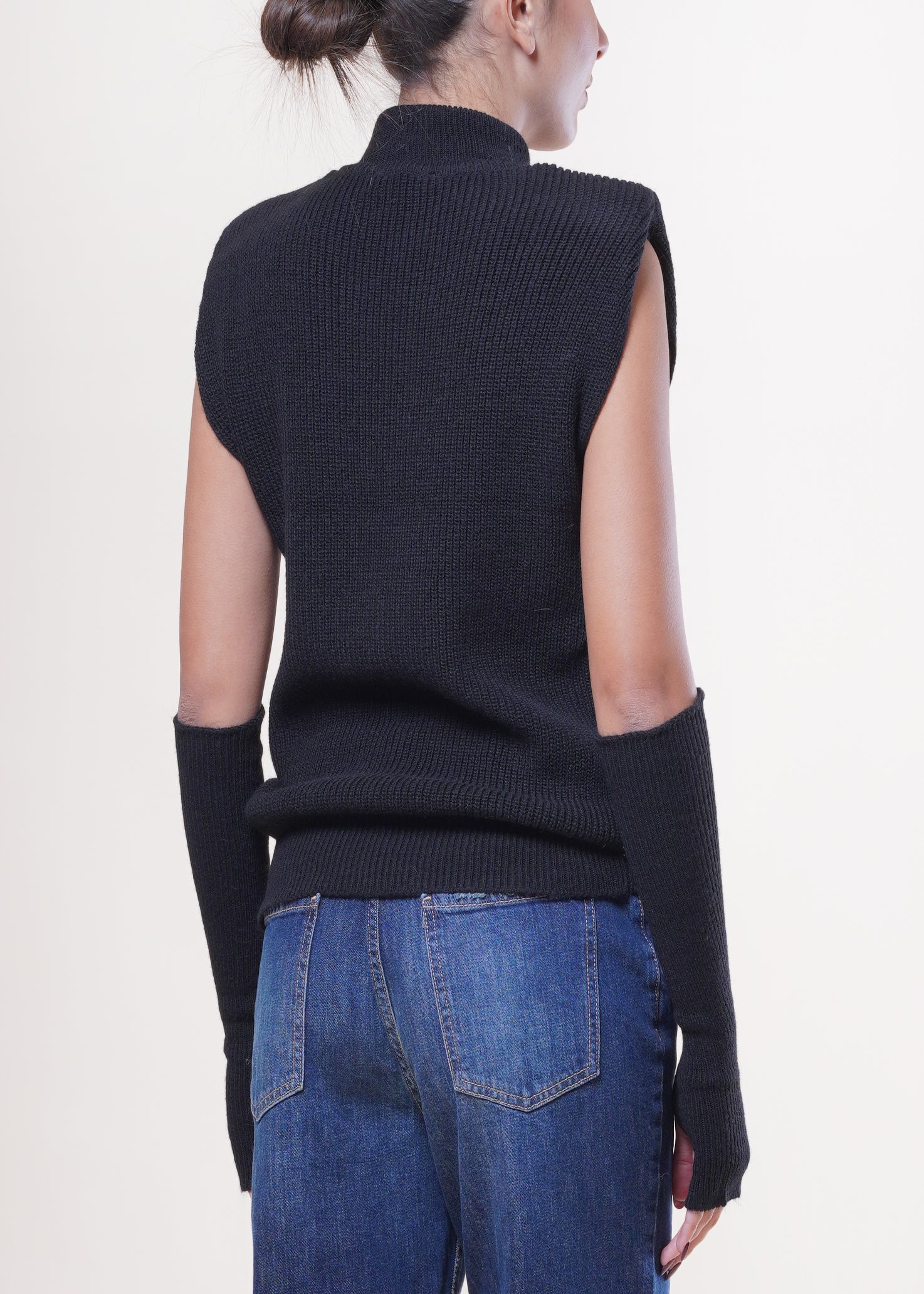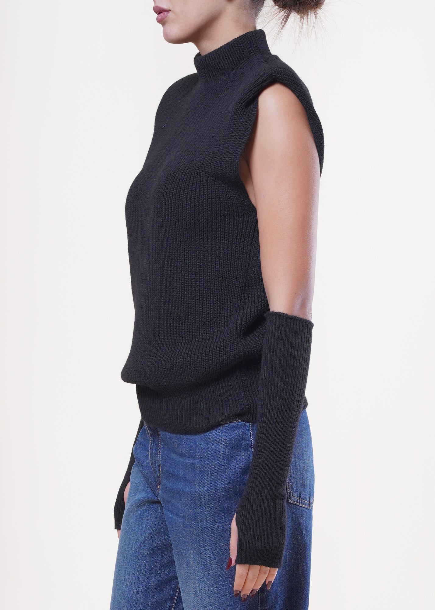 Kontatto - Gilet con manicotti in misto lana - NERO