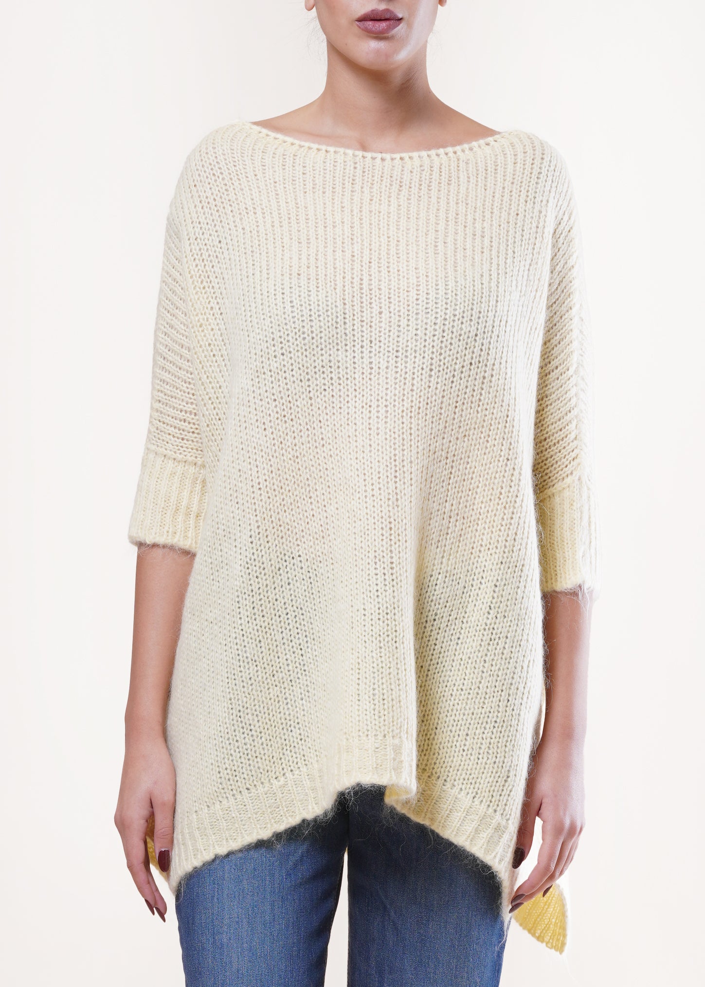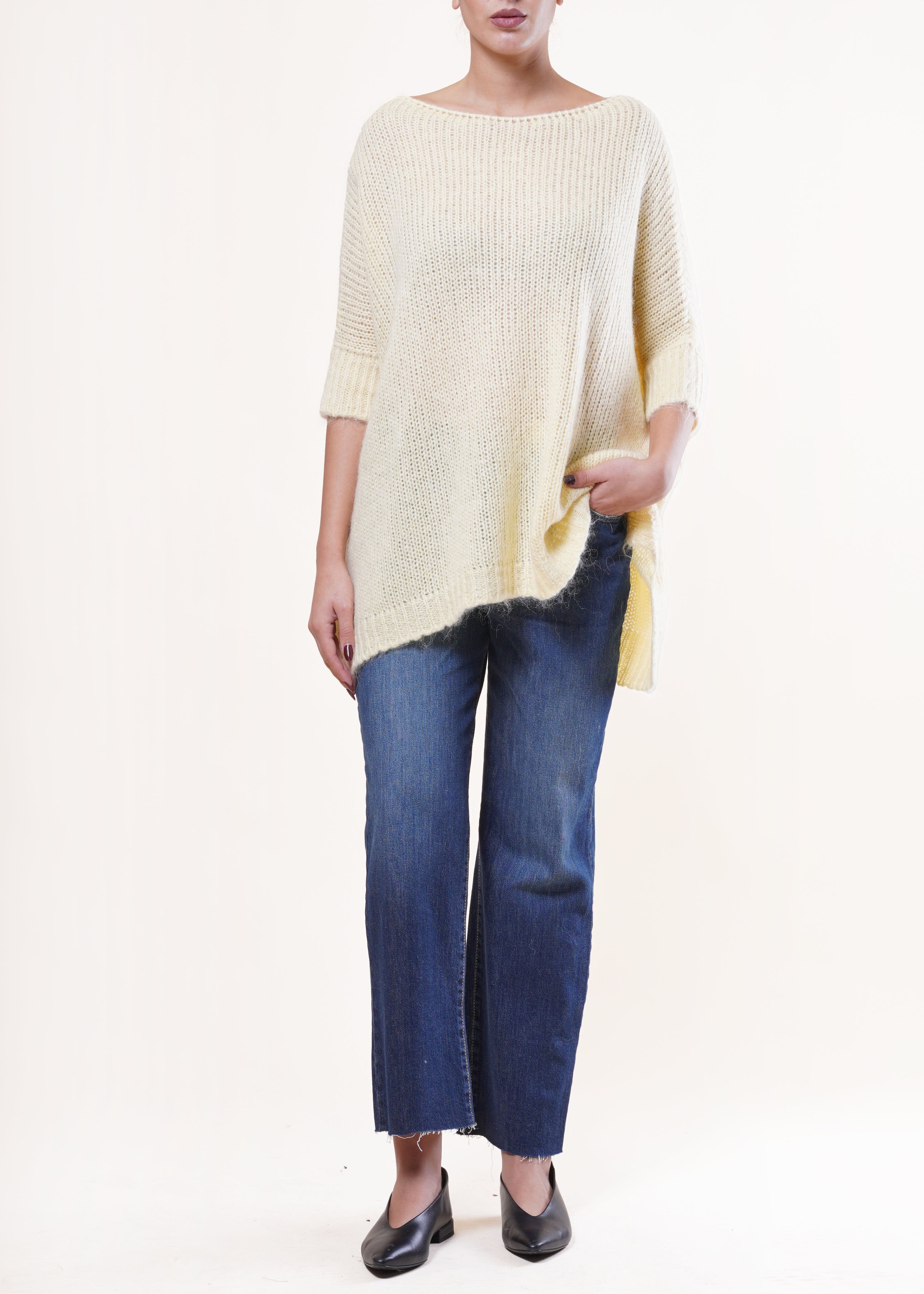 Kontatto - Maglia mezza manica misto lana - GIALLO PASTELLO