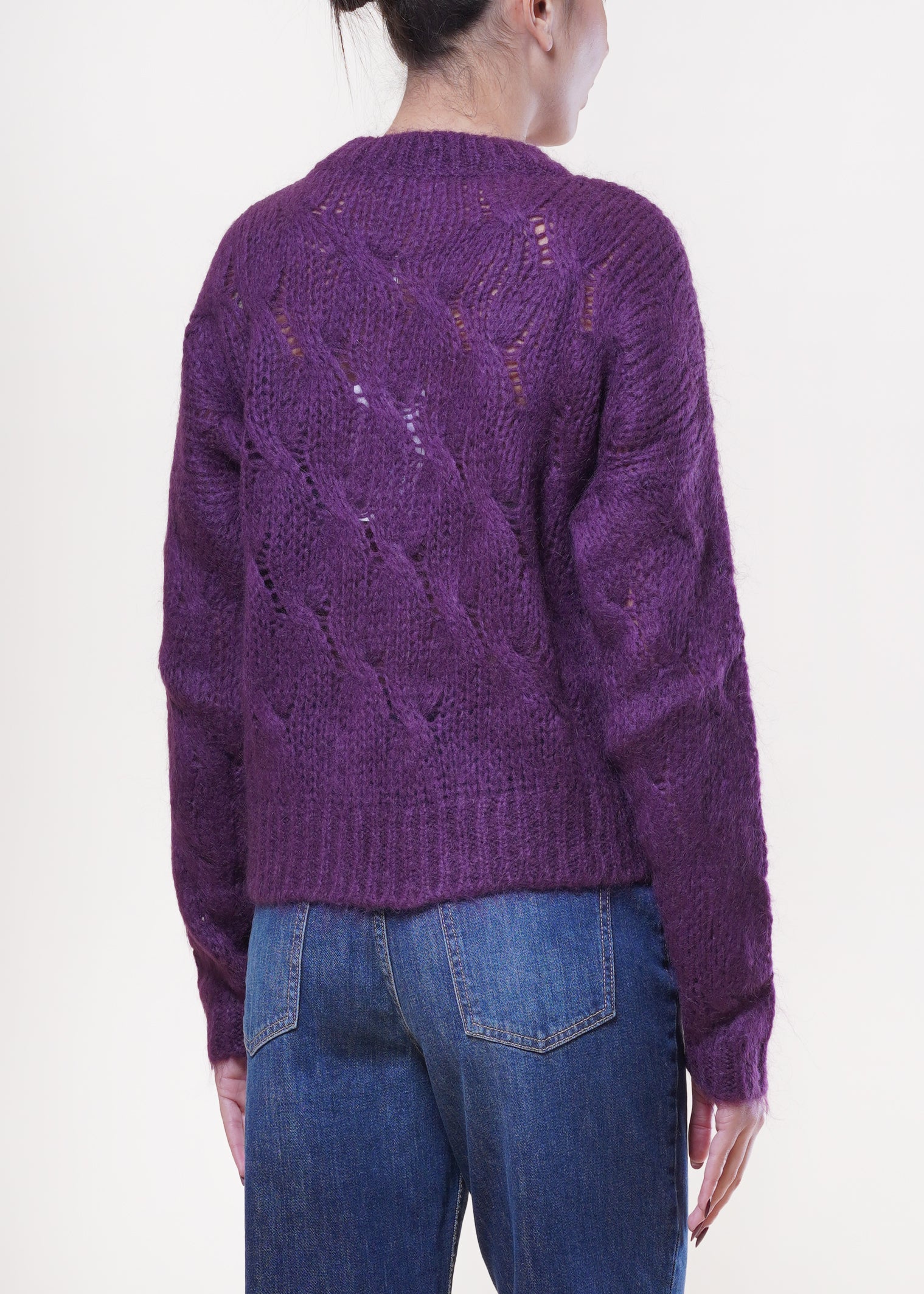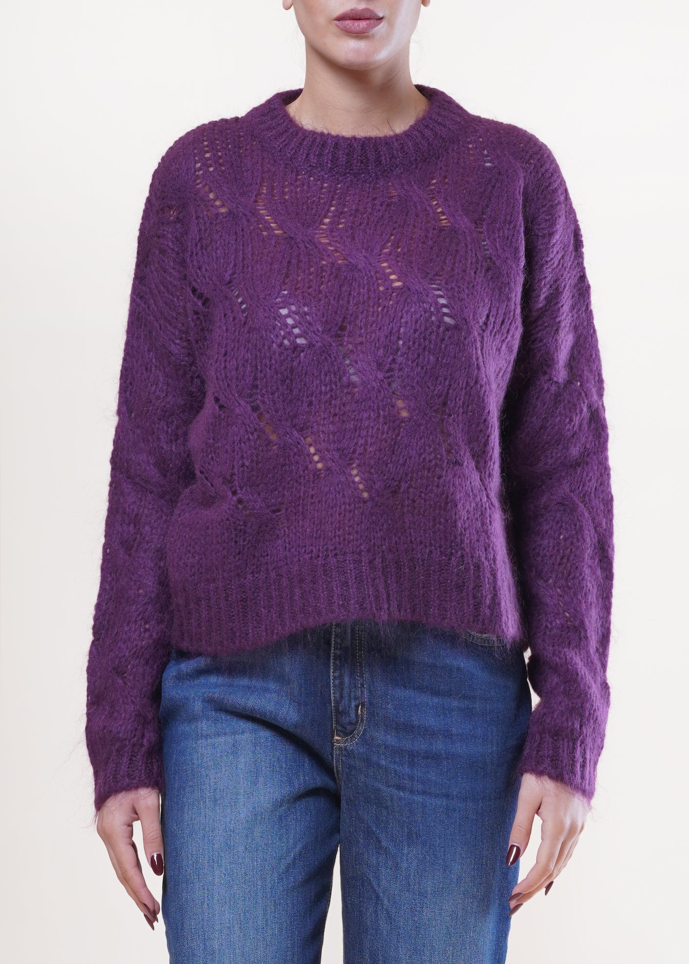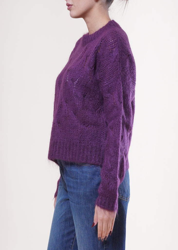 Kontatto - Maglia con trecce in misto lana - MELANZANA