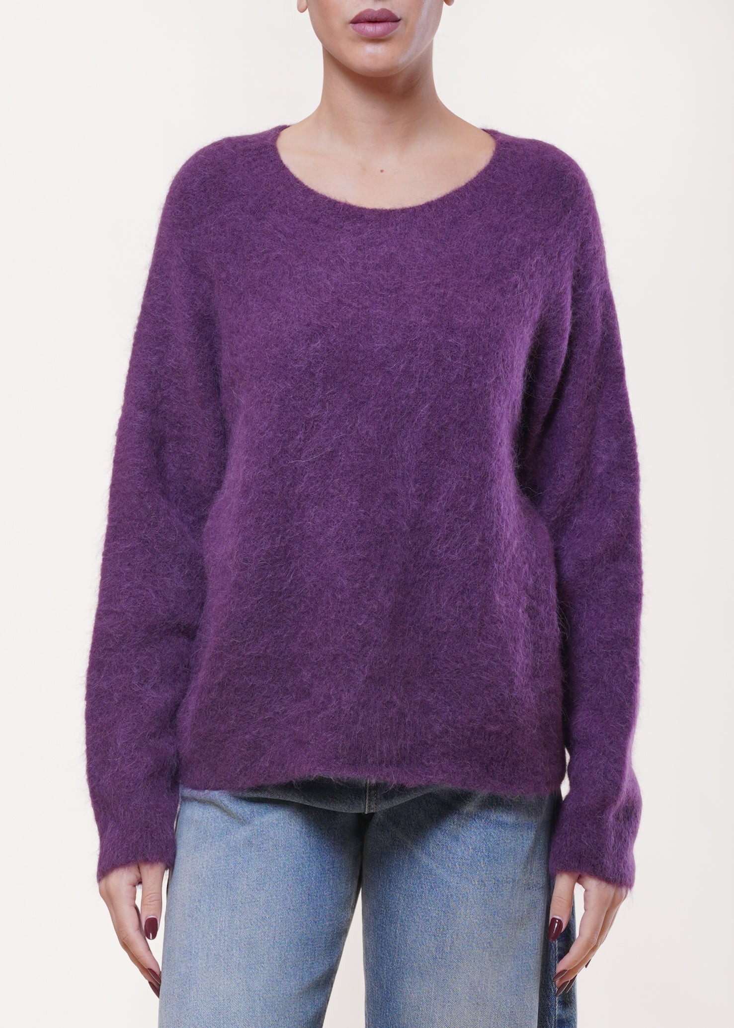 Kontatto - Maglia girocollo manica raglan - MELANZANA