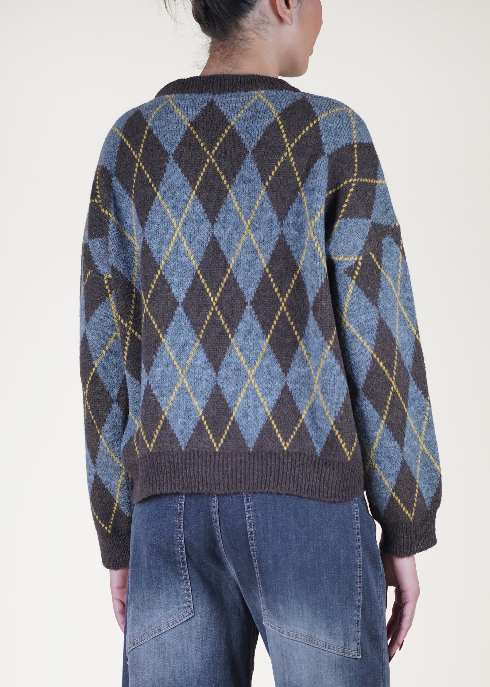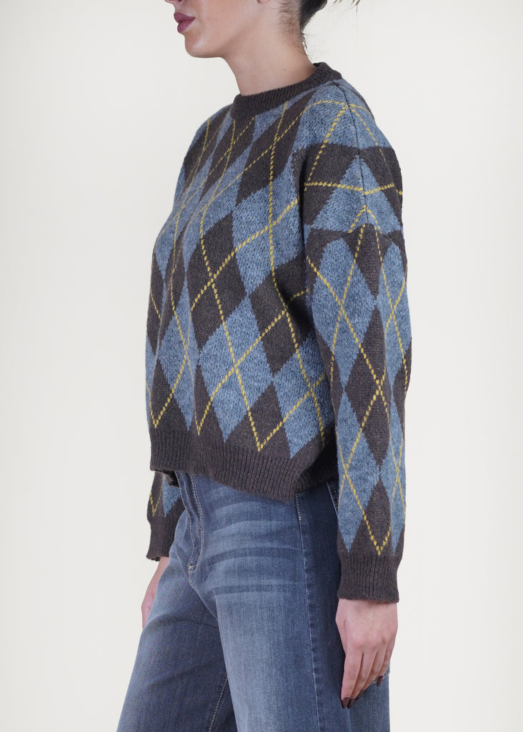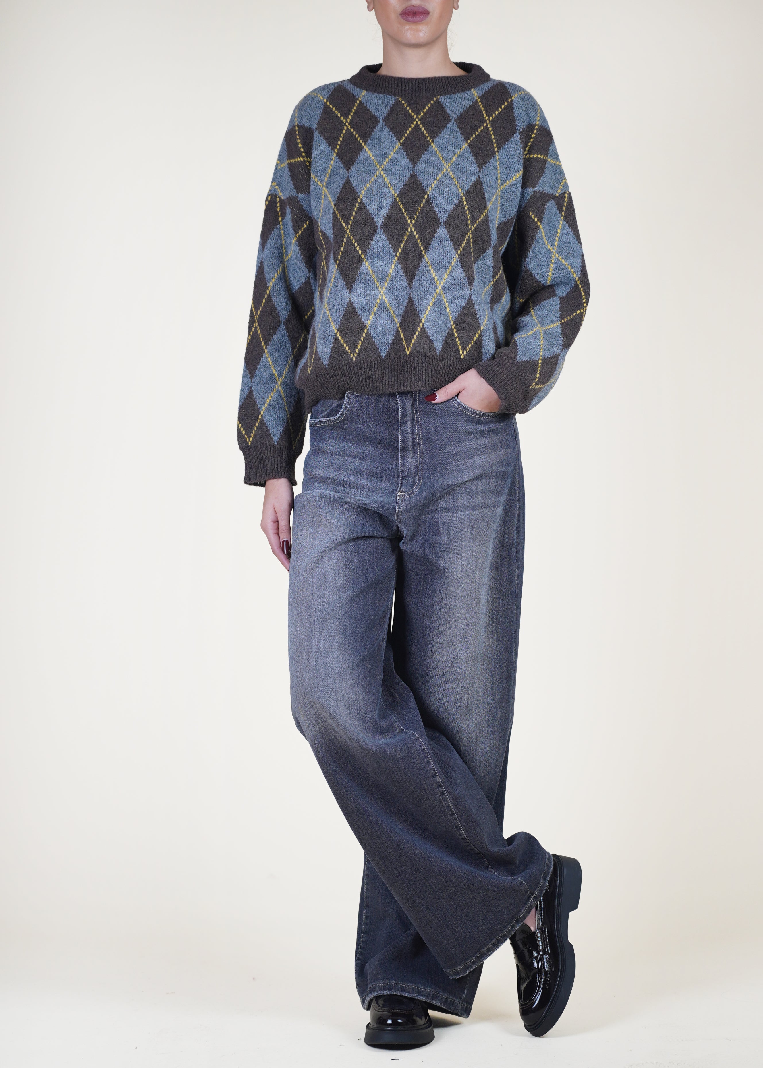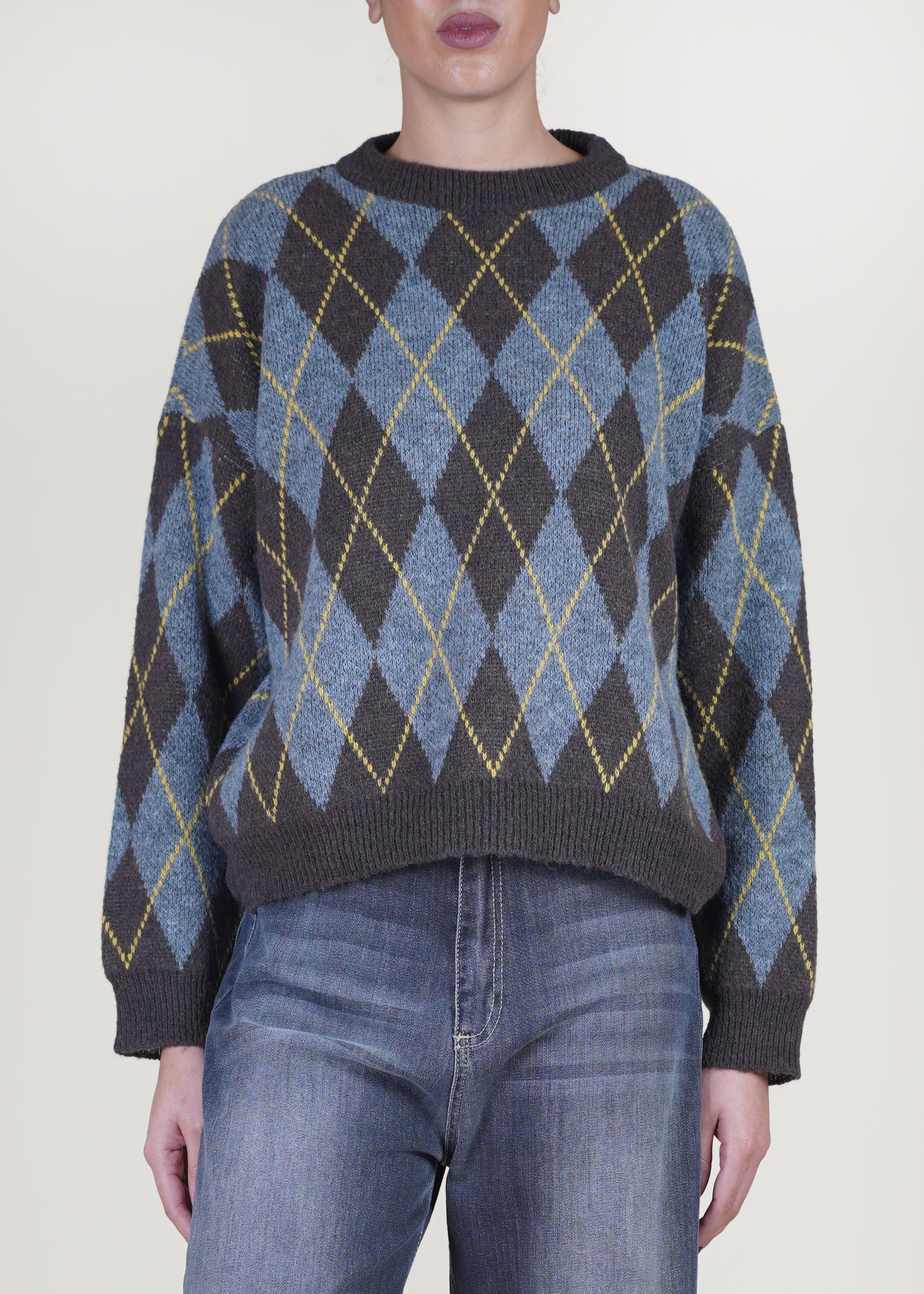 Kontatto - Maglia a rombi girocollo - MORO/GRIGIO