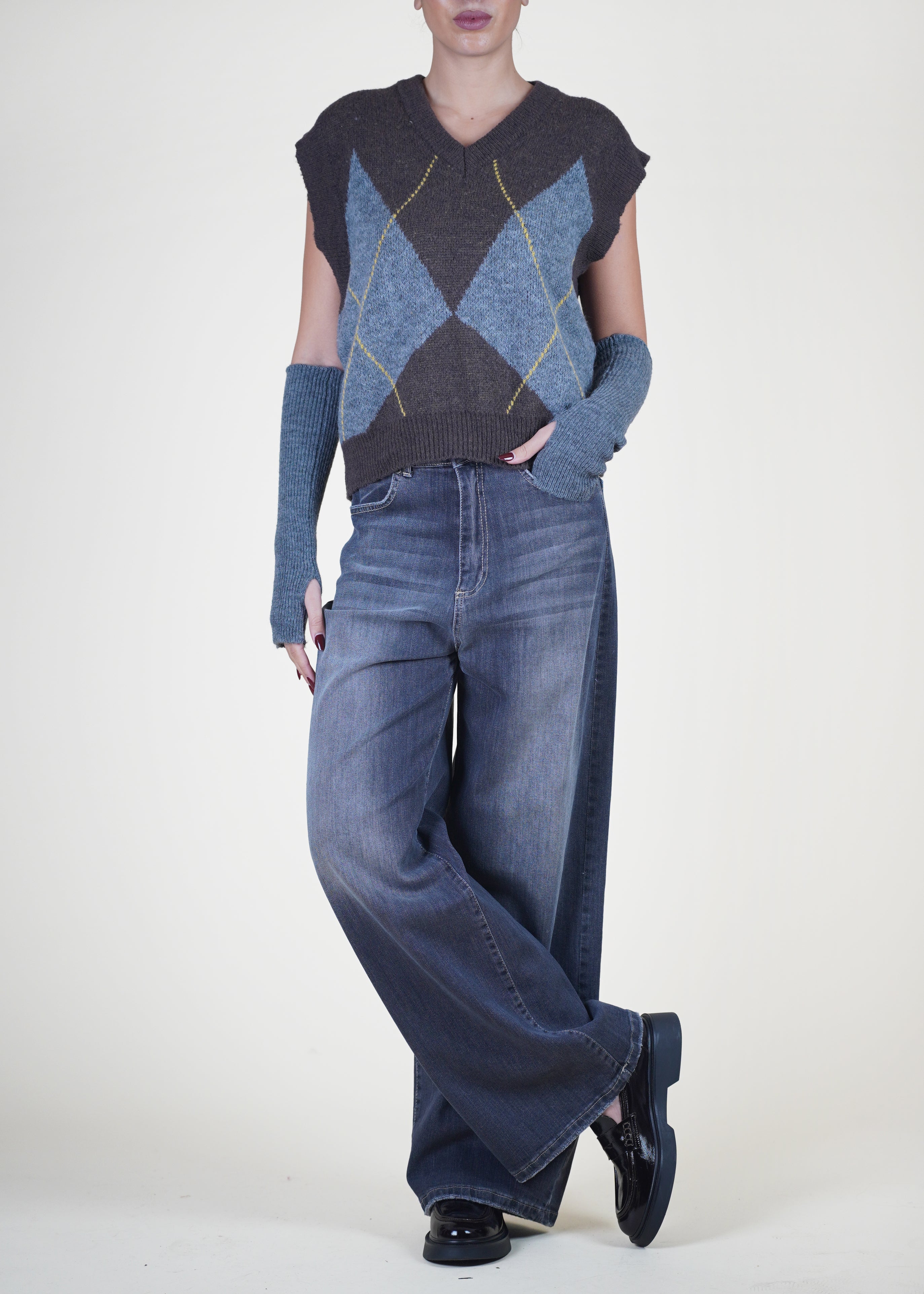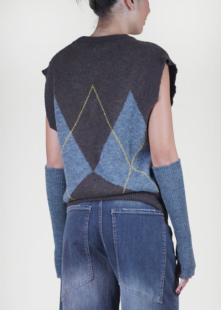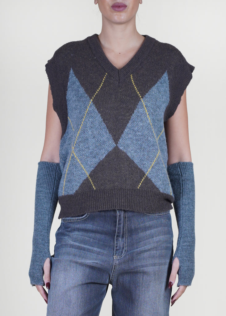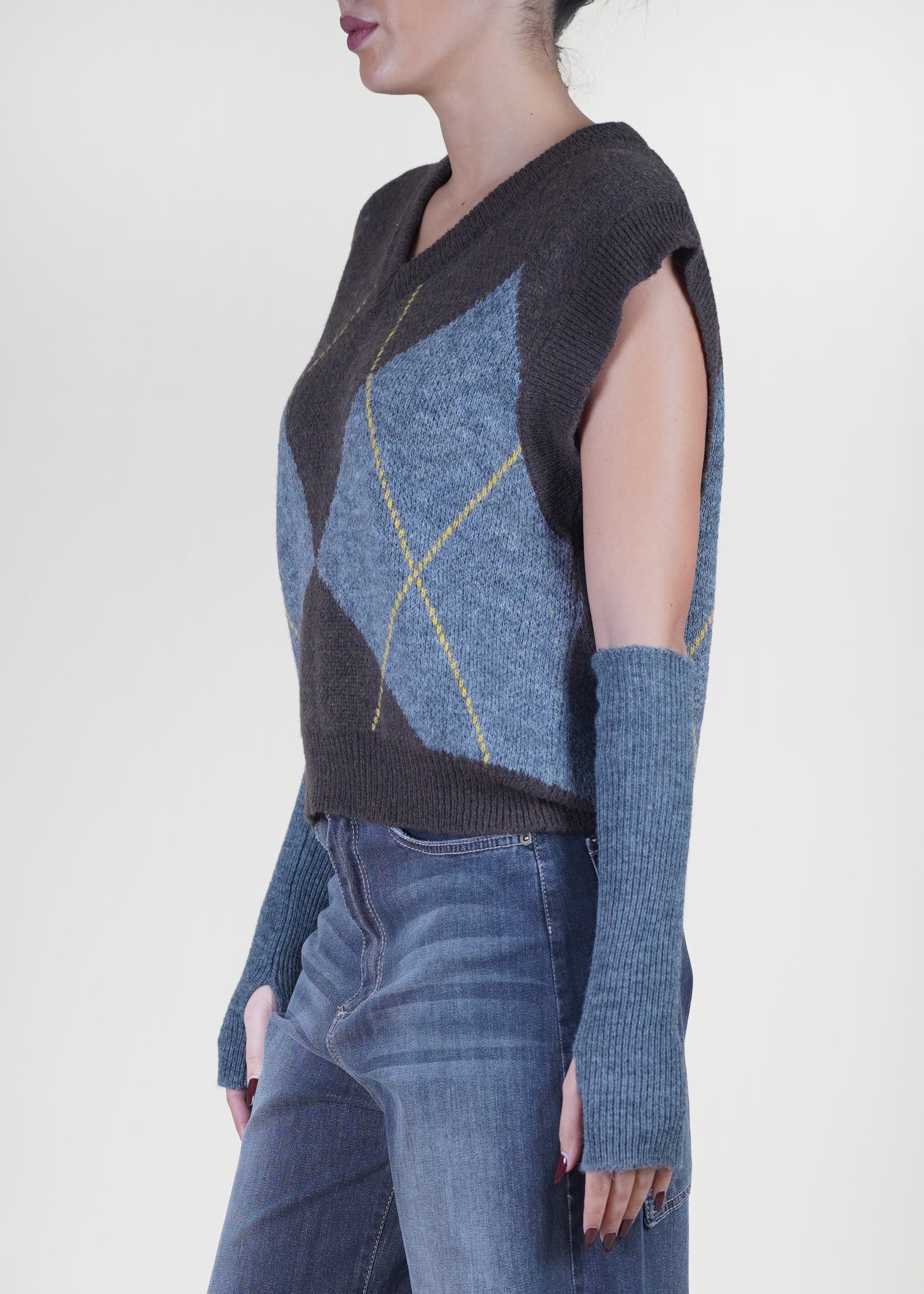 Kontatto - Gilet con rombi misto lana - MORO/GRIGIO