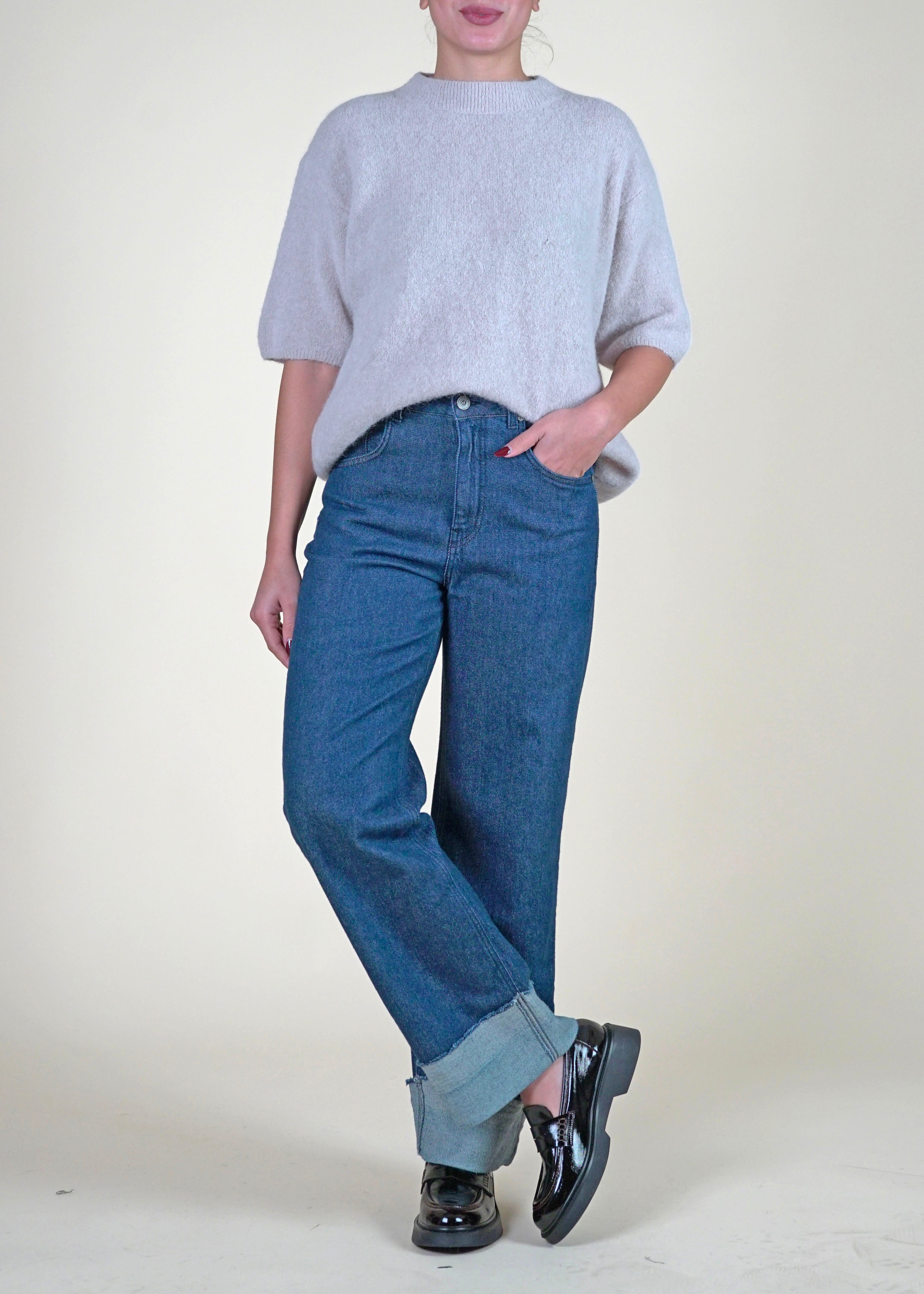 Anì - Maglia mezza manica misto alpaca - AVORIO