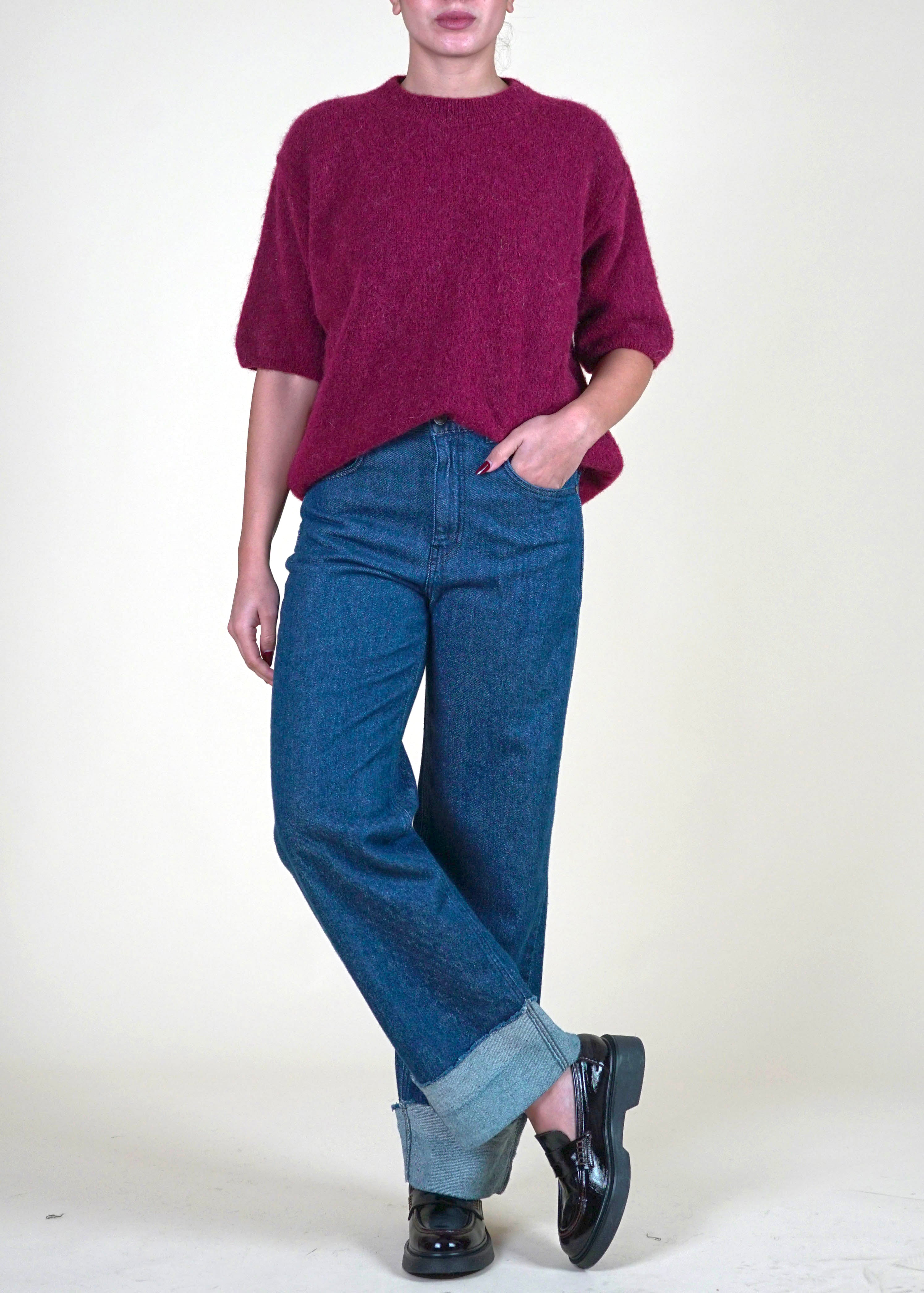 Anì - Maglia mezza manica misto alpaca - BORDEAUX