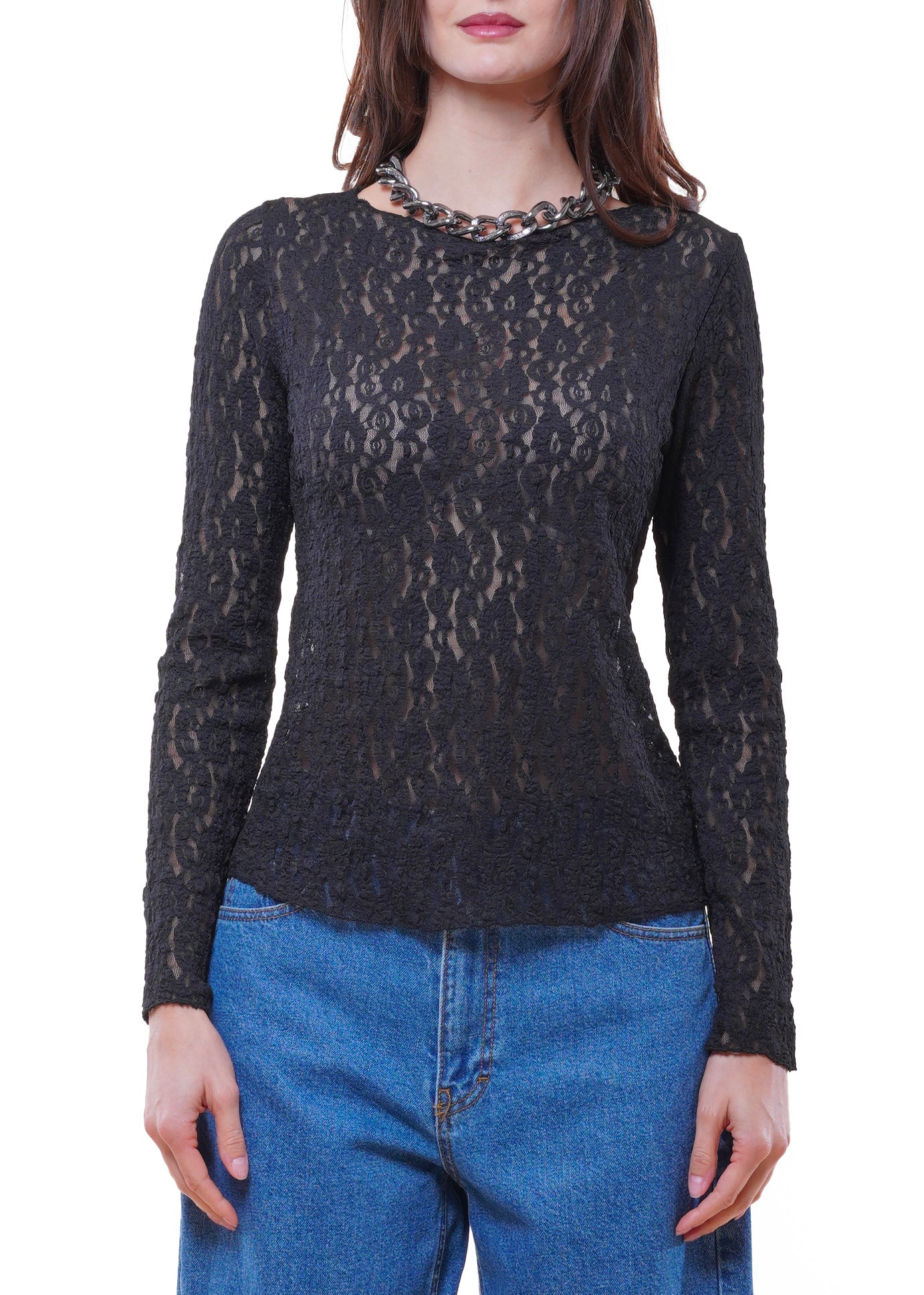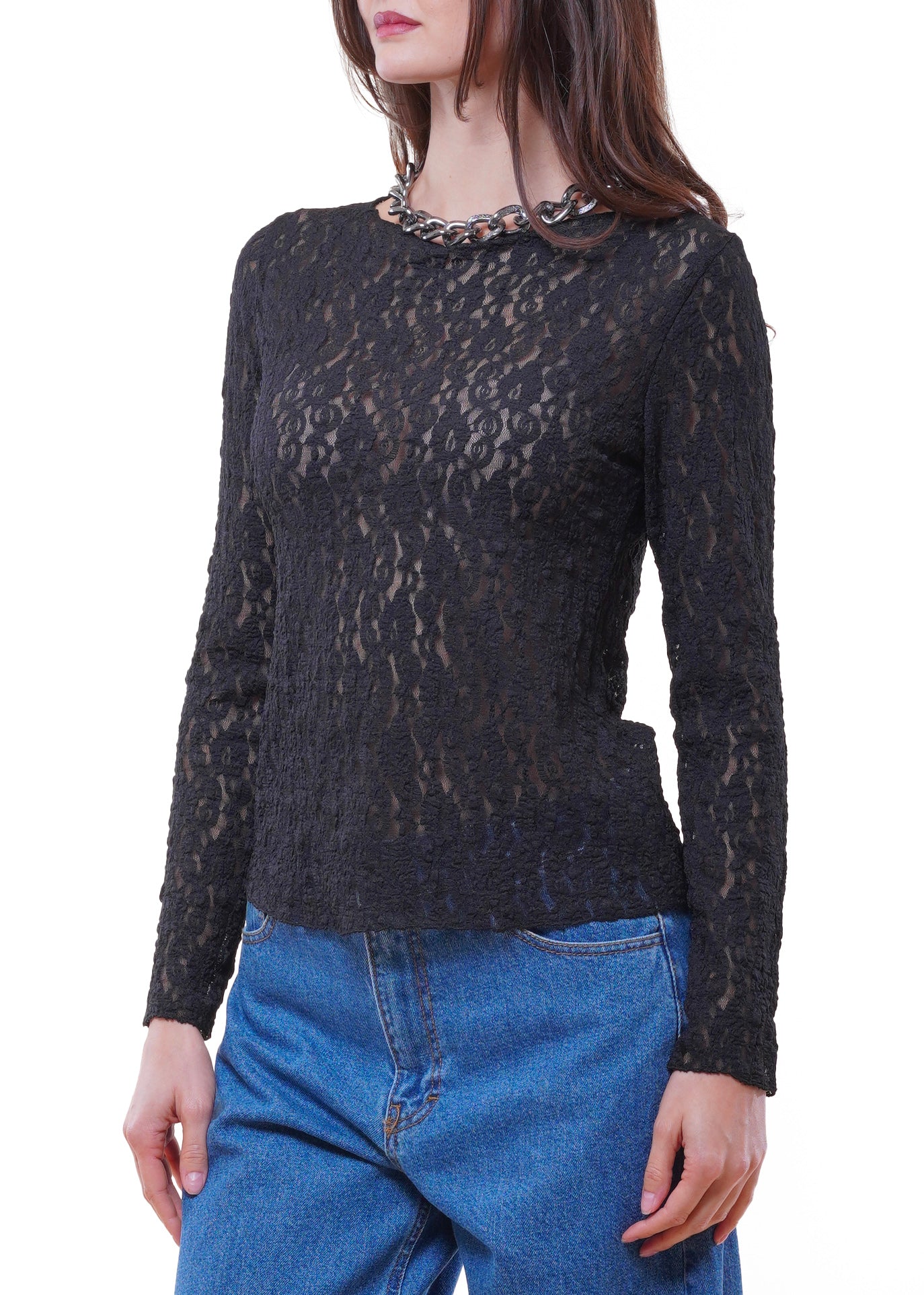Anì - Maglia in pizzo goffrato - NERO
