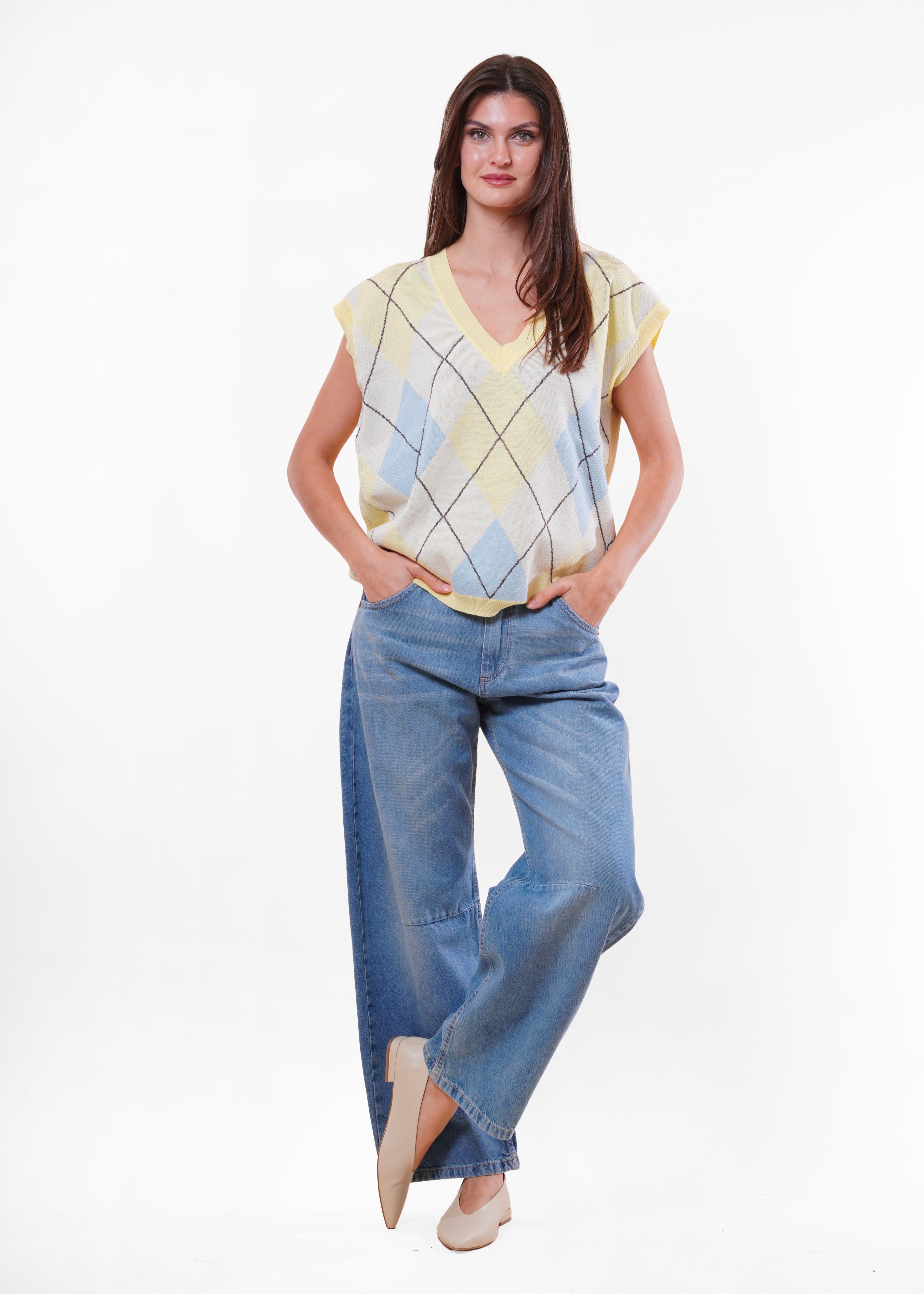Motel - Gilet a rombi in cotone - GIALLO