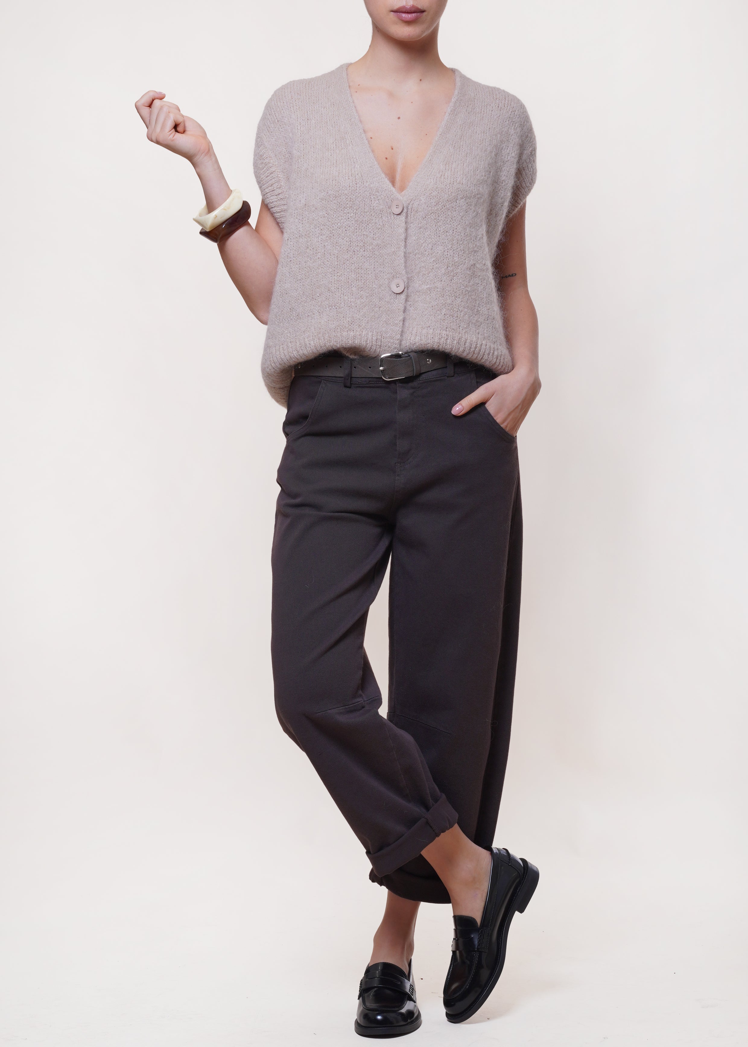 Motel - Pantalone barrel con risvolto - MORO
