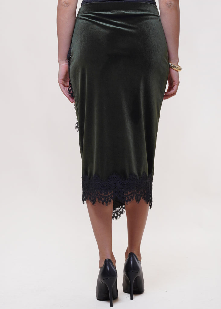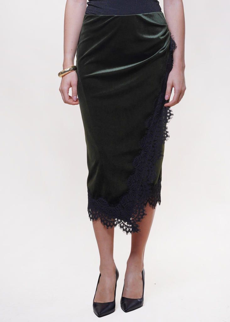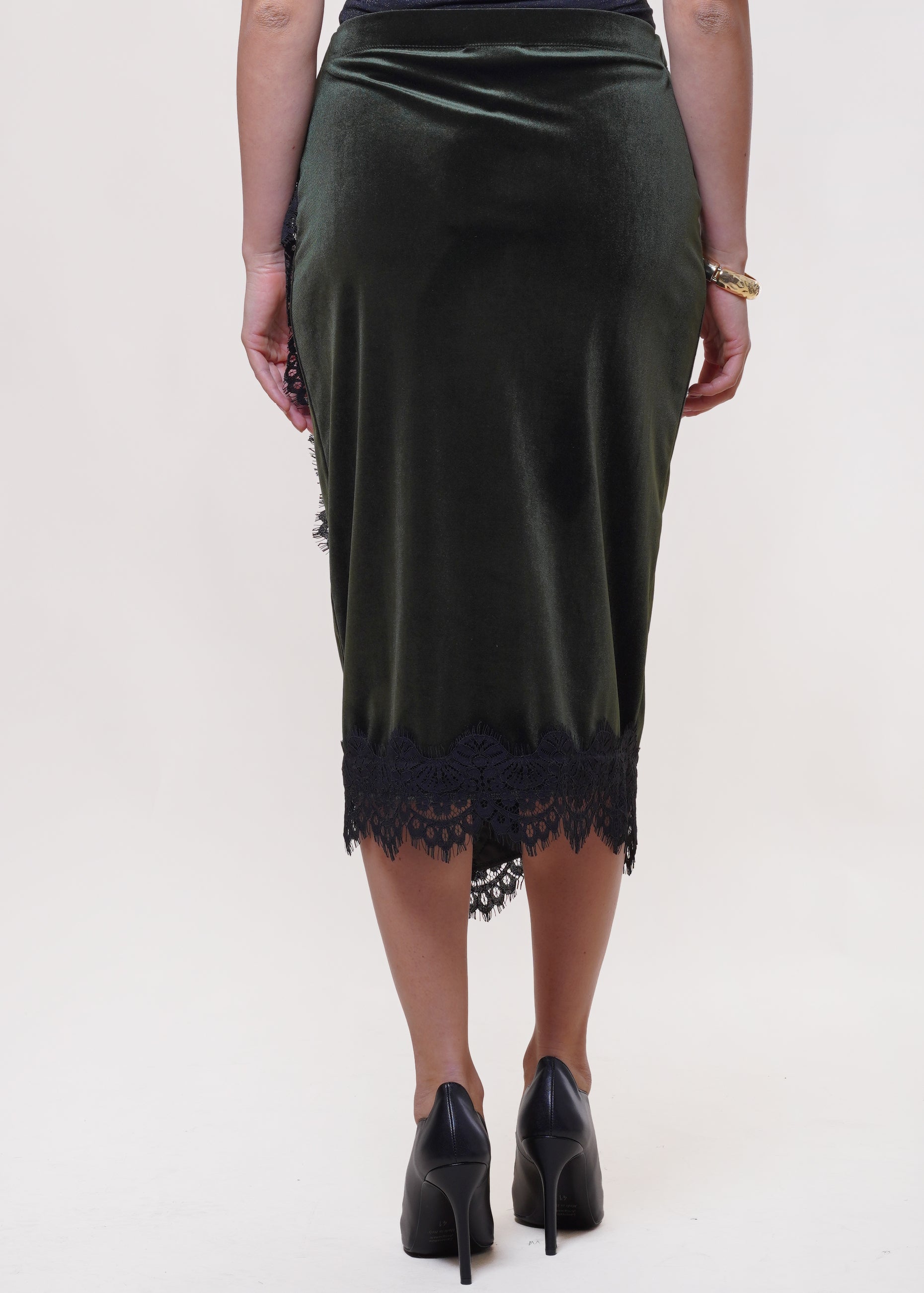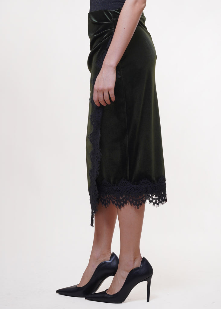 Motel - Gonna in velluto con dettagli pizzo - VERDE