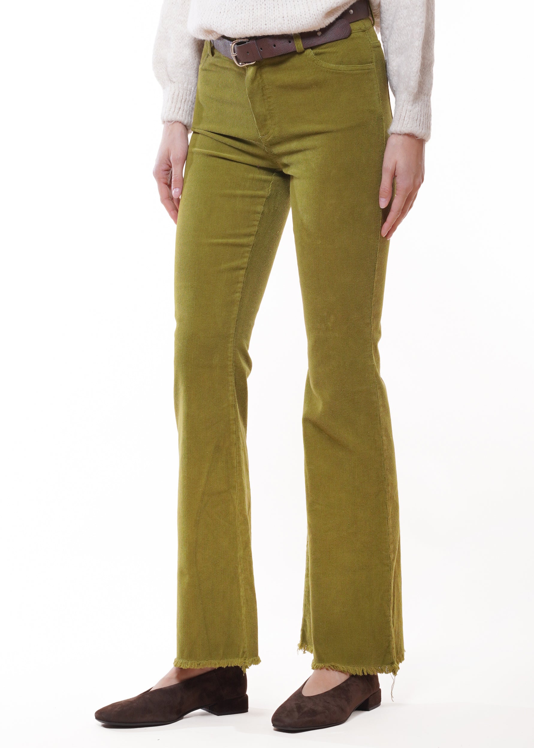 Motel - Pantalone a zampa sfrangiato in velluto - OLIO
