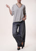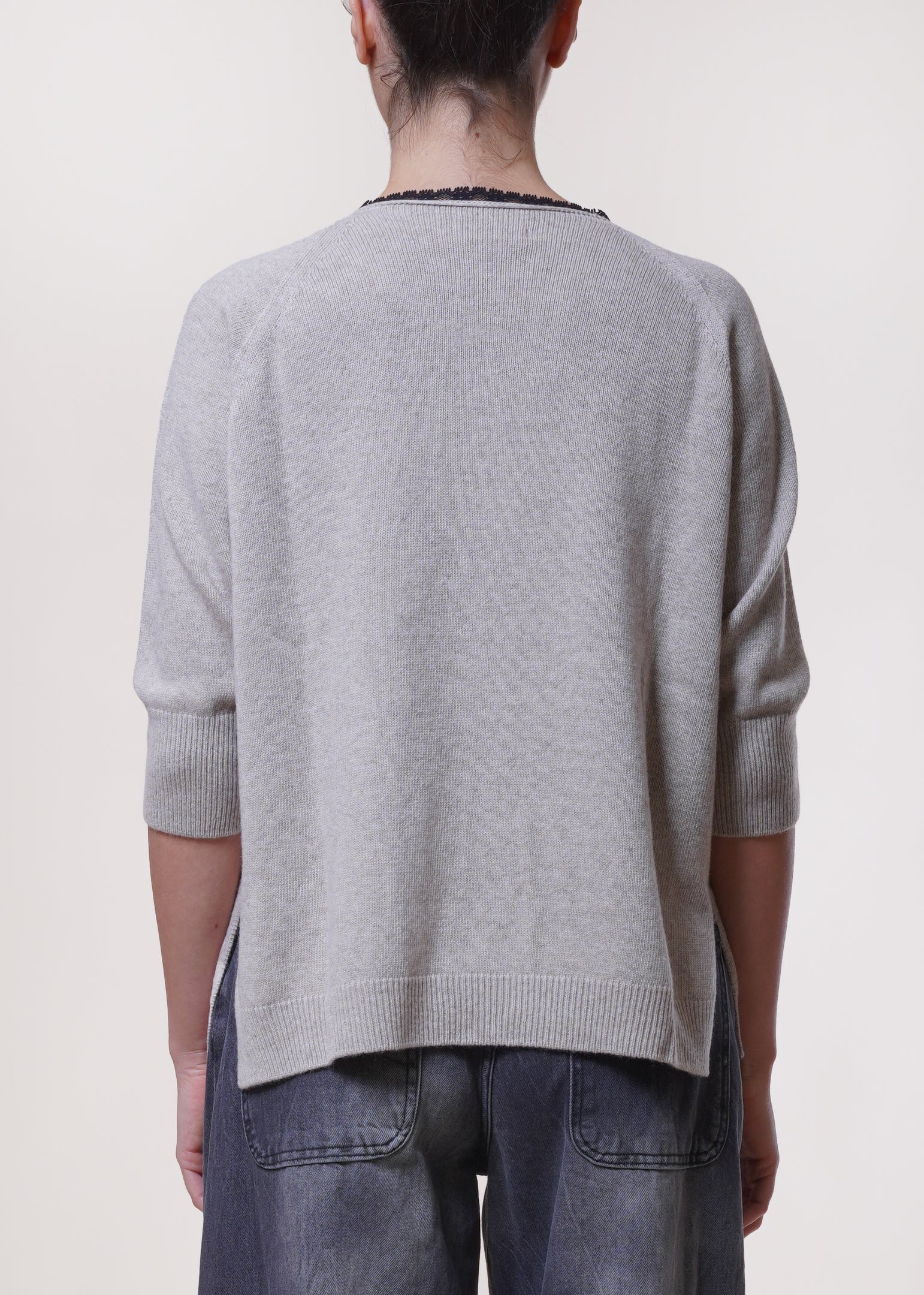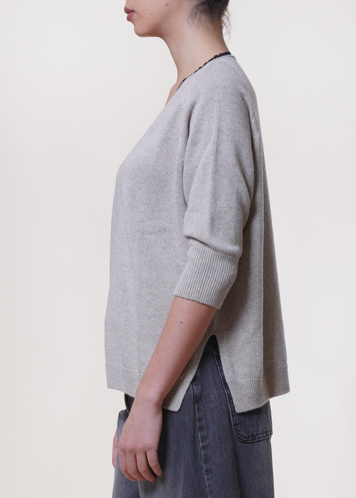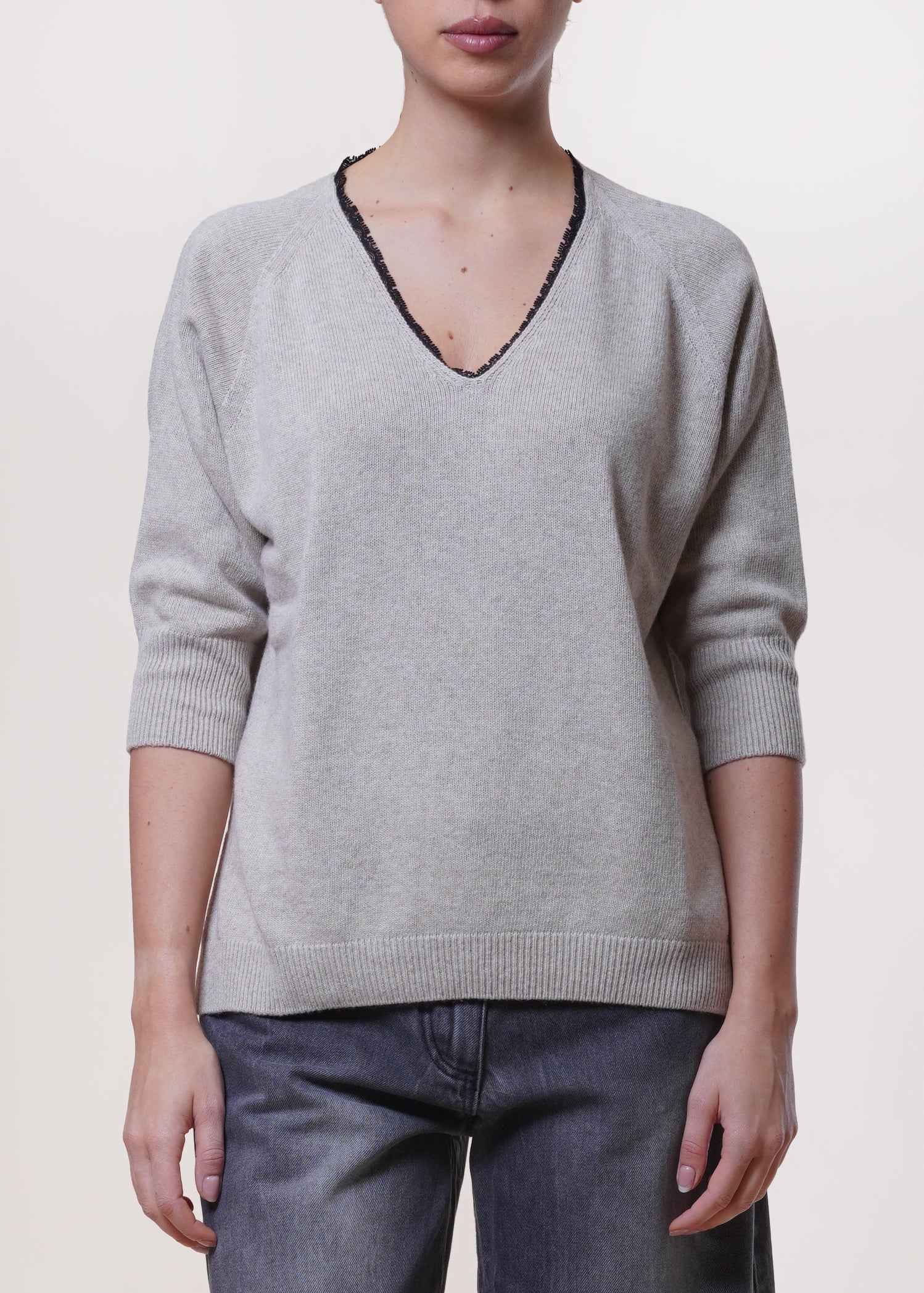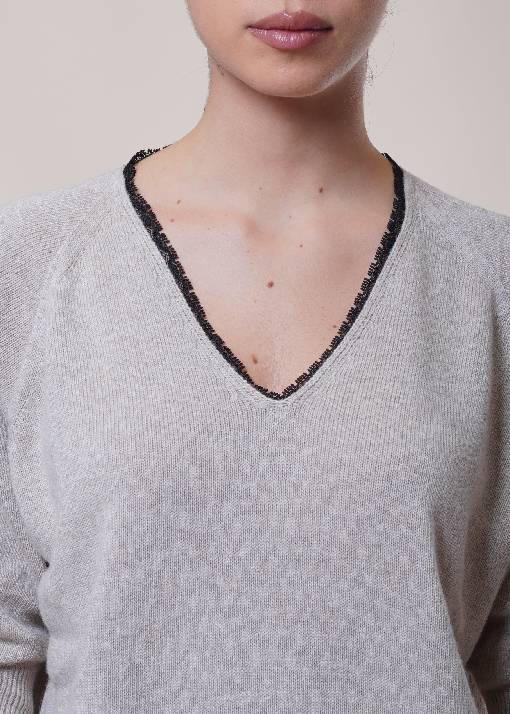 Motel - Maglia a V con pizzo misto cashmere - BEIGE