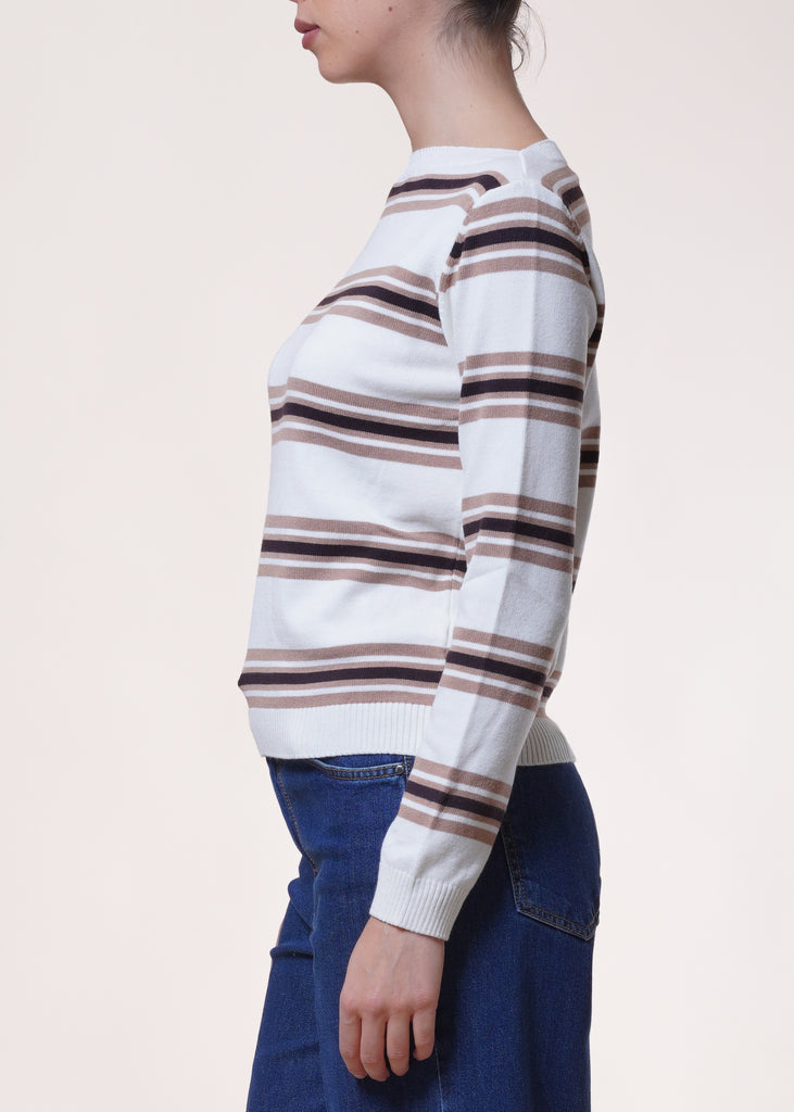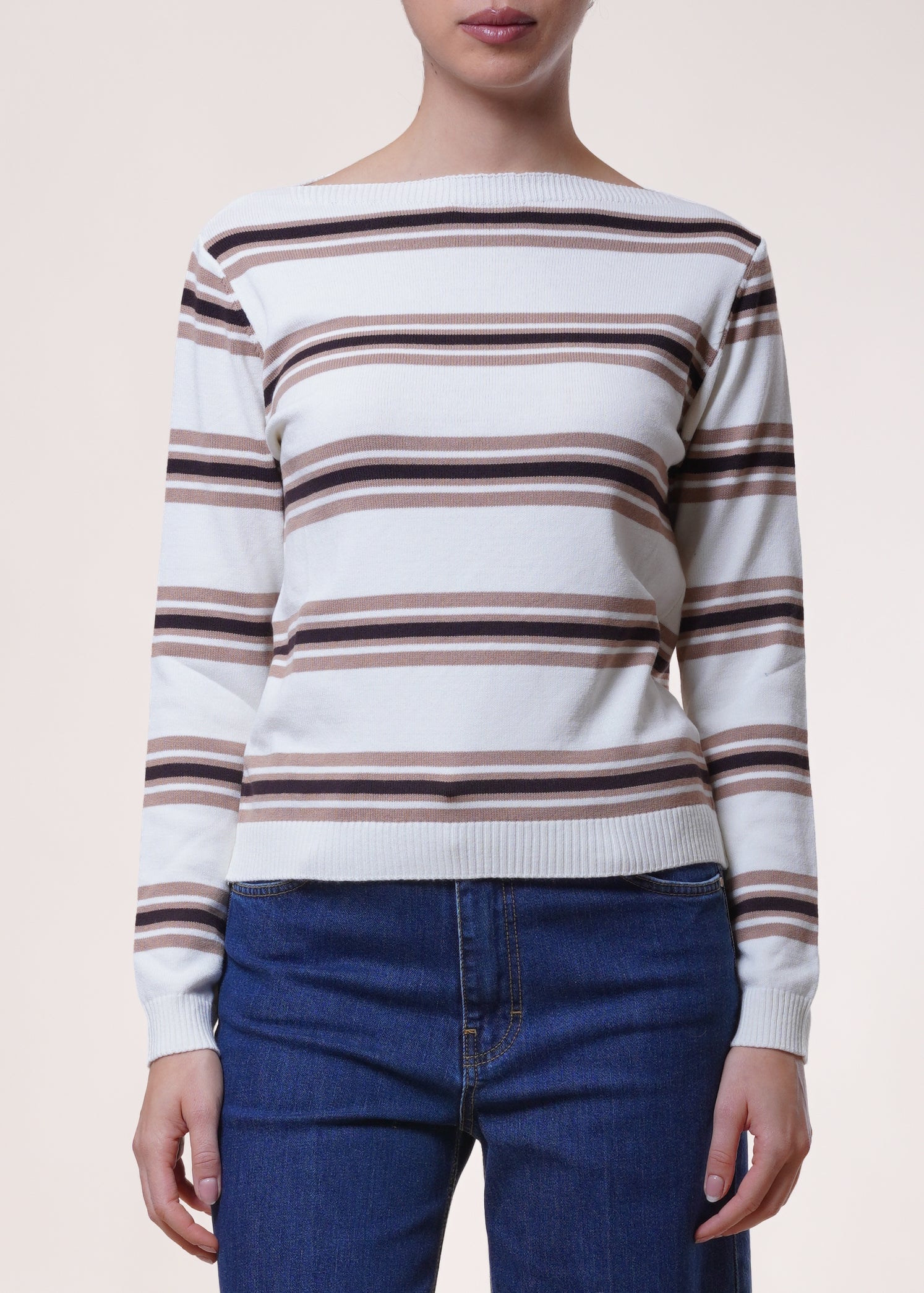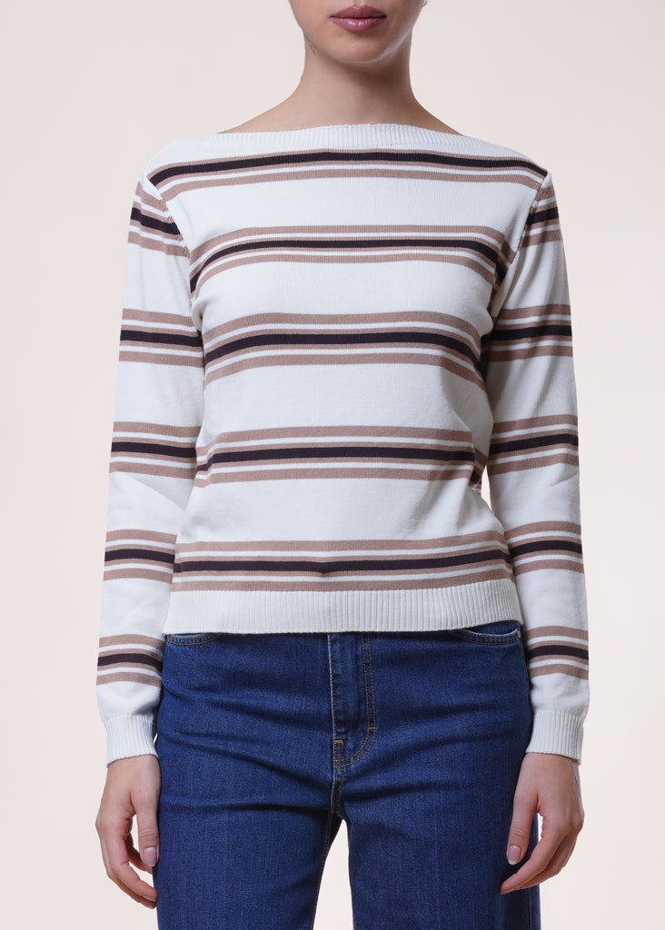 Motel - Maglia scollo a barca a righe - PANNA/CAMEL