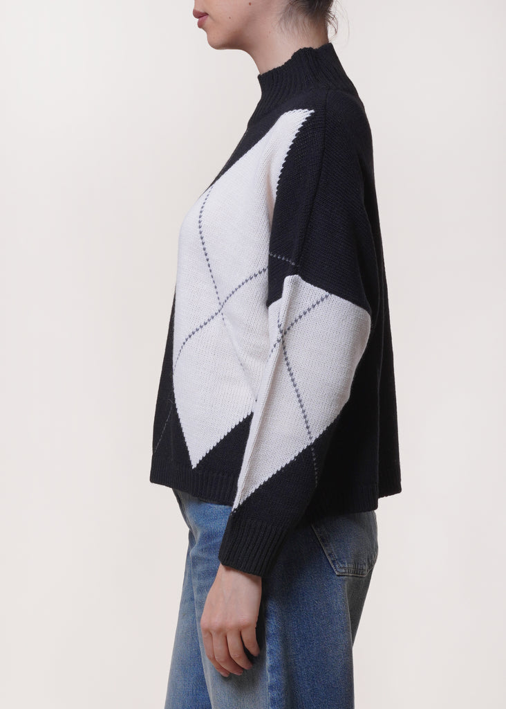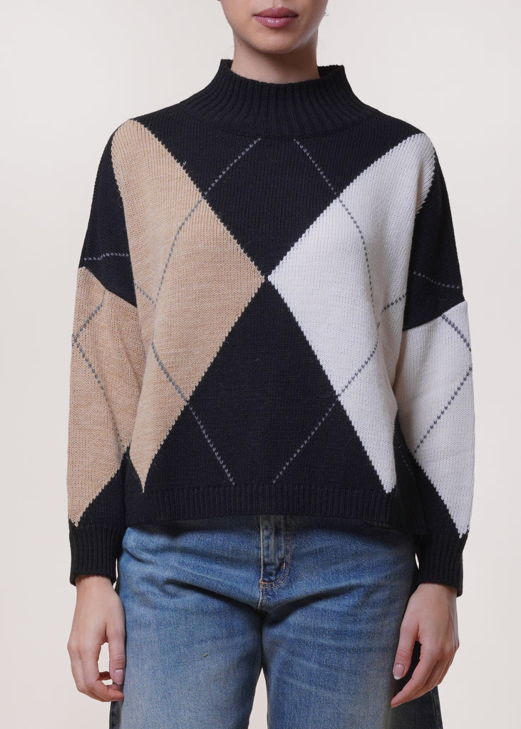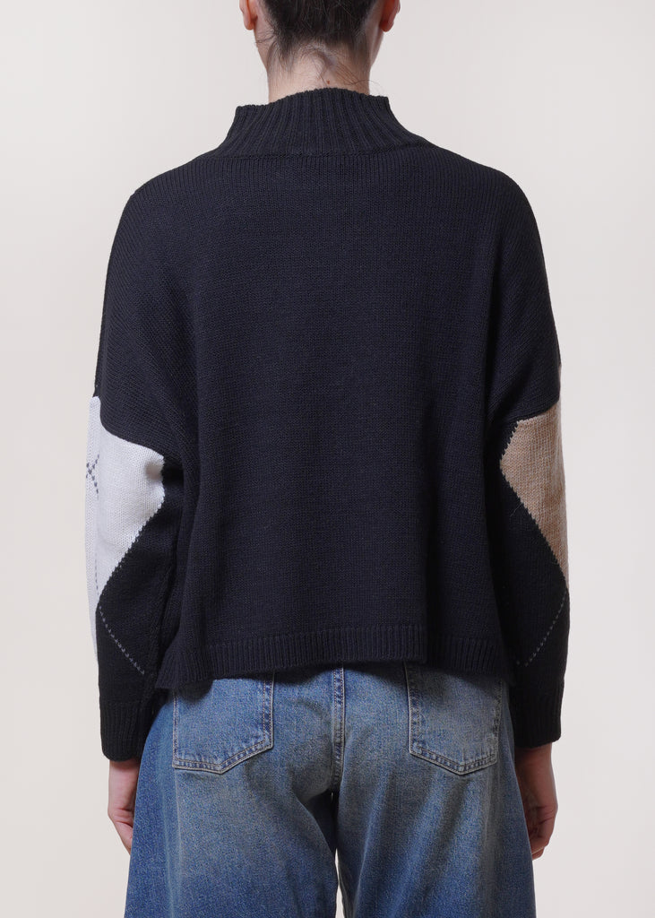 Motel - Maglia lupetto a rombi misto lana - NERO