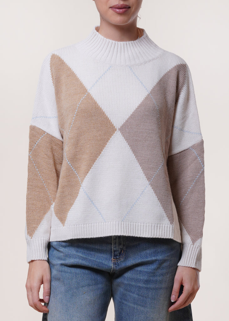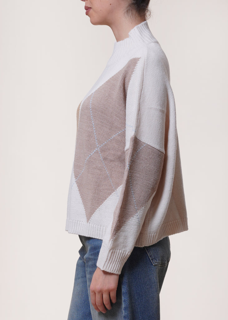 Motel - Maglia lupetto a rombi misto lana - PANNA