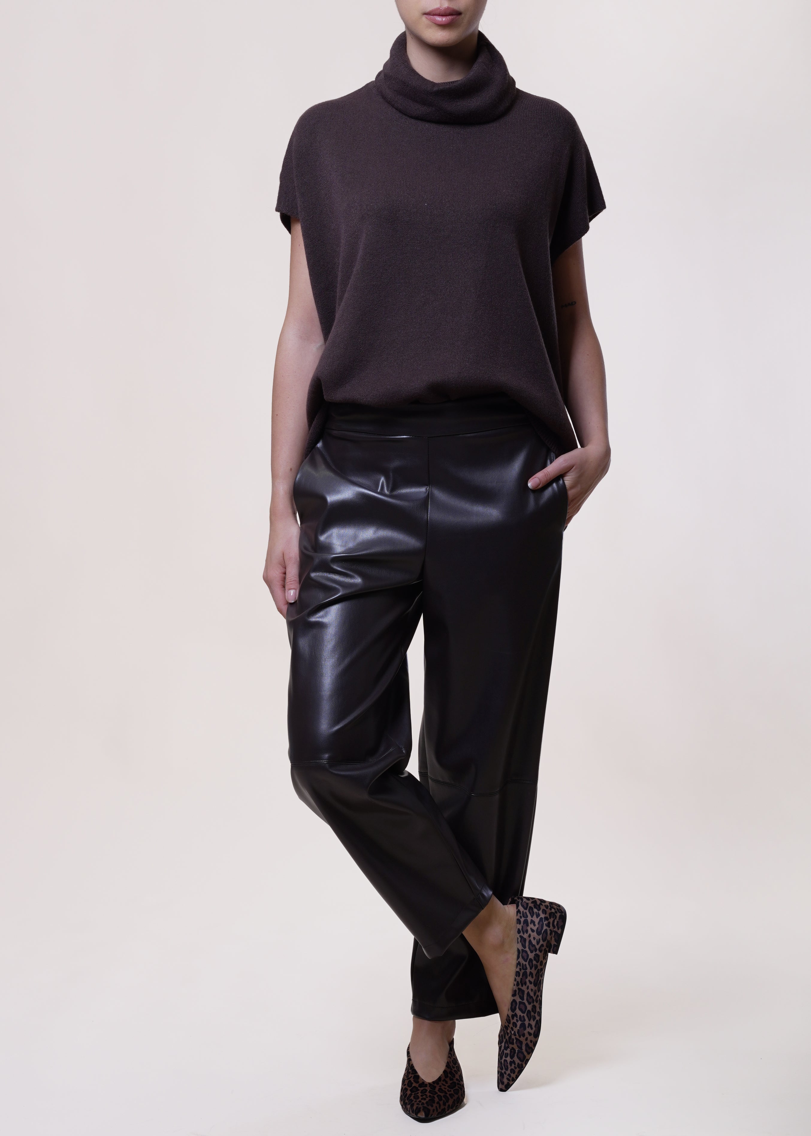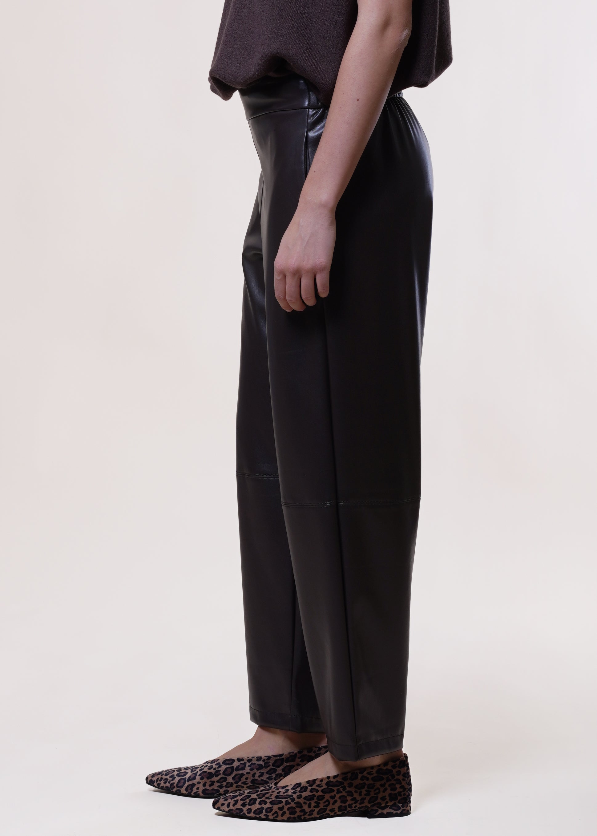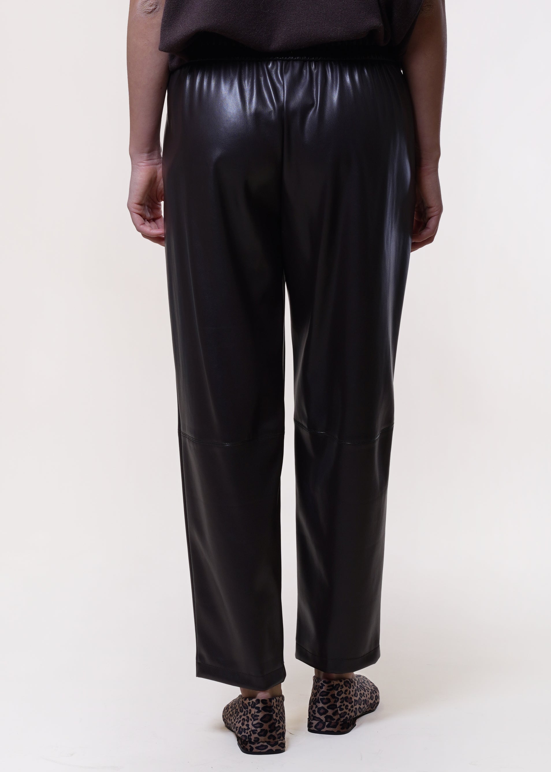 Motel - Pantalone baggy in eco-pelle con elastico - MORO