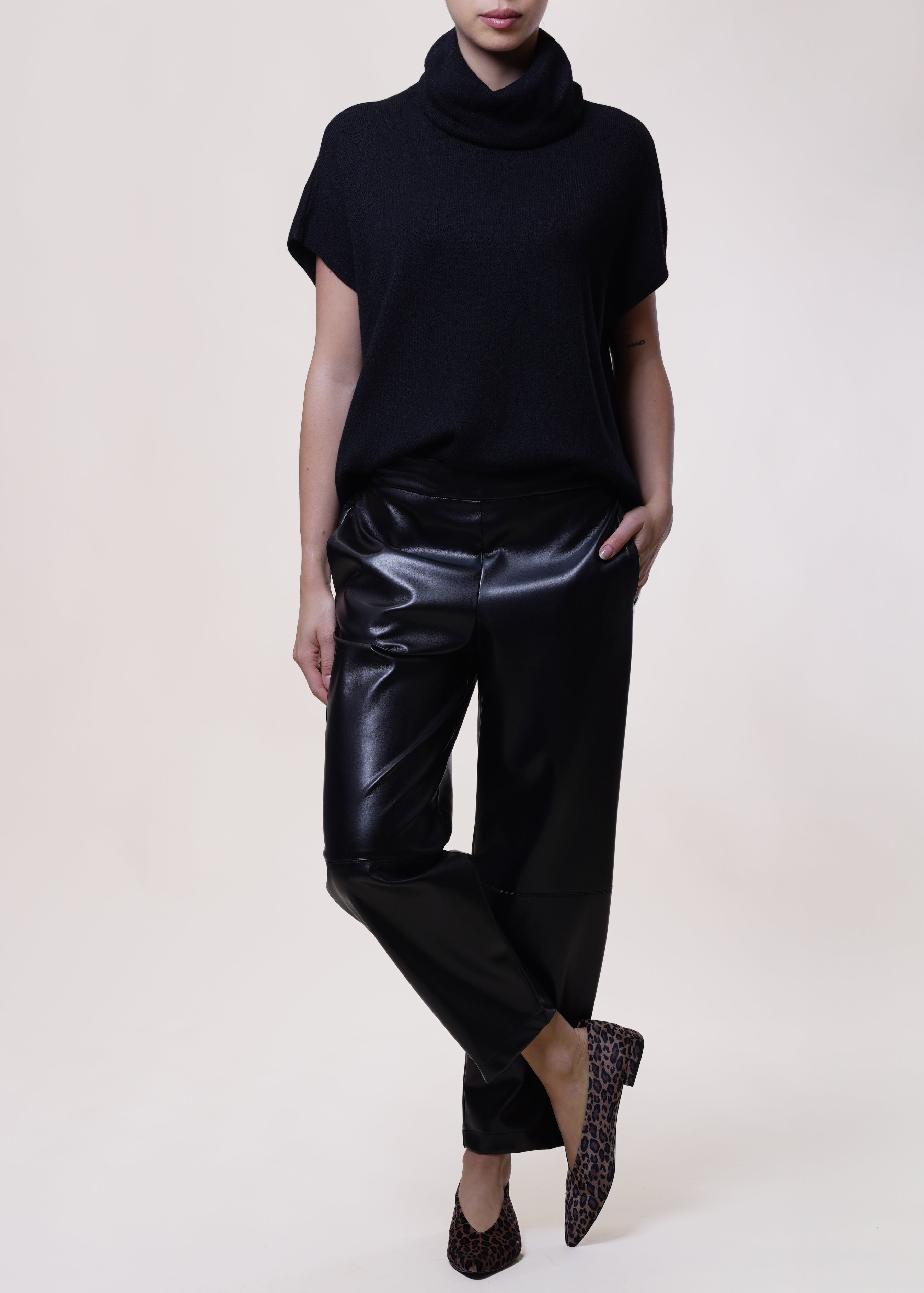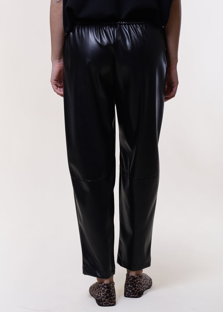 Motel - Pantalone baggy in eco-pelle con elastico - NERO