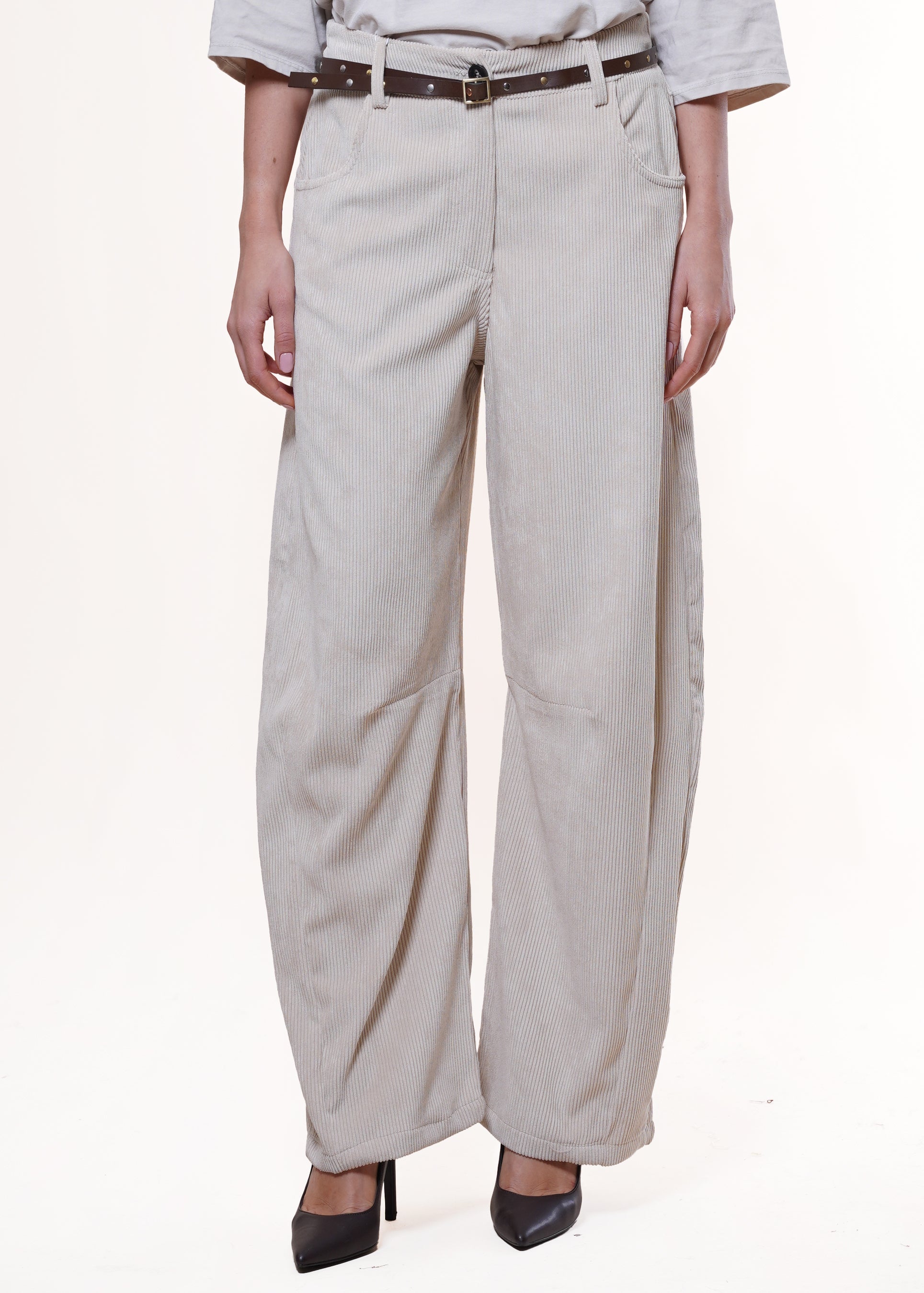 Motel - Pantalone barrel in velluto rocciatore - LATTE
