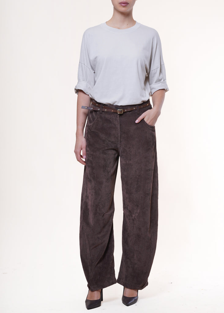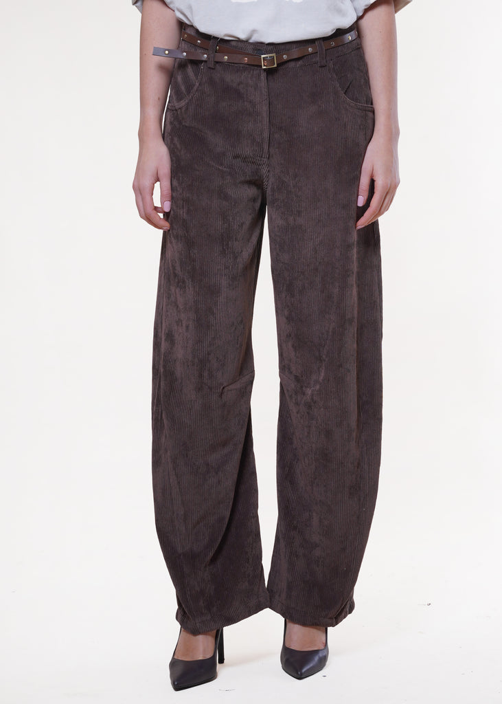Motel - Pantalone barrel in velluto rocciatore - MORO