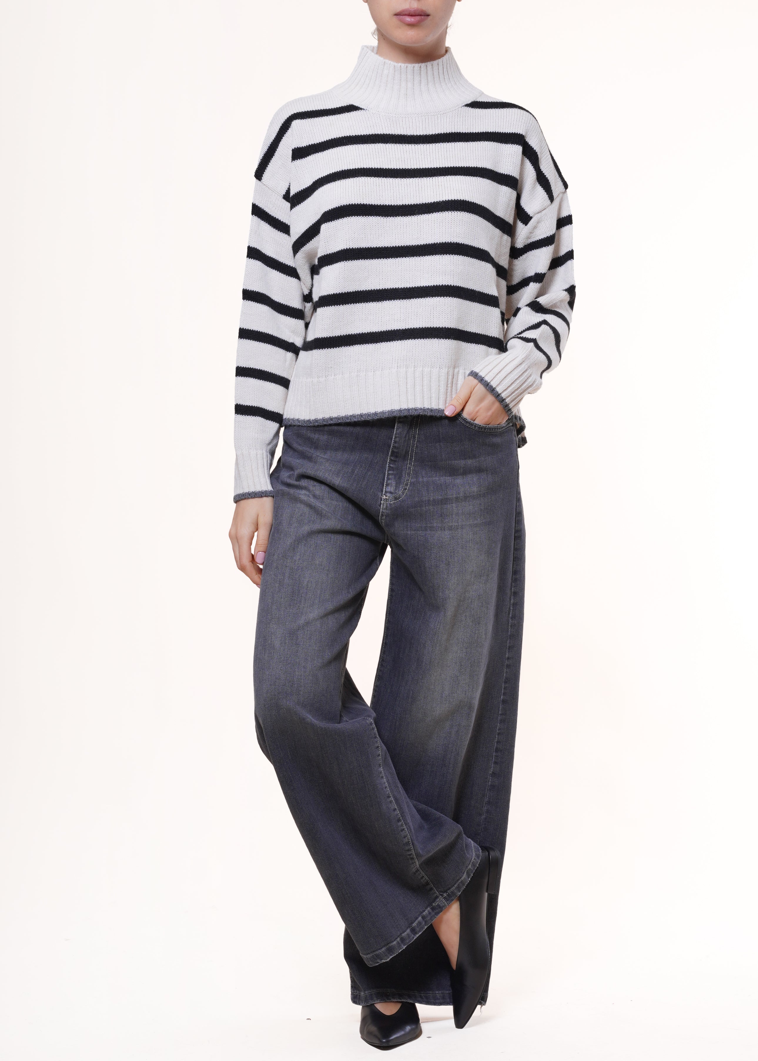 Motel - Maglia a righe in misto lana - ECRU/NERO
