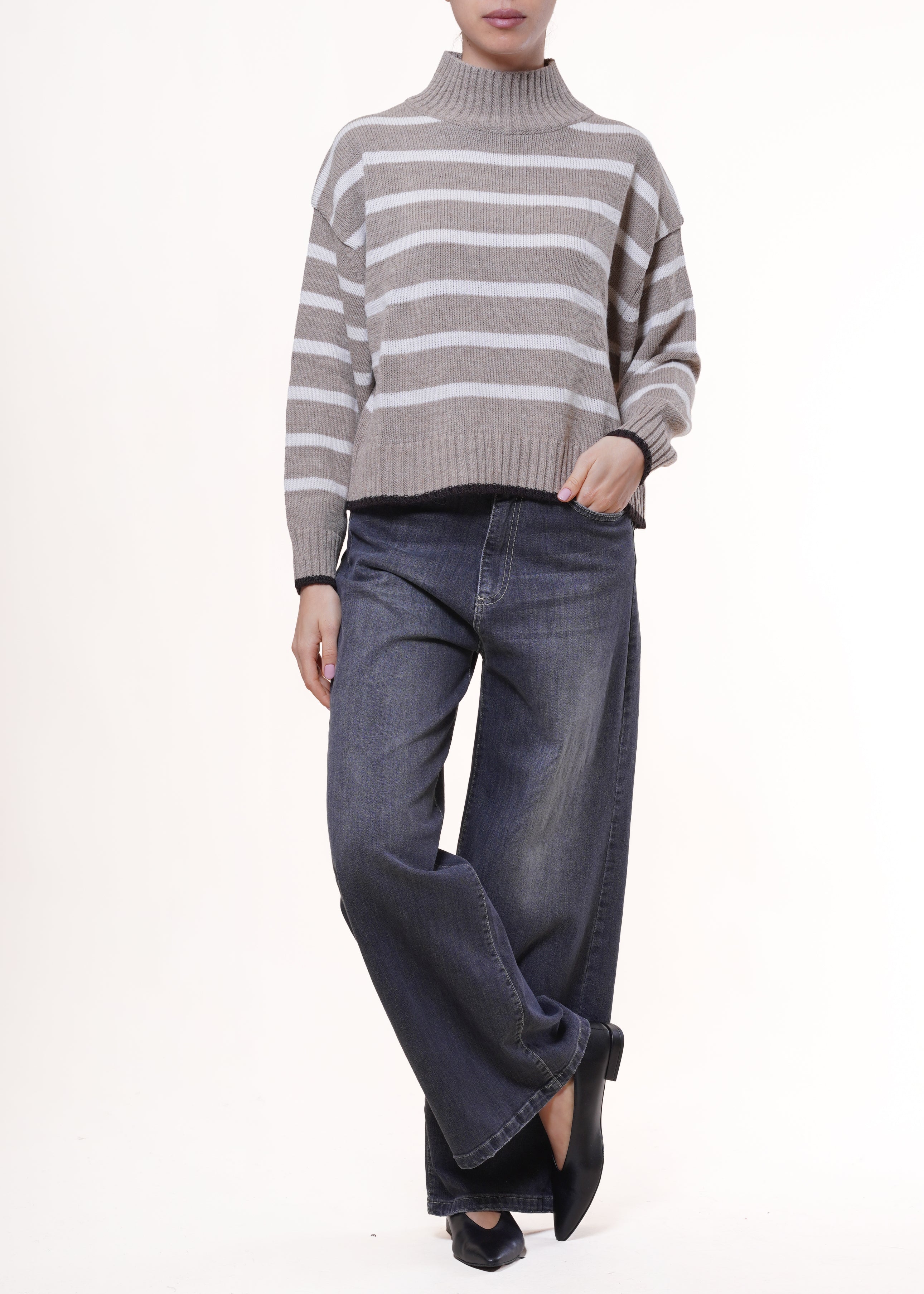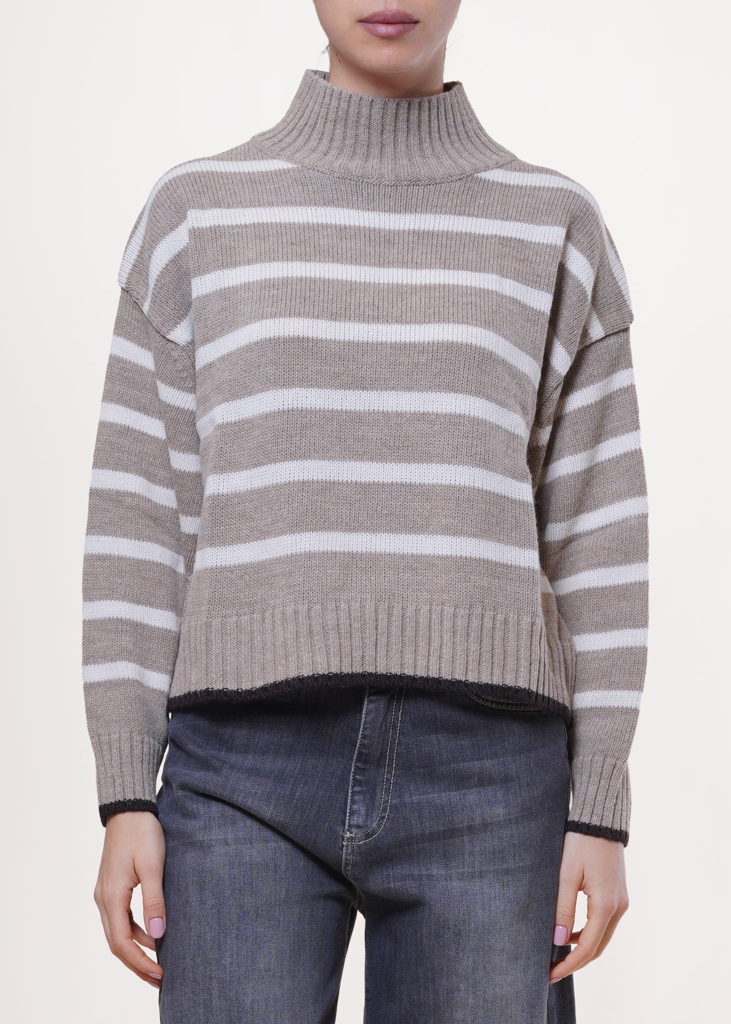 Motel - Maglia a righe in misto lana - MASTICE/ECRU