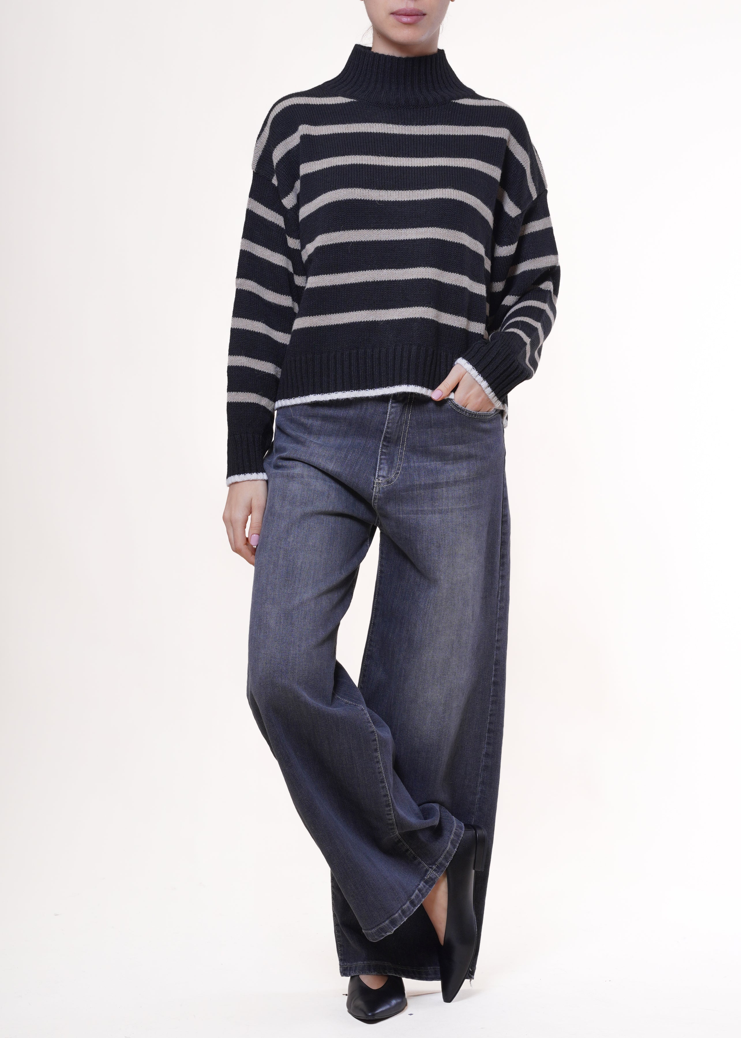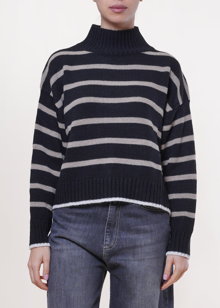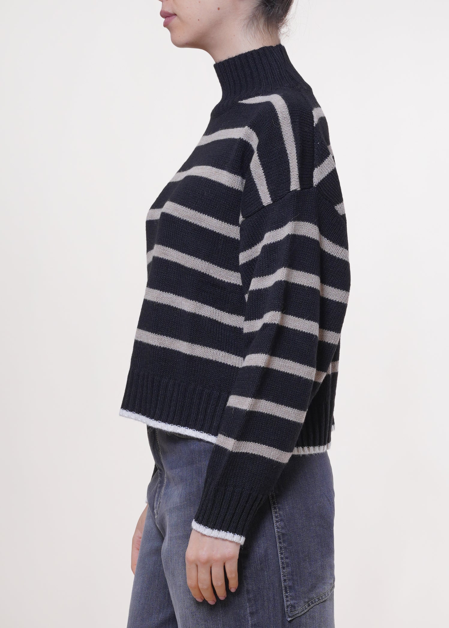 Motel - Maglia a righe in misto lana - NERO/MASTICE