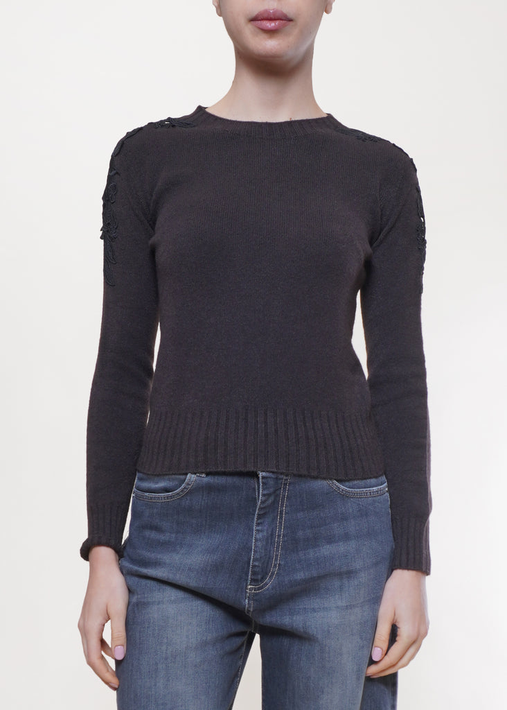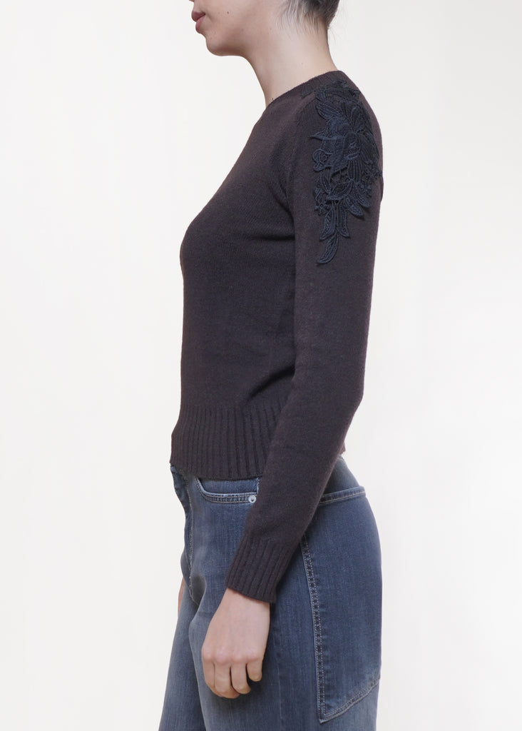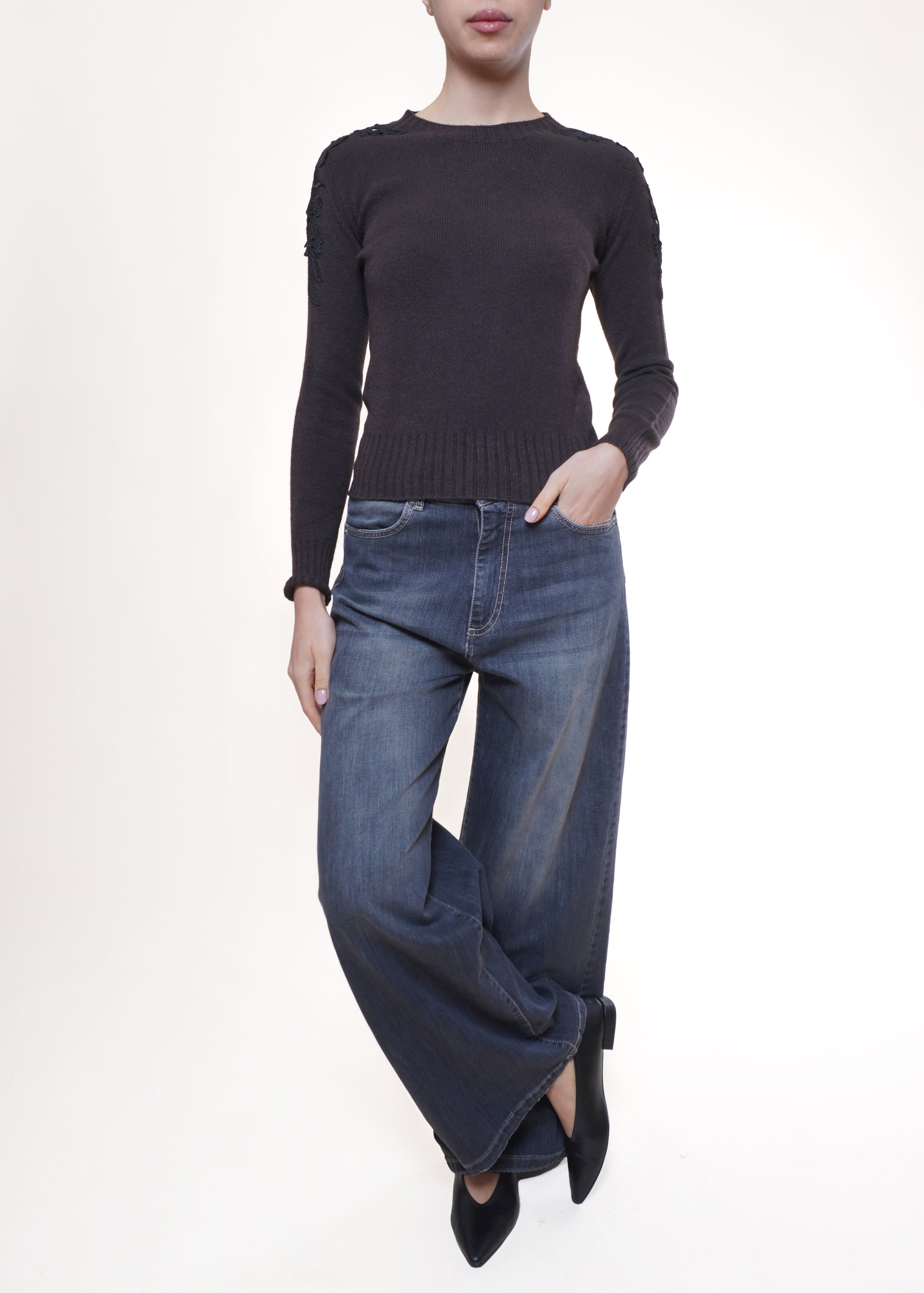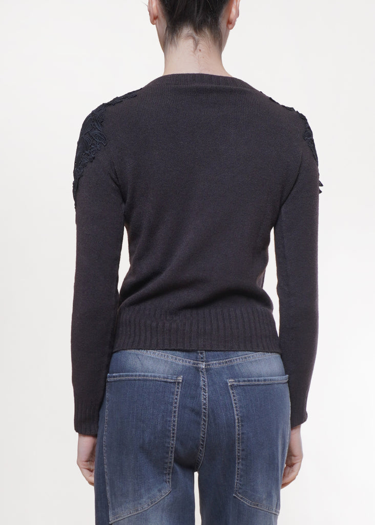 Motel - Maglia manica lunga con dettaglio pizzo - MARRONE